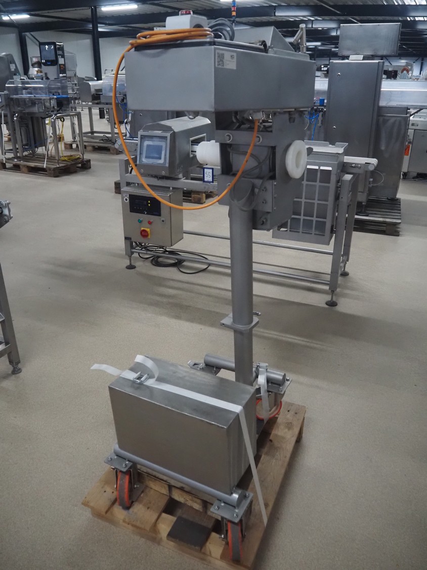 Mettler Toledo Safeline mobile pipeline metal detector, 100-240 V, 50/60 Hz, 300 W, diameter clearance: 55 mm, total dimensions: 860 mm x 520 mm x 1440 mm.