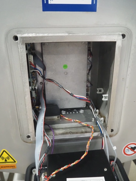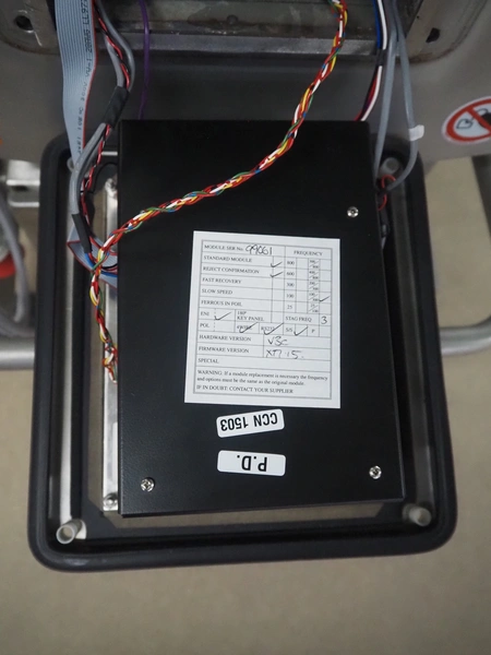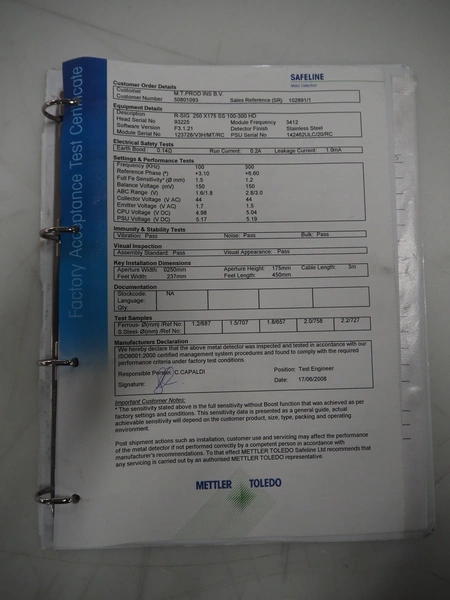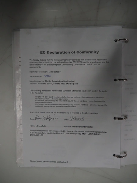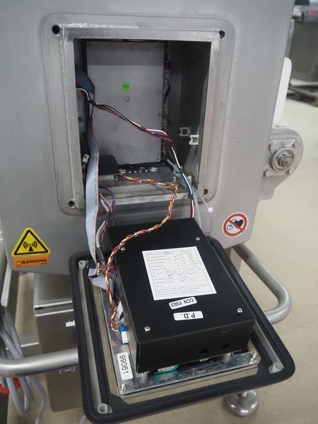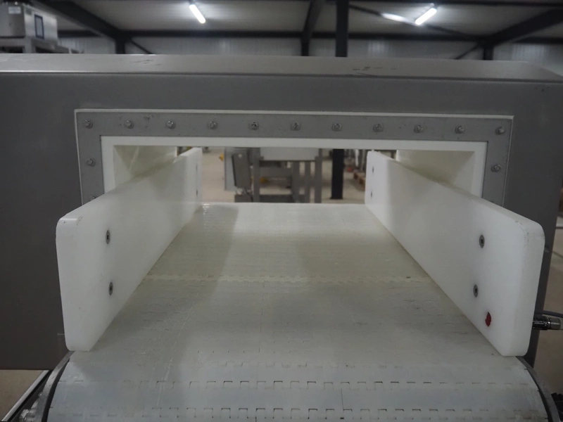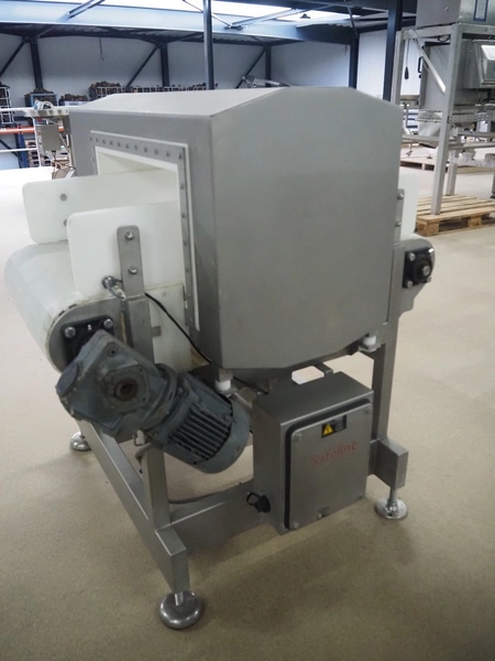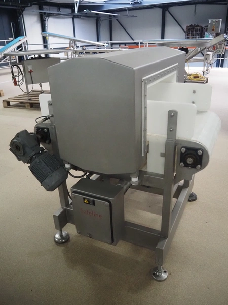 Safeline / Mettler Toledo metal detector, plastic belt, belt width: 480 mm, clearance: 445 mm x 210 mm, total dimensions: 1100 mm x 1000 mm x 1100 mm.
