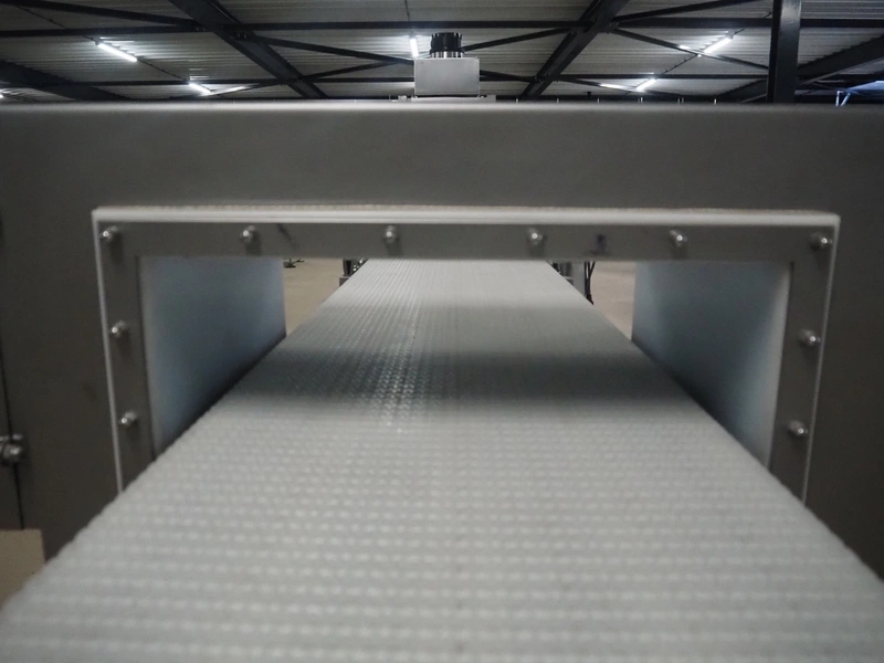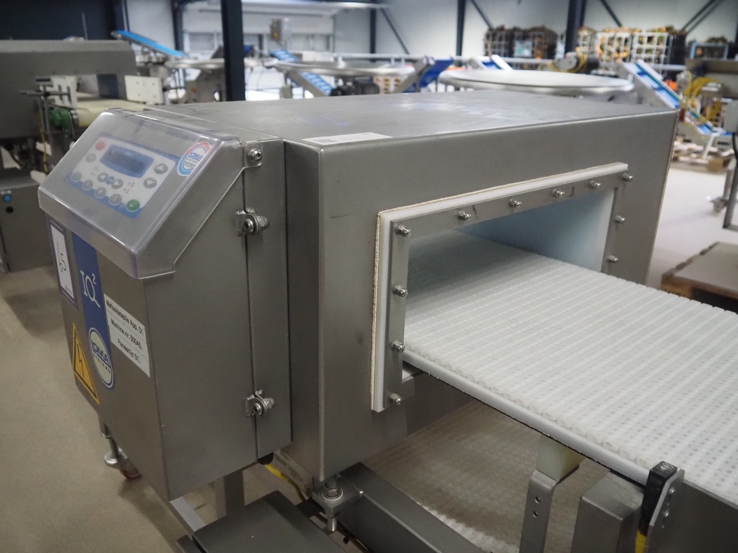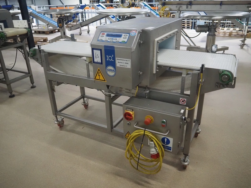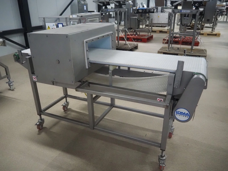 Loma Systems mobile metal detector with rejector, model: Loma IQ², model: MHIOEU, serial number: 35291, year of construction: June 2004, 85-265 V, 50-60 Hz, plastic mesh belt, belt width: 400 mm, clearance: 445 mm x 140 mm, total dimensions: 1820 mm x 920 mm x 1100 mm.