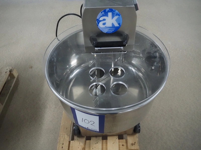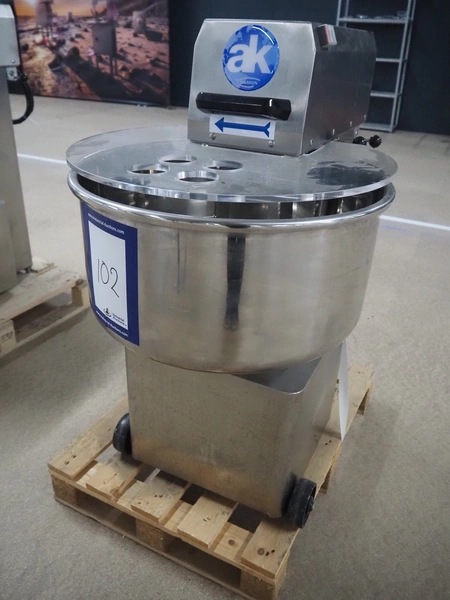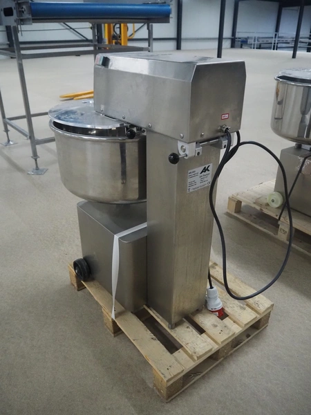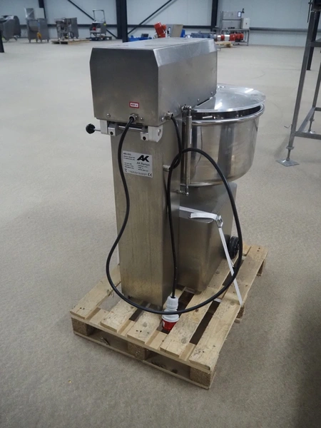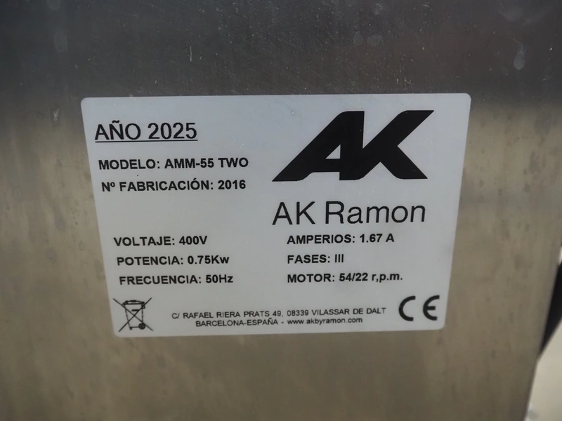 AK Ramon mixer, model: AMM-55 TWO, factory number: 2016, year of construction: 2025, 400 V, 3 Ph, 50 Hz, 1.67 A, 0.75 kW, 54/22 rpm, s/s bowl, volume: 55 liter, dimensions: 800 mm x 550 mm x 960 mm.