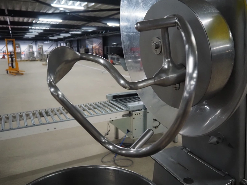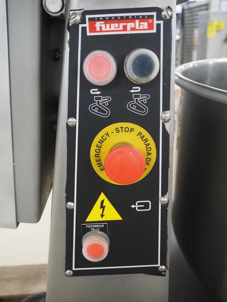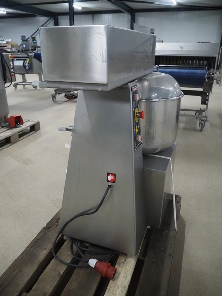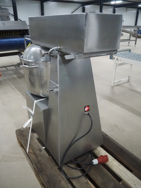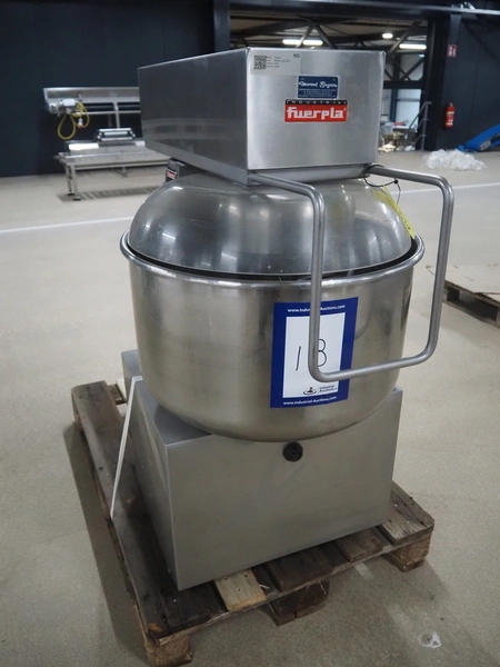 Industrial Fuerpla mixer, model: A-85, number: 2910, year of construction: 2004, 380 V, 3 Ph, 50 Hz, 0.75 kW, s/s bowl, volume: 85 liter, dimensions: 1100 mm x 600 mm x 1200 mm.