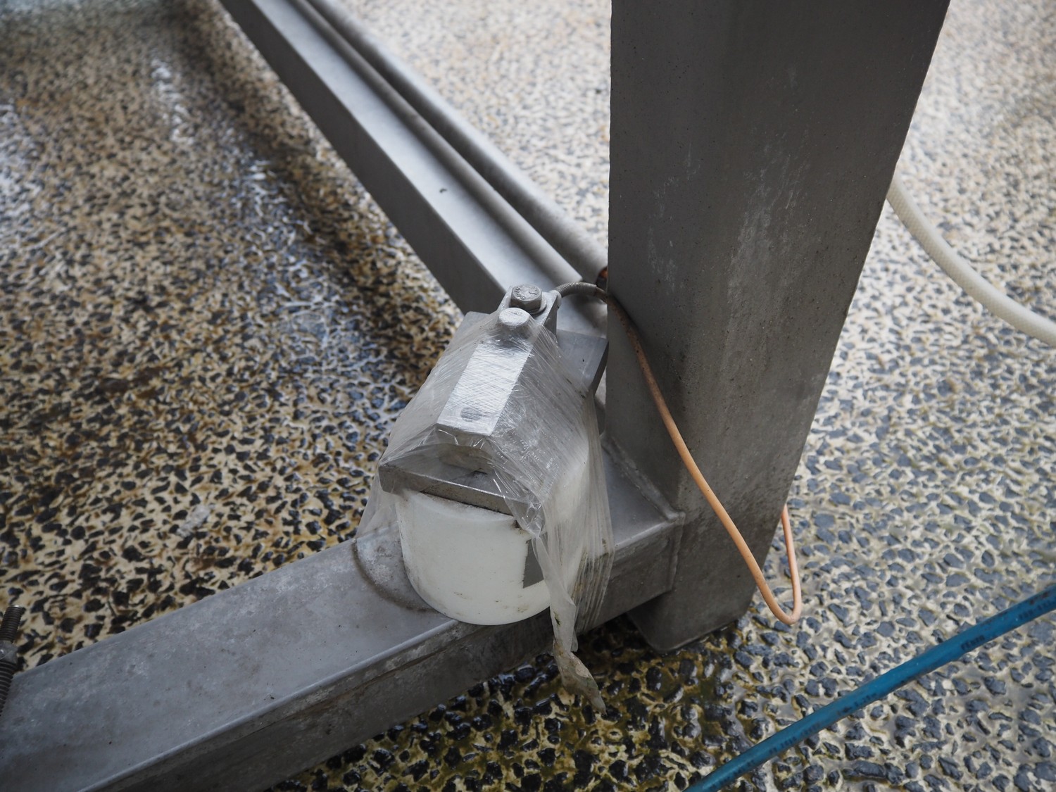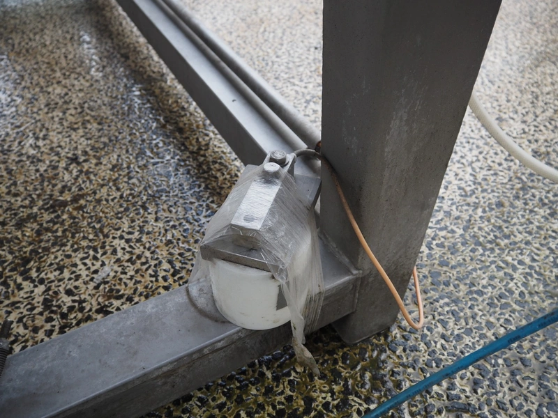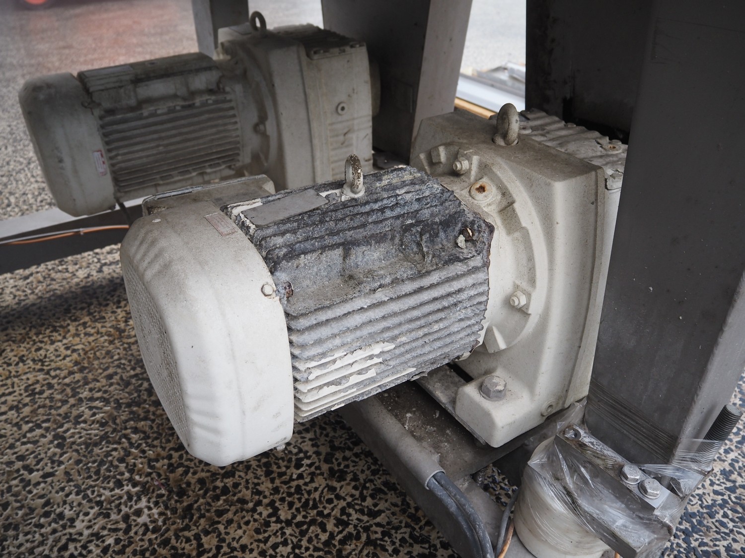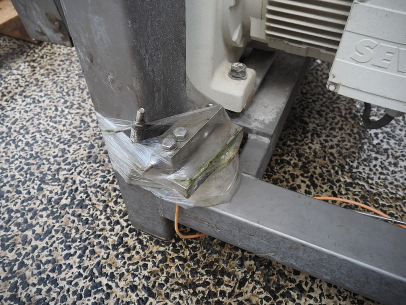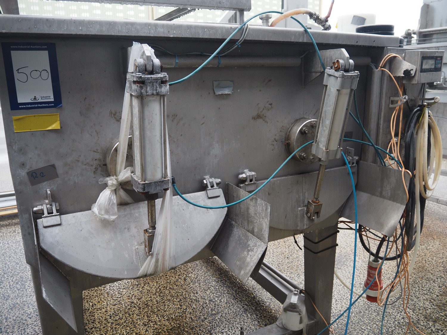 Meyn double shaft paddle mixer on weighing cells, machine number: 49433, year of construction: 1992, inside dimensions drum: 2500 mm x 1500 mm x 700 mm, total dimensions: 3100 mm x 1800 mm x 1850 mm.