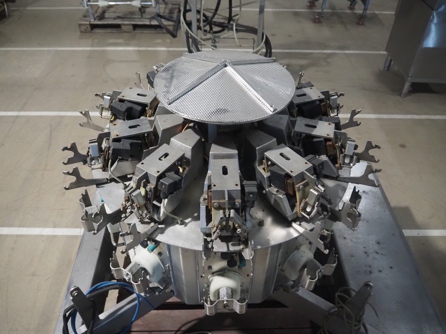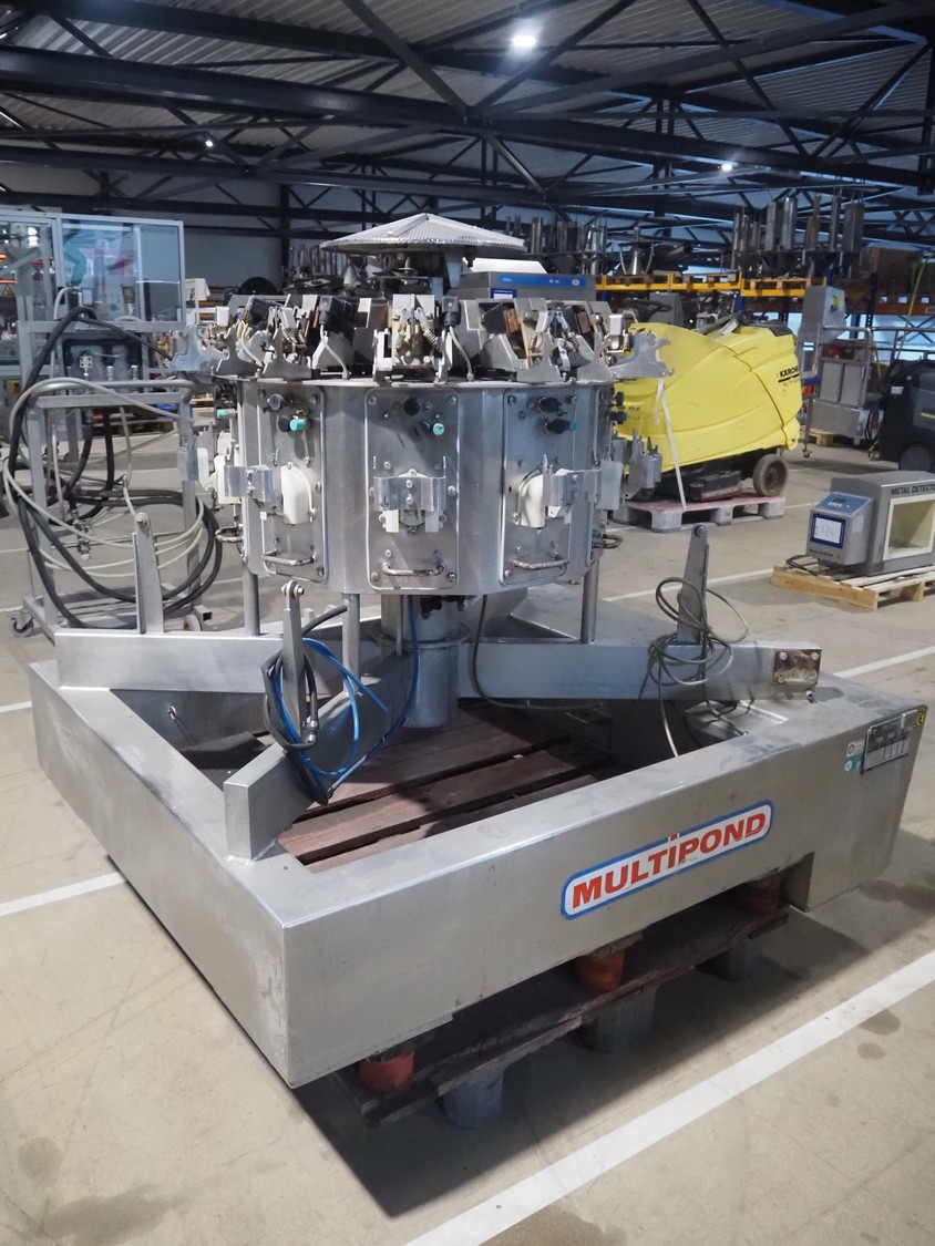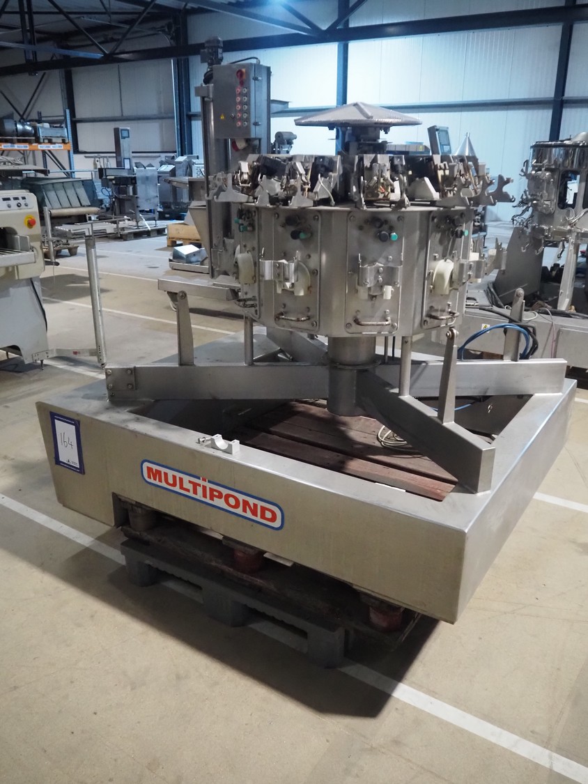 Multipond 10 head multihead weigher, type: 1014 D, factory number: 1053, year of construction: 1997, dimensions: 1500 mm x 1500 mm x 1100 mm. Incomplete.