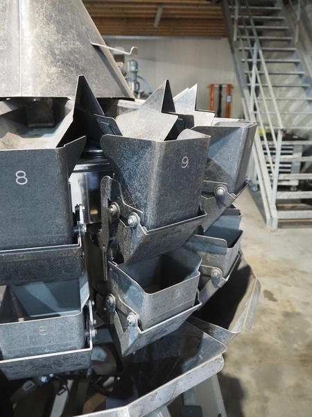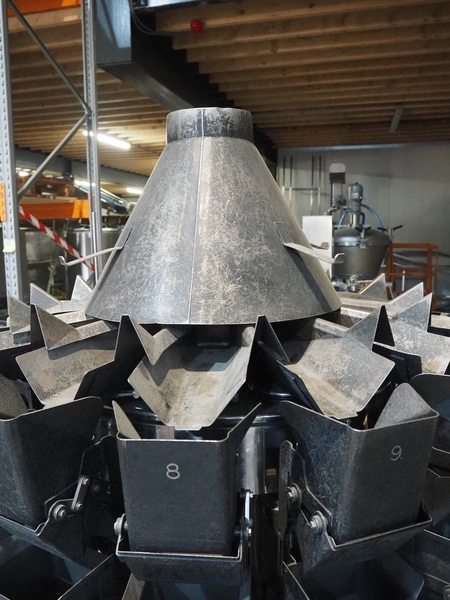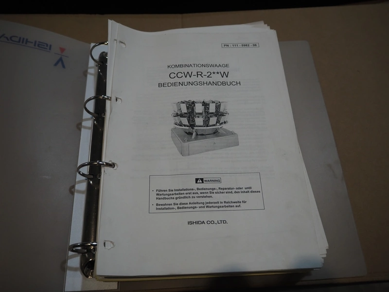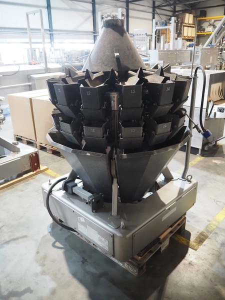 Ishida multihead weigher, 14 heads, model: CCW-R-214W-S/20-SS, serial number: 557127, year of construction: 05/2007, 240 V, 1 Ph, 50 Hz, 3.6 A, machine weight: 645 kg, dimensions: 1150 mm x 1150 mm x 1700 mm. Including pallet box with parts, dimensions: 1200 mm x 800 mm x 540 mm.
