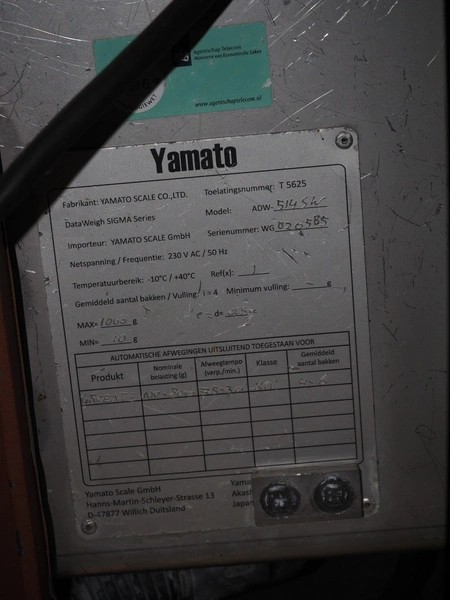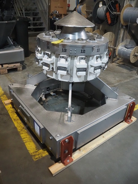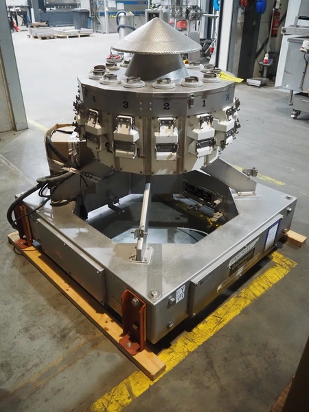 Yamato Scale GmbH/Dataweigh 14-heads multihead weigher, model: ADW-514SWH, serial number: WG020585, 220-240 V, 1Ph, 50/60 Hz, 10 A, weight range: 20-2000 gram, dimensions: 1350 mm x 1350 mm x 1300 mm. Including 2 pallets with parts.