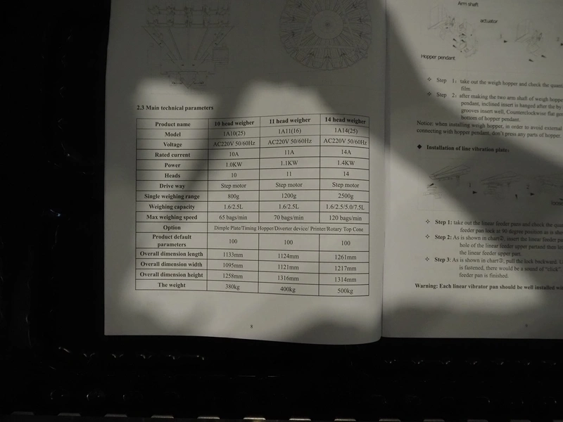 10 head multihead weigher, model: 1A10(25), year of construction: 2025, 220 V, 50/60 Hz, 10 A, 1.0 kW, dimensions: 1000 mm x 1000 mm x 1300 mm. New.