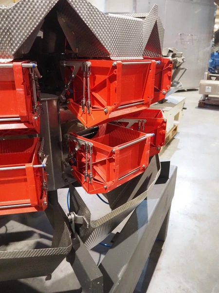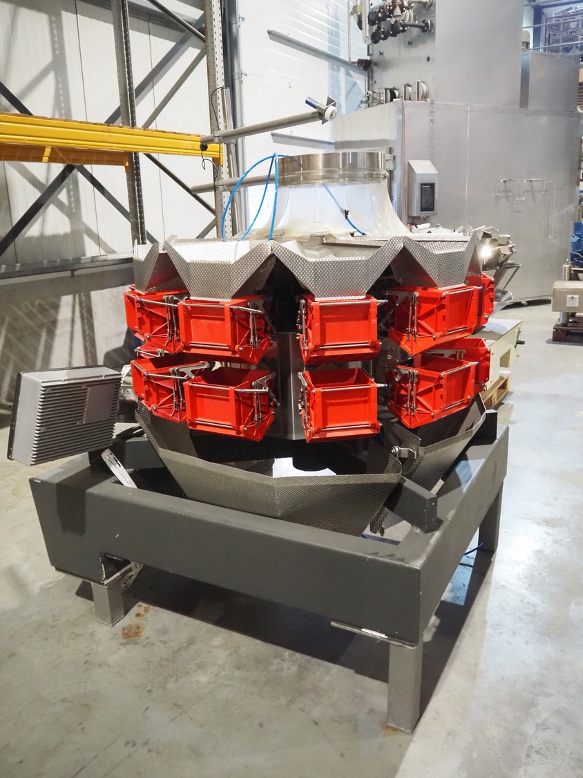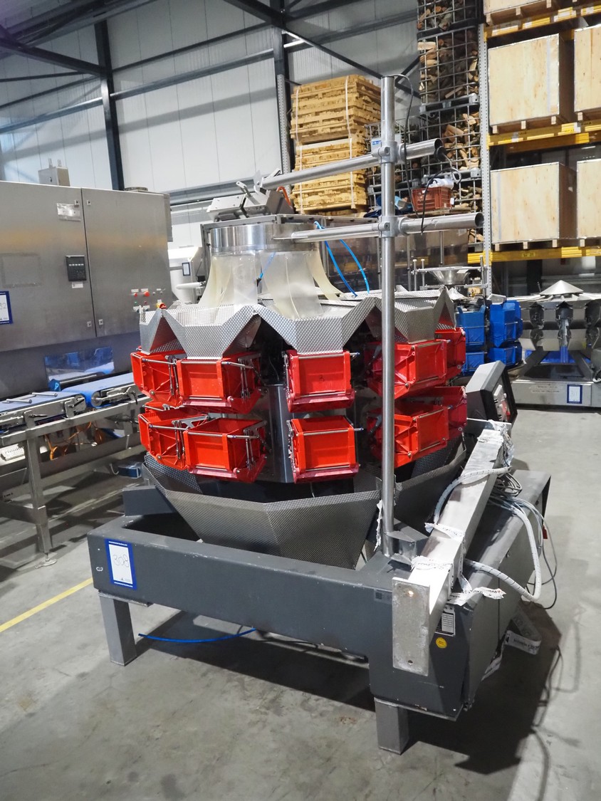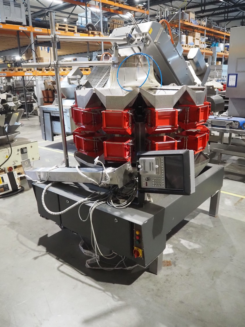 Multipond 10 head multihead weigher, type: MP 1024-D, factory number: MP 935, year of construction: 1996, 230 V, 50 Hz, 1.5 kVA, dimensions: 1600 mm x 1400 mm x 2100 mm.