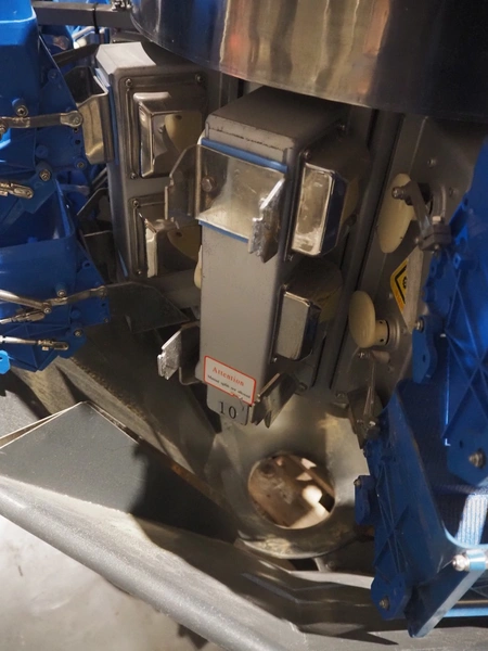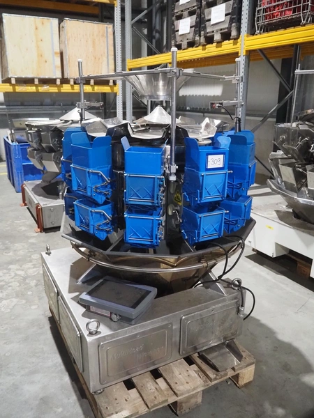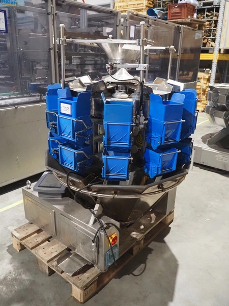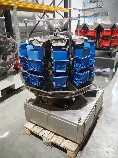 10-heads multihead weigher, dimensions: 1150 mm x 1150 mm x 1450 mm.