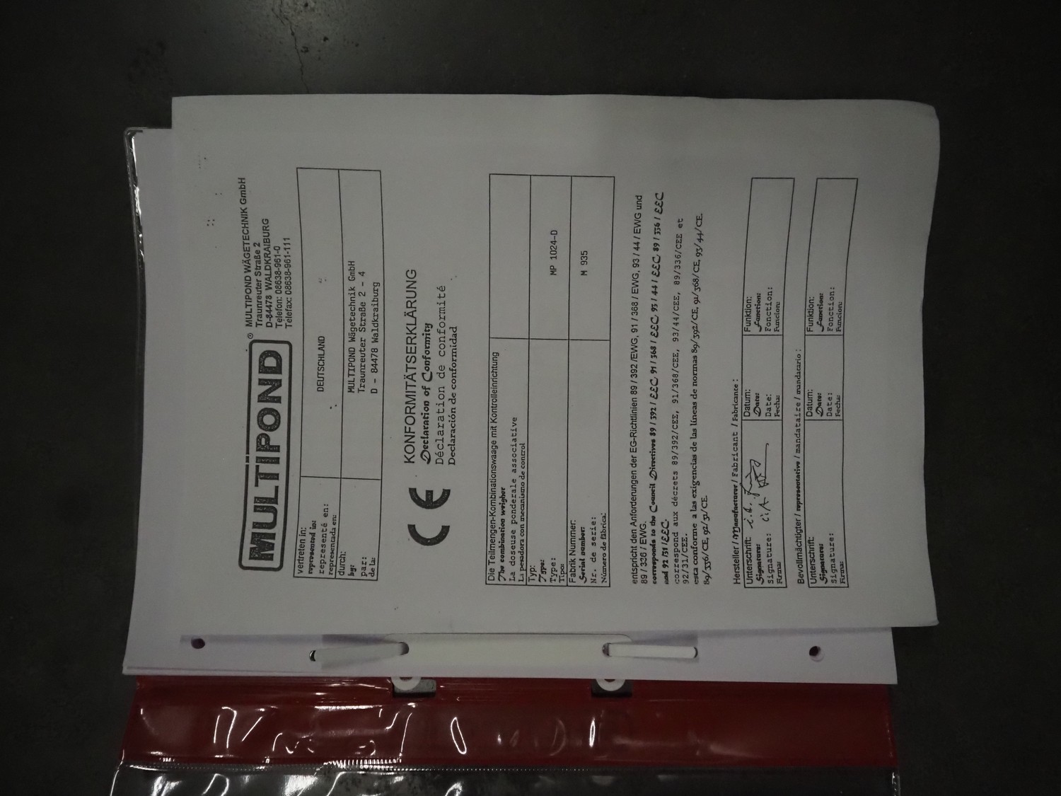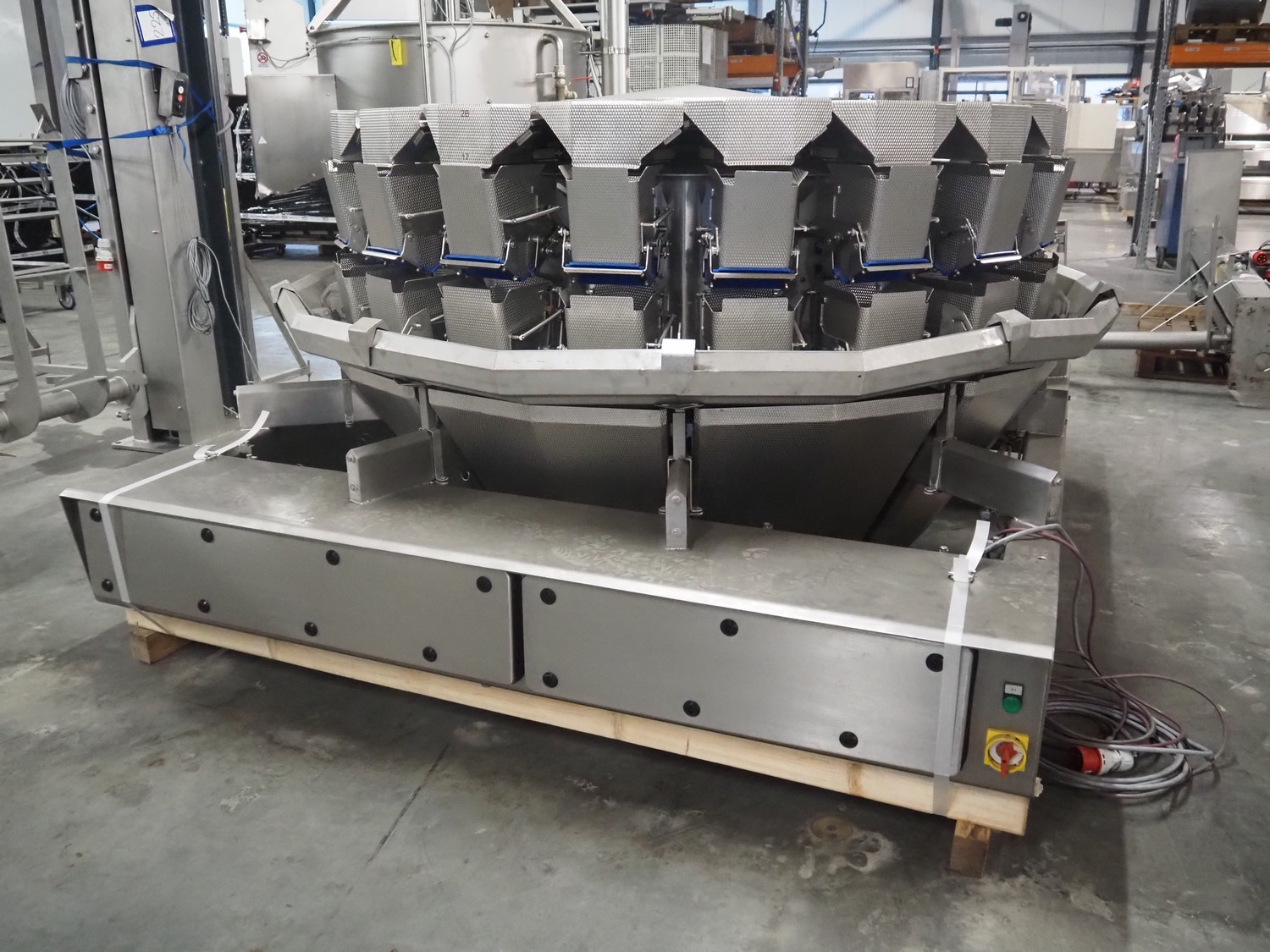 Multipond 20-heads multihead weigher, type: MP 20-3800/1250-H, serial number: M 2718, year of construction: 2011, 416 V, 3 Ph, 50/60 Hz, maximum weight: 3000 gram, minimum weight: 50 gram, e= 0.5 gram, d= 1.0 gram, T= 150 gram, total dimensions: 2600 mm x 2200 mm x 1300 mm.