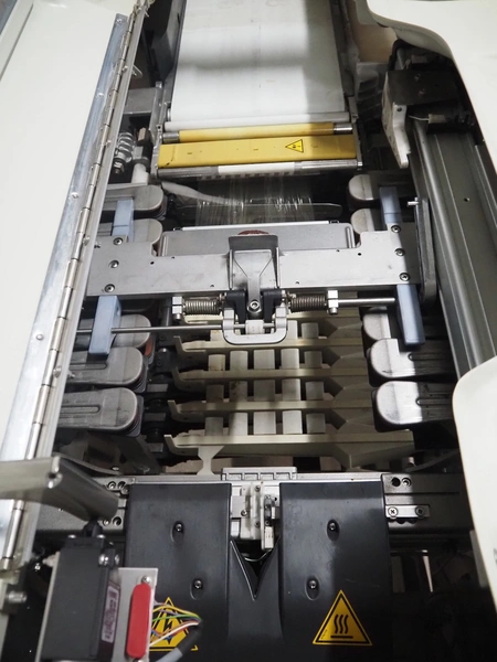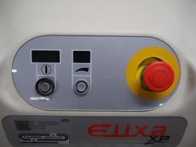 Fabbri Group mobile packaging machine, model: Elixa XP-B.249.XS, serial number: 2-2376, year of construction: 2014, 230 V, 1 Ph, 50-60 Hz, 8.7 A, plastic string infeed belt, belt width: 330 mm, plastic outfeed belt, belt width: 340 mm, plastic outfeed rollers, roller width: 300 mm, total dimensions: 1350 mm x 1250 mm x 1300 mm.