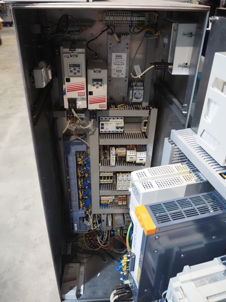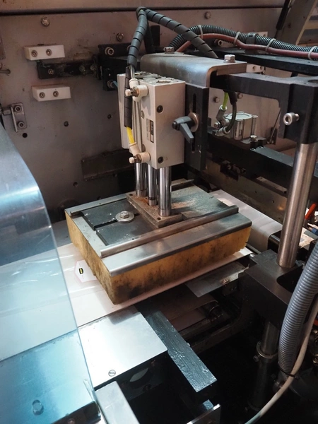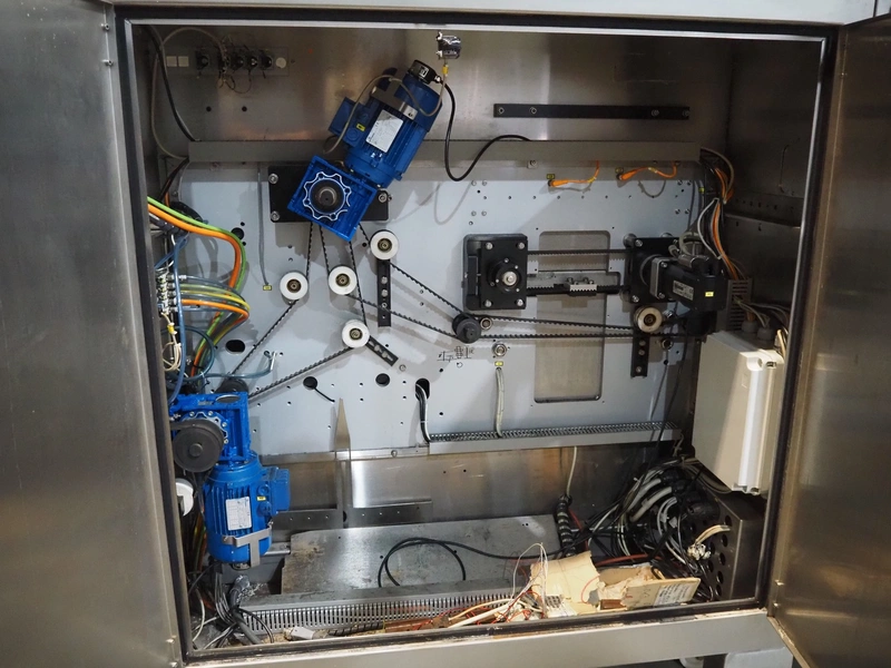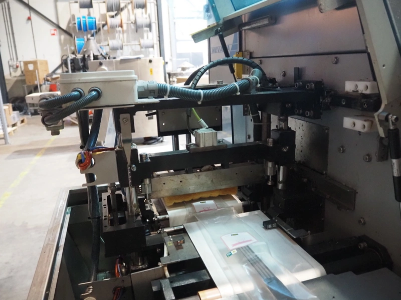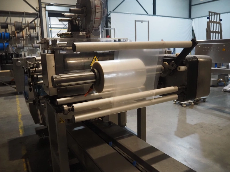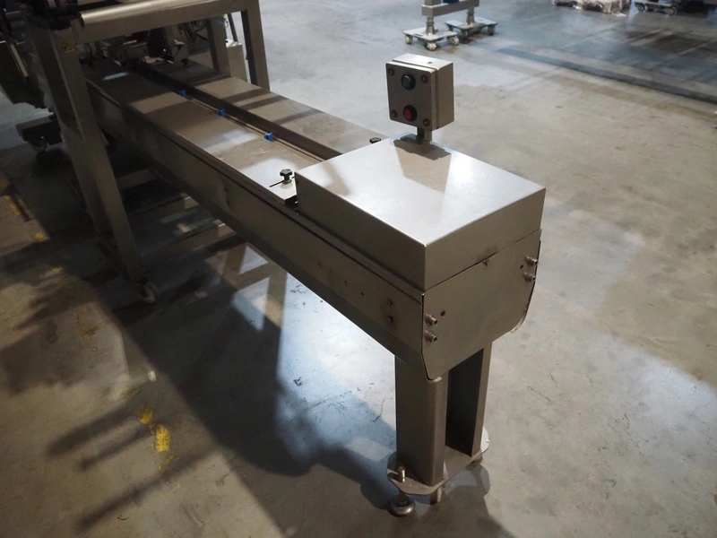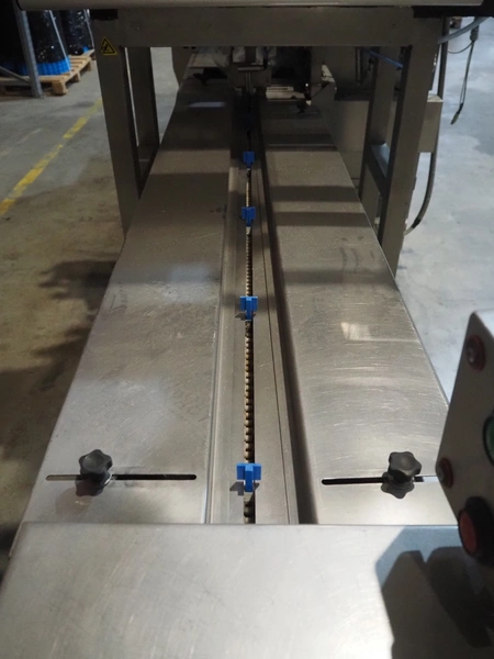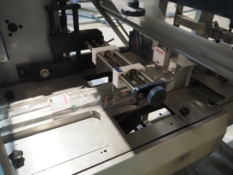 Ulma mobile flowpacker, model: Nevada BS, number: 130052, year of construction: 2003, 380 V, 50 Hz, 23 A, 5 kW, ELS labelling machine, infeed belt with dividers, belt width: 150 mm, distance between dividers: 300 mm, divider height: 30 mm, seal width: 300 mm, plastic outfeed belt, belt width: 200 mm, total dimensions: 4500 mm x 1300 mm x 1150 mm.