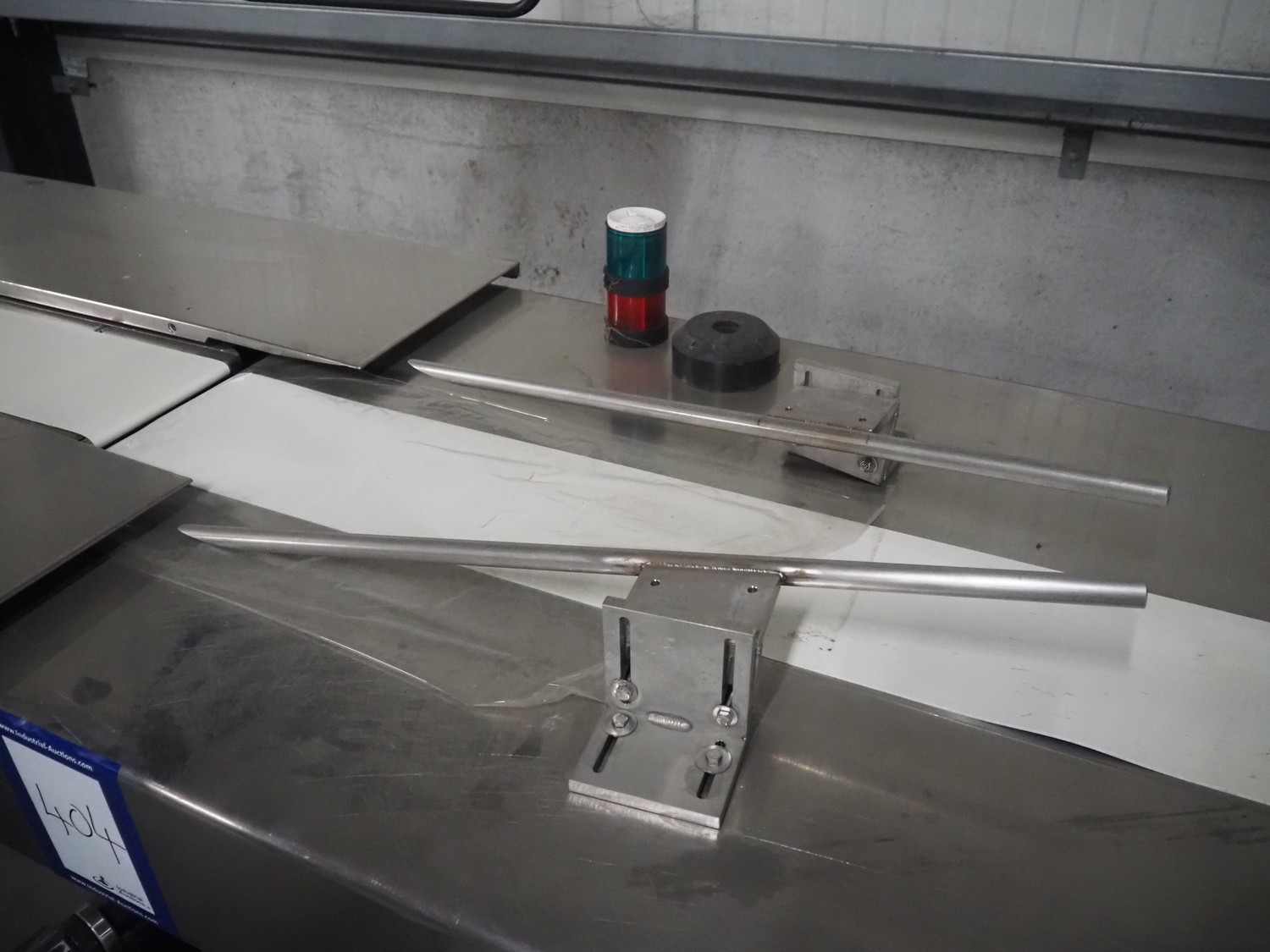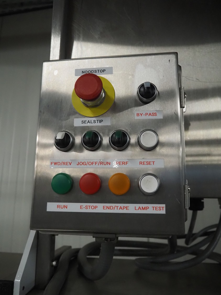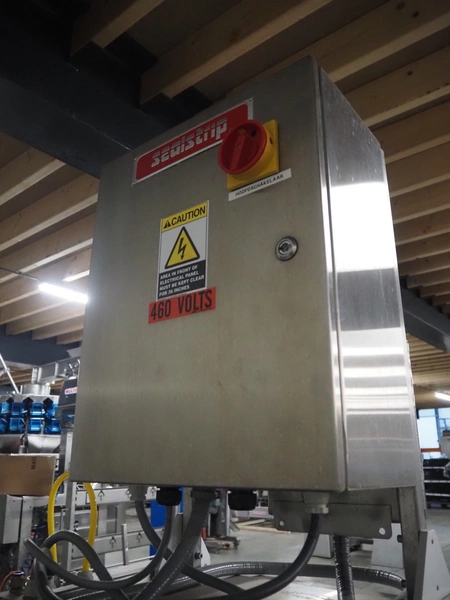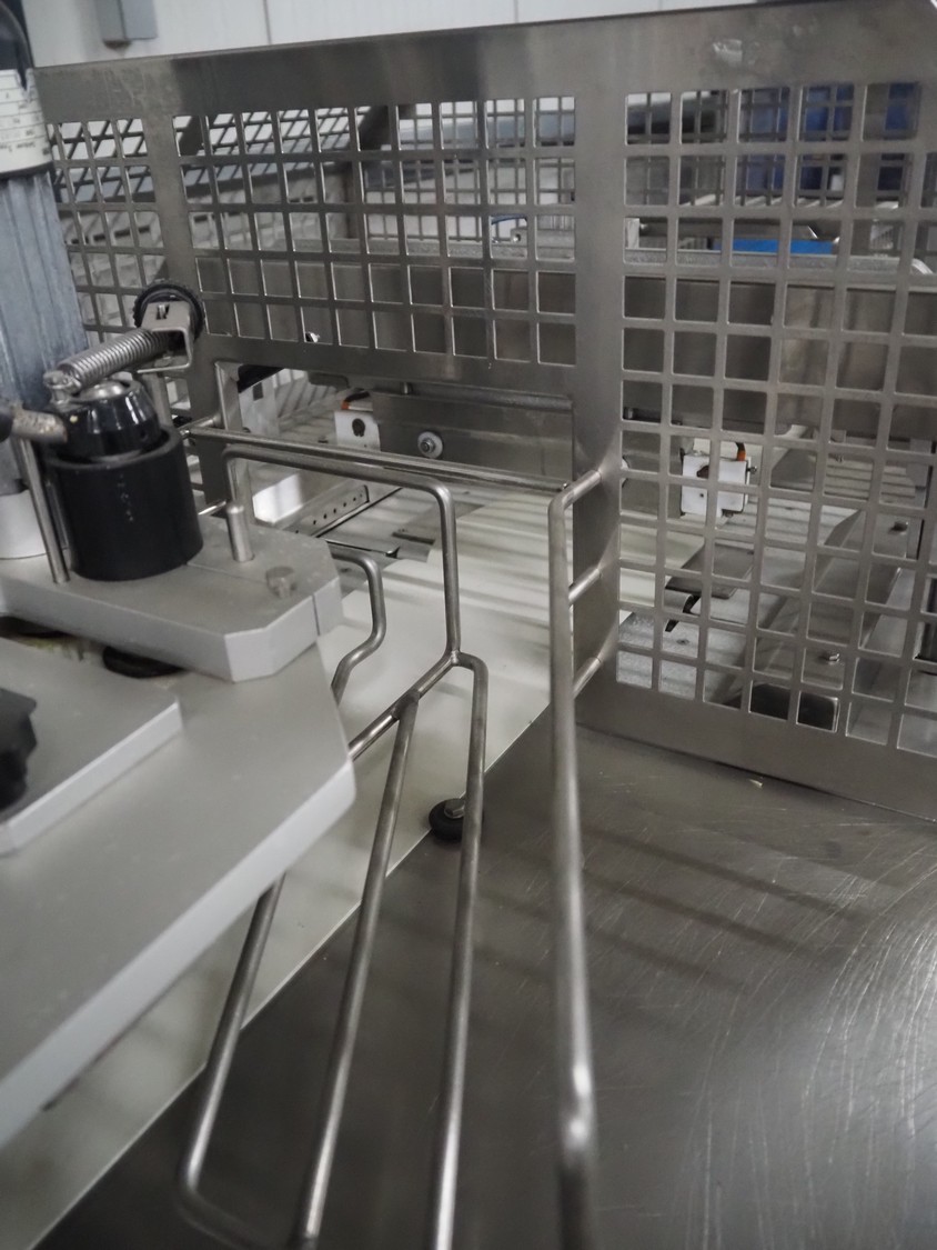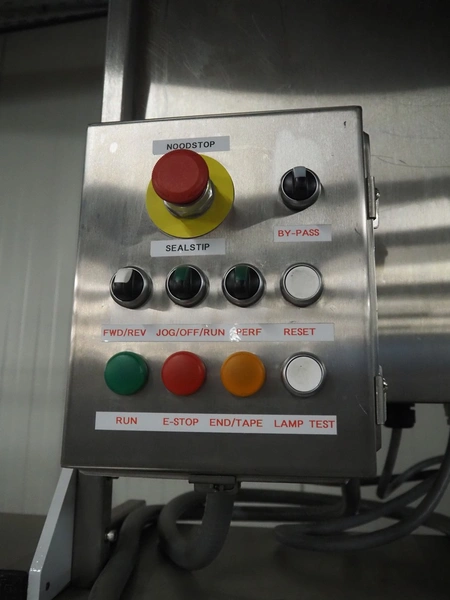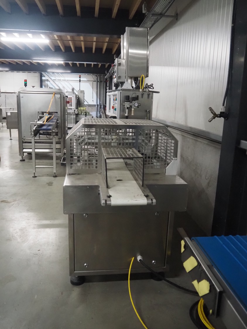 Cryovac horizontal form, fill and seal machine, type: CJ55 MD-BDF, serial number: A91600205, year of construction: 2000, 400 V, 50 Hz, 8 A, 5 kW, plastic belt, belt width: (2x) 200 mm, seal width: 250 mm, clearance: 200 mm x 60 mm, total dimensions: 5000 mm x 1100 mm x 2300 mm.