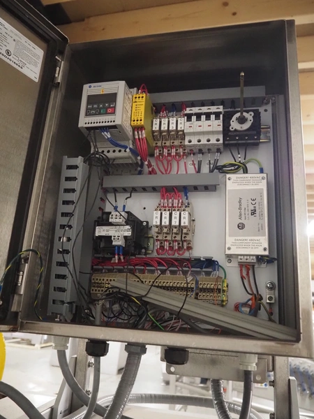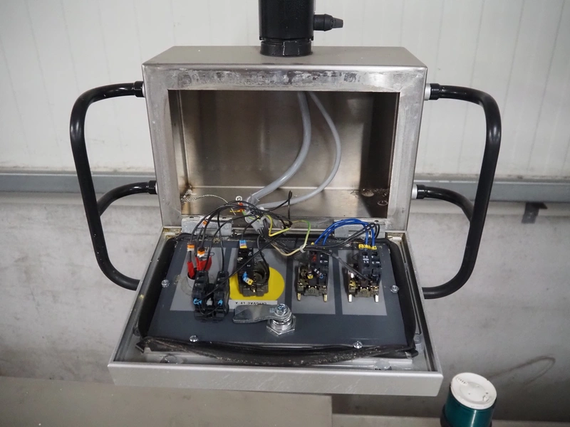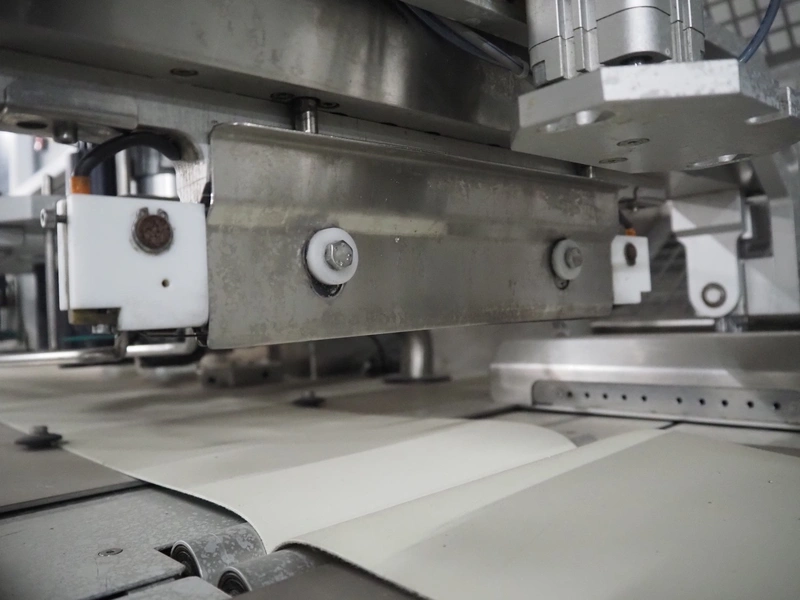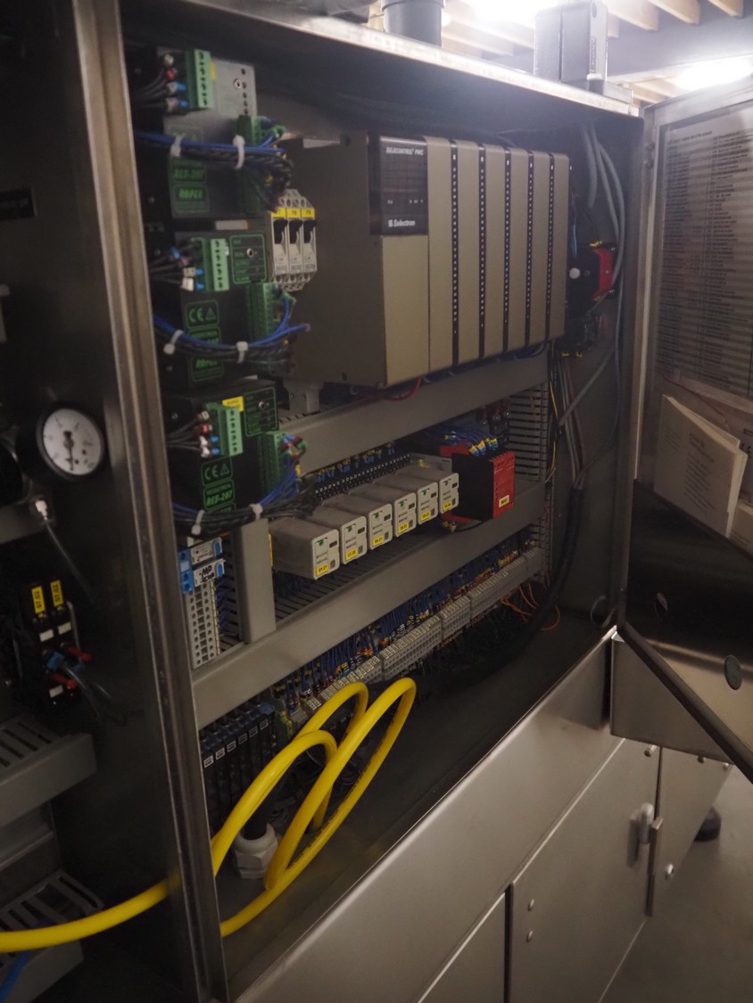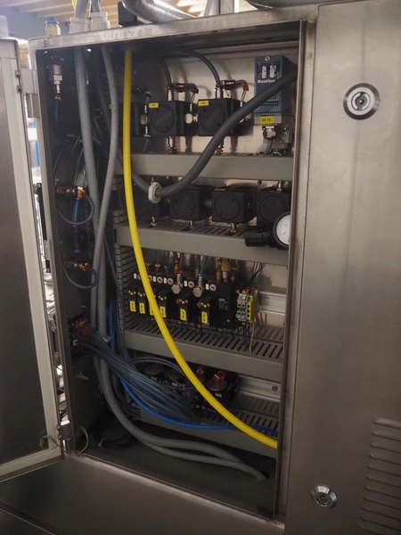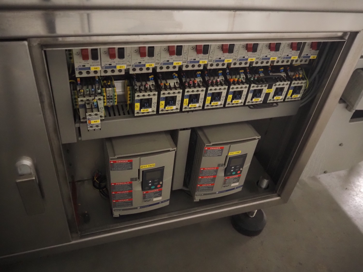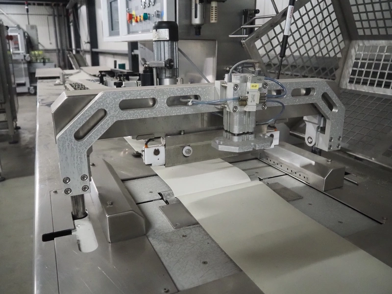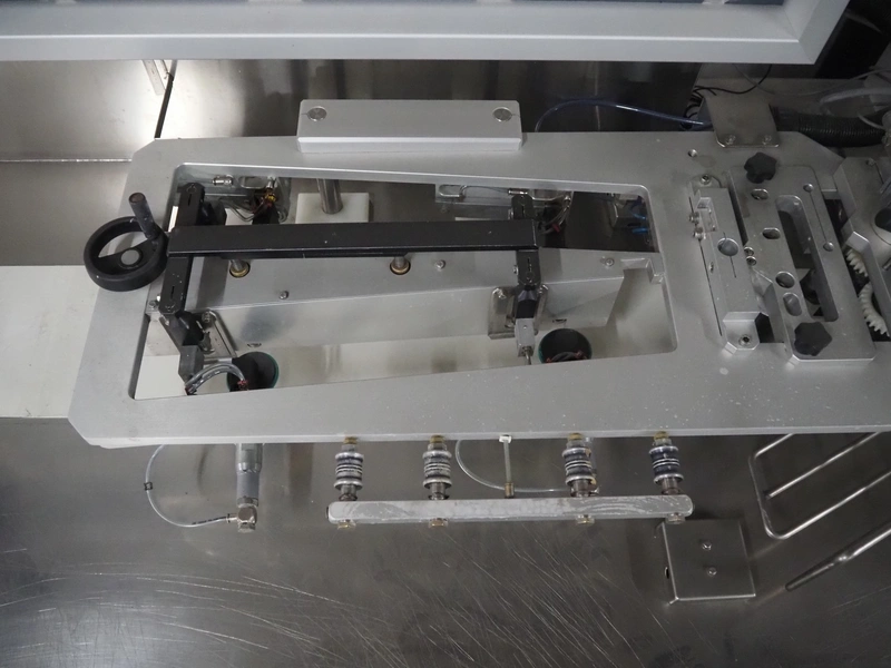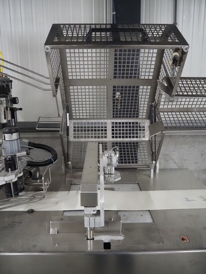 Cryovac horizontal form, fill and seal machine, type: CJ55 MD-BDF, serial number: A91600205, year of construction: 2000, 400 V, 50 Hz, 8 A, 5 kW, plastic belt, belt width: (2x) 200 mm, seal width: 250 mm, clearance: 200 mm x 60 mm, total dimensions: 5000 mm x 1100 mm x 2300 mm.