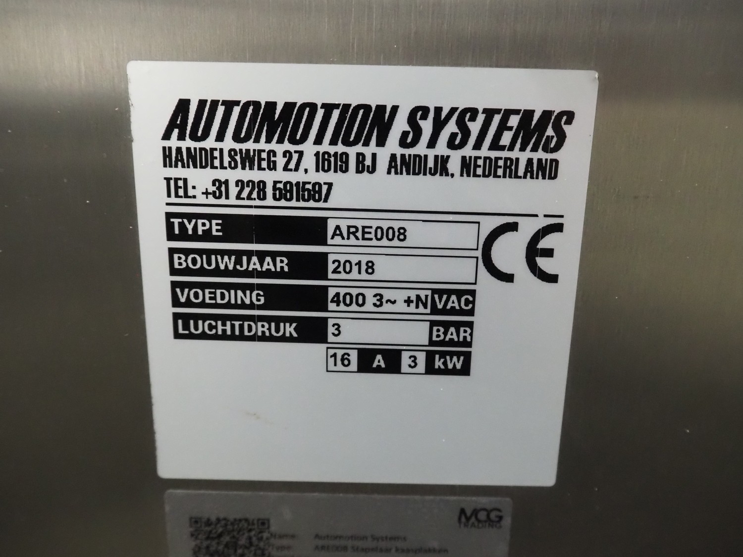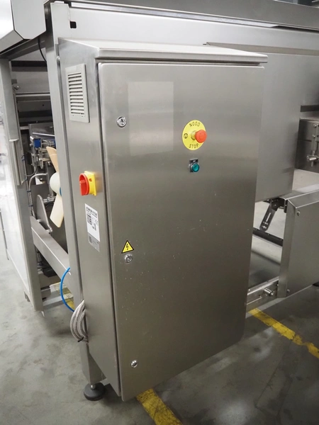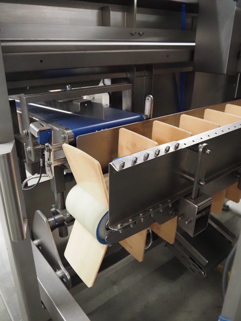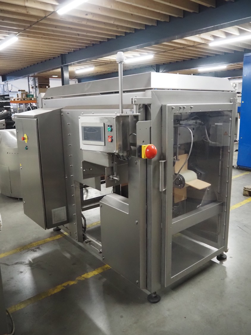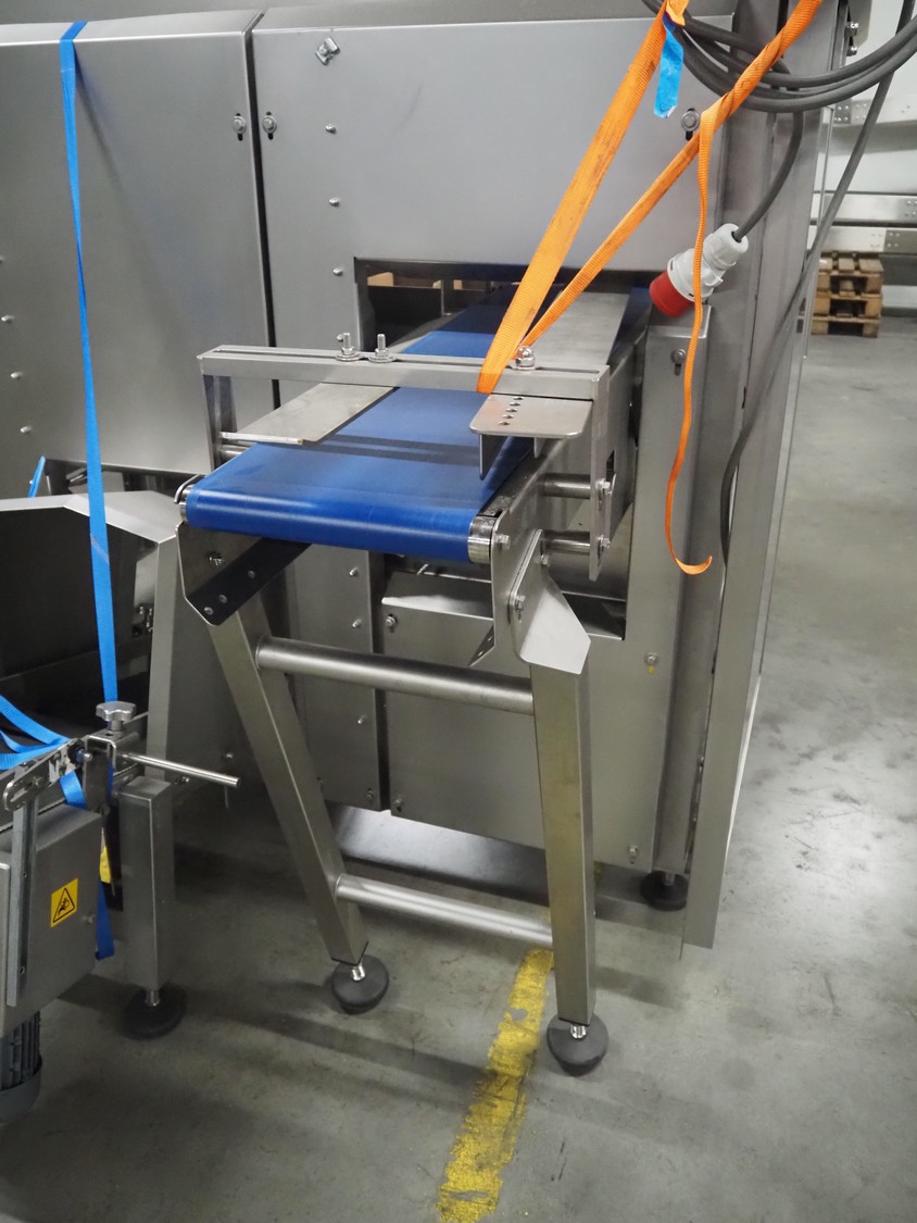 Automotion Systems BV box filling machine, type: ARE008, year of construction: 2018, 400 V, 3 Ph, 16 a, 3 kW, plastic belts, belt width: 280 mm and 170 mm, distance between dividers: 150 mm, divider height: 150 mm, total dimensions: 2300 mm x 2000 mm x 1850 mm. Including crate with extra parts.