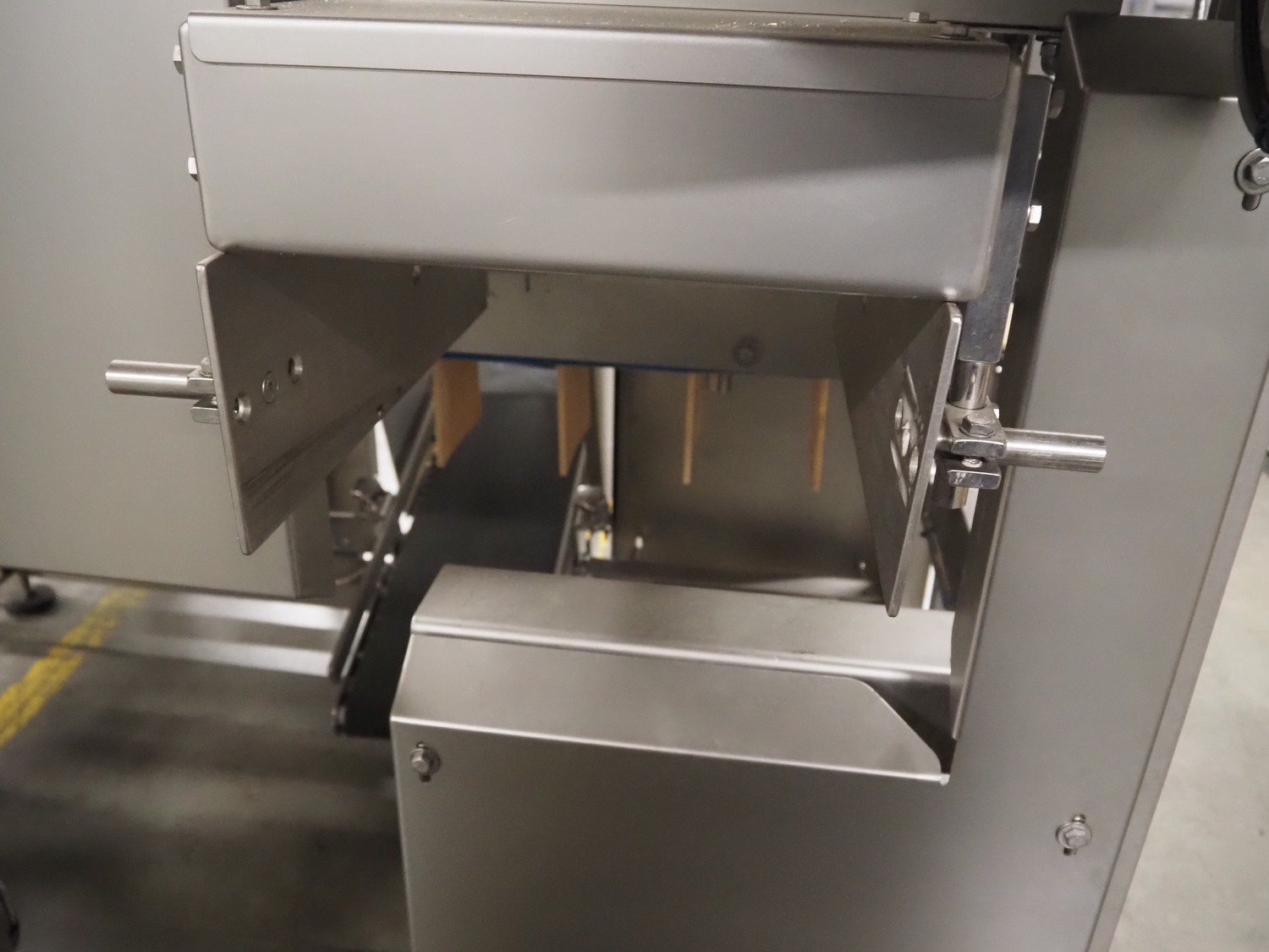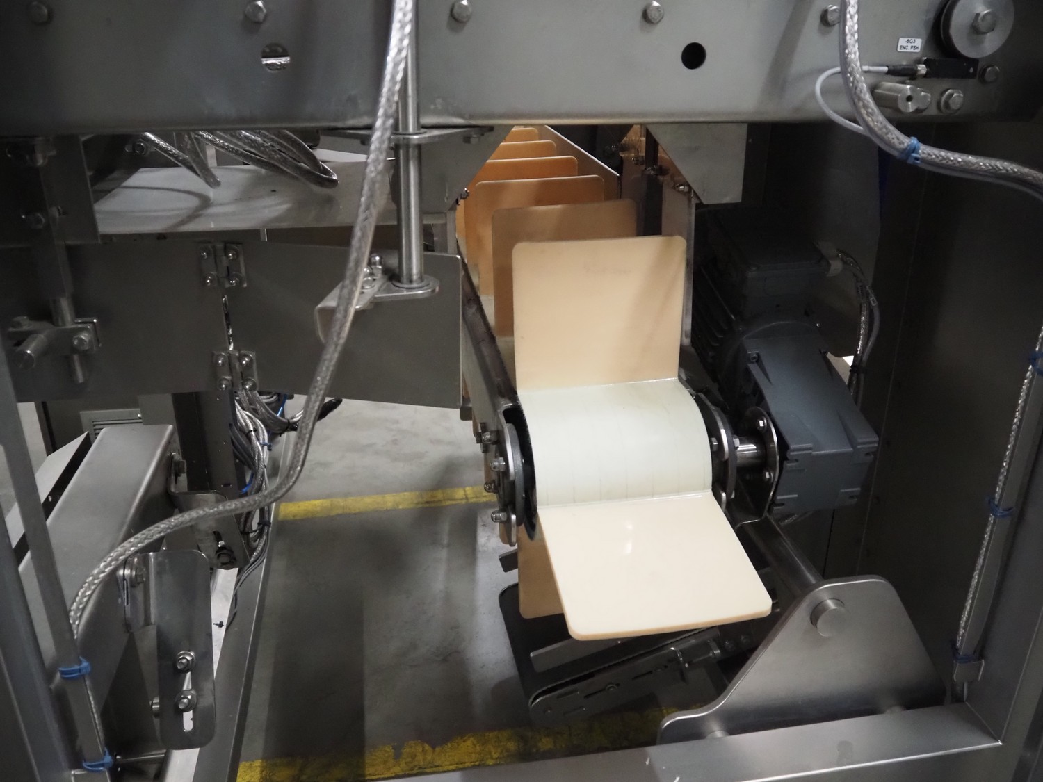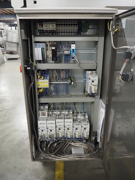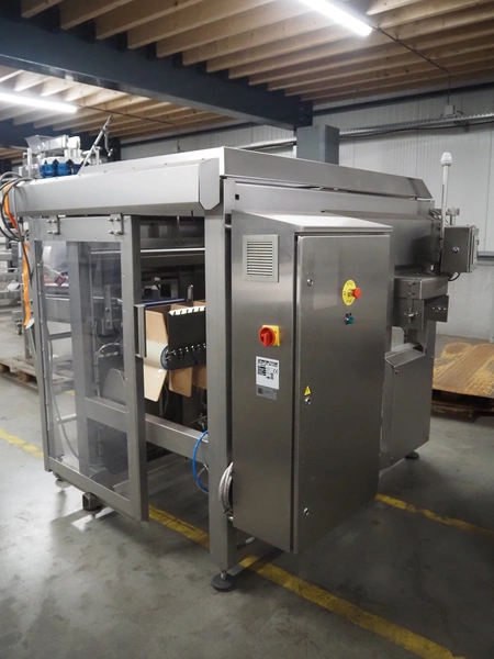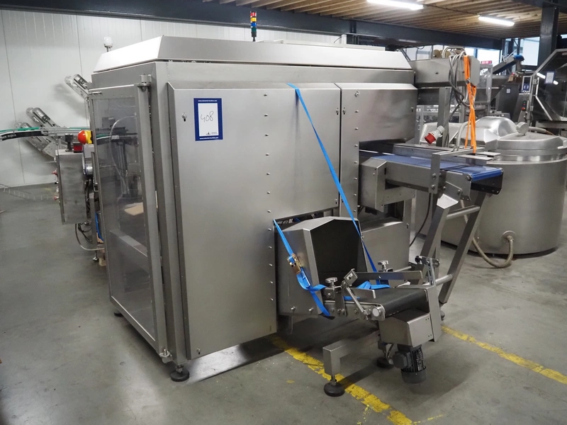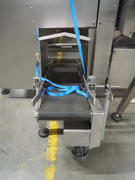 Automotion Systems BV box filling machine, type: ARE008, year of construction: 2018, 400 V, 3 Ph, 16 a, 3 kW, plastic belts, belt width: 280 mm and 170 mm, distance between dividers: 150 mm, divider height: 150 mm, total dimensions: 2300 mm x 2000 mm x 1850 mm. Including crate with extra parts.