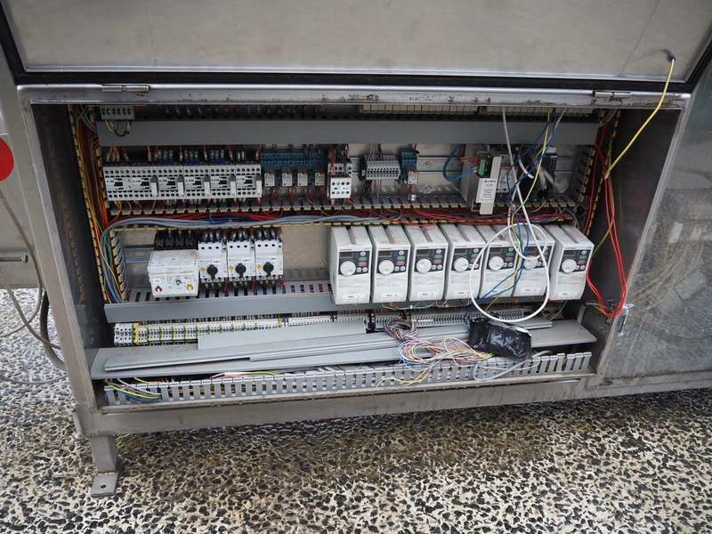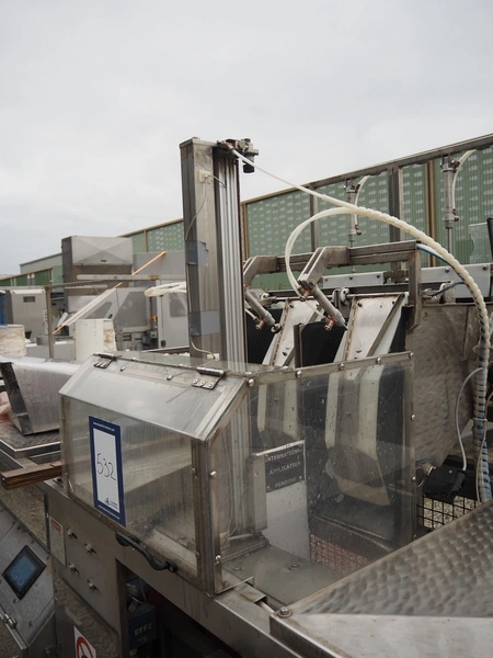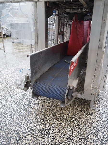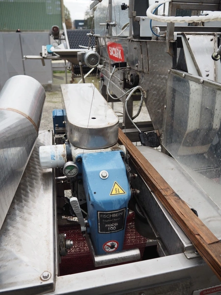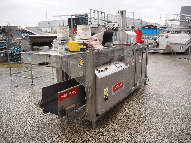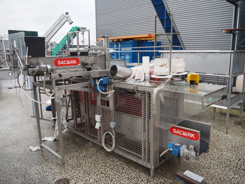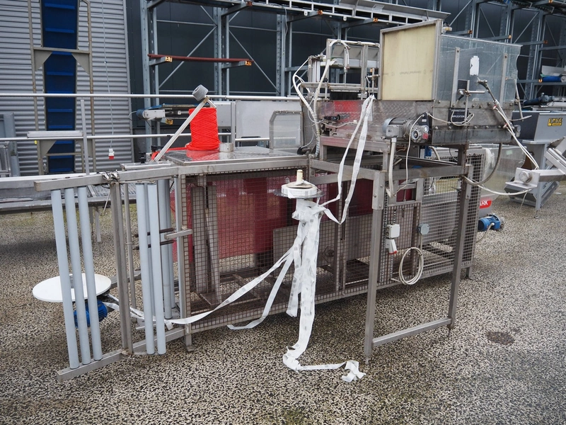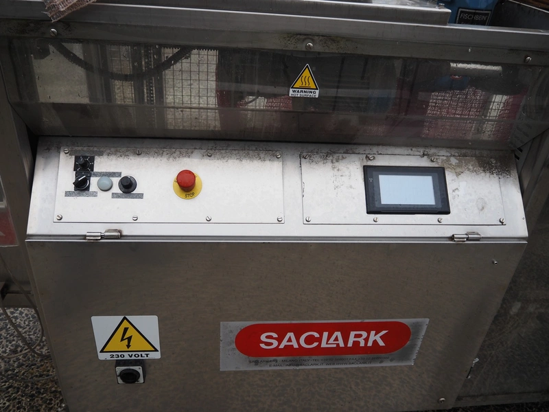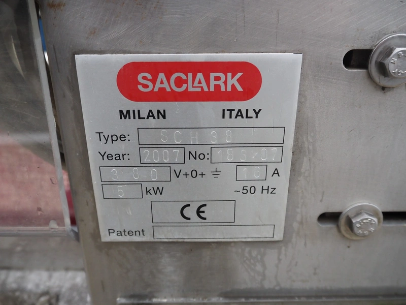Saclark rollstock bag filling machine, type: SCH 38, number: 183 07, 380 V, 16 A, 5 kW, net width: 900 mm, plastic belt, belt width: 300 mm, total dimensions: 4000 mm x 2400 mm x 2100 mm. Technical condition unknown.