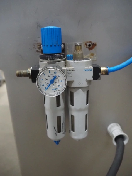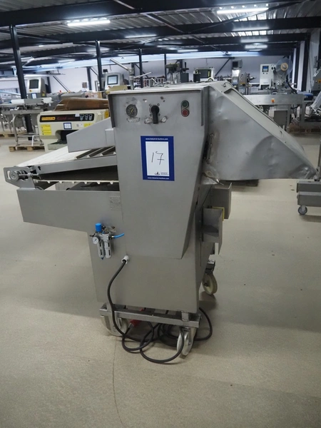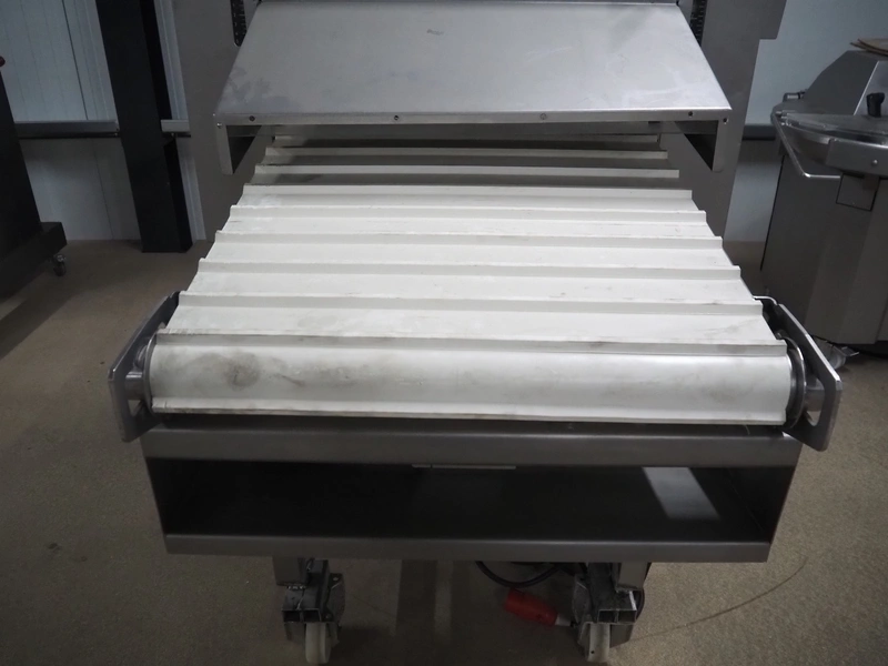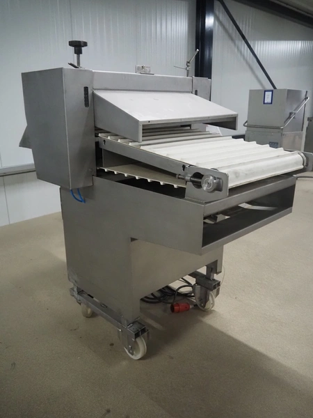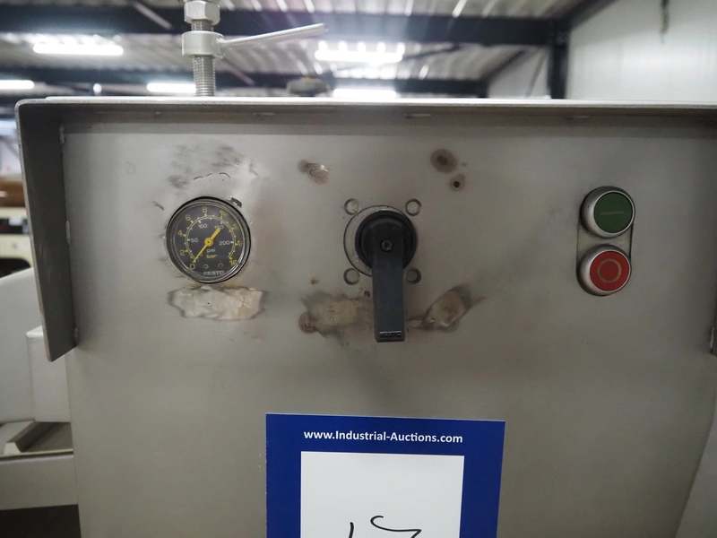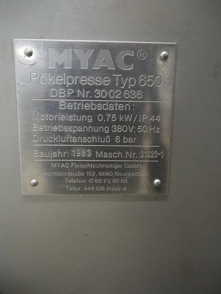 Myac mobile curing press, type: 650, machine number: 3002 636, year of construction: 1983, 380 V, 50 Hz, 0.75 kw, 6 bar, plastic belt, belt width: 650 mm, total dimensions: 1650 mm x 1000 mm x 1600 mm.