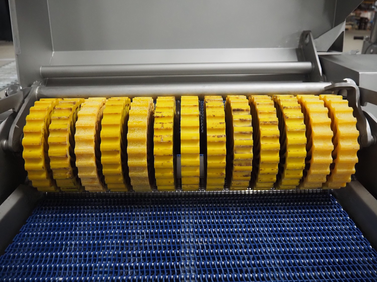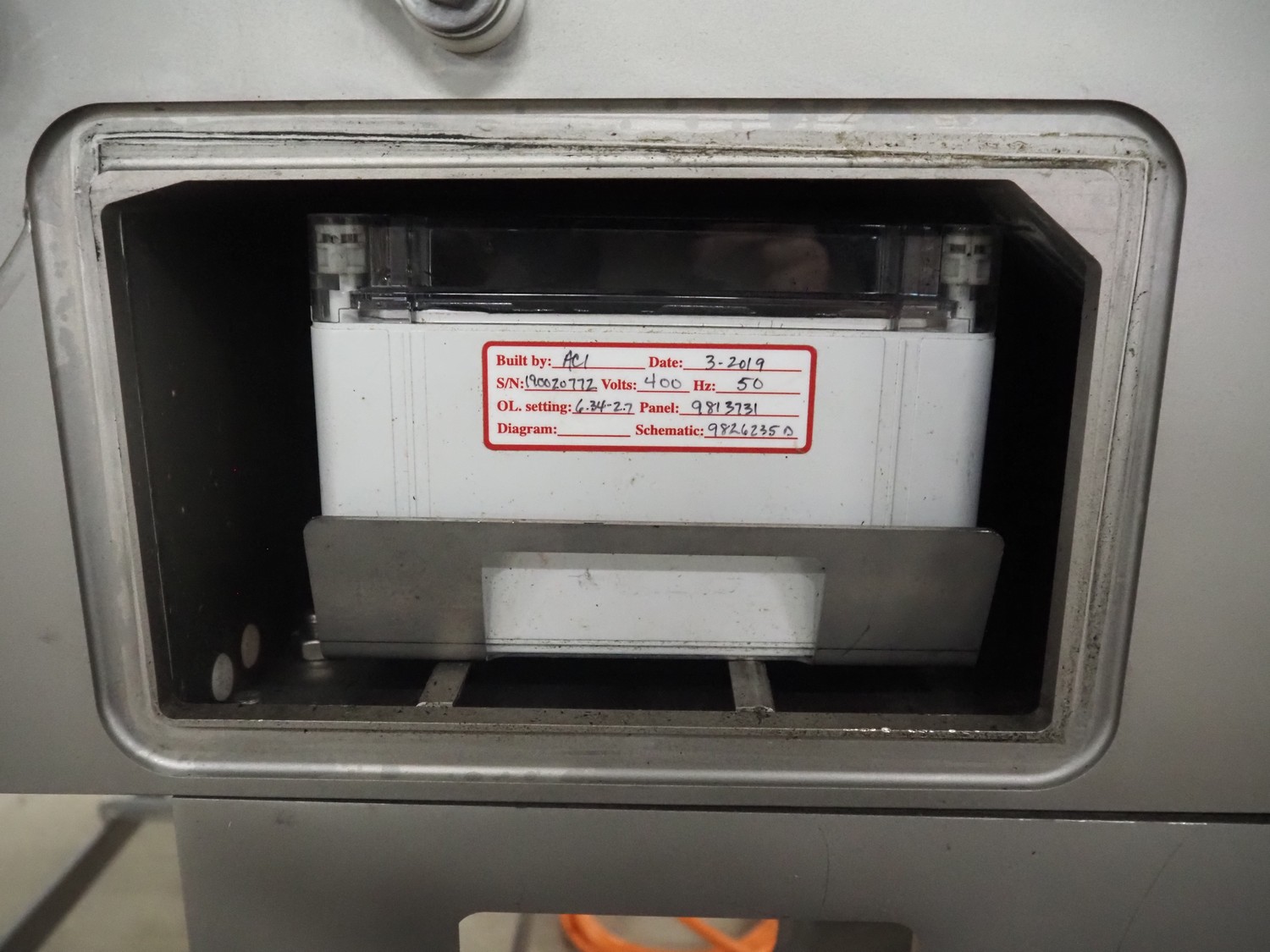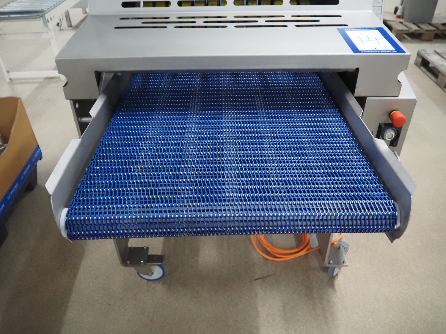Marel mobile skinning and derinding machine, model: SK 15-320 26 INCH, type: 9838645, serial number: 10421952, year of construction: 2019, 400 V, 3 Ph, 50 Hz, 3.5 A, weight: 447 kg, working width: 640 mm, plastic mesh belt, belt width: 650 mm, total dimensions: 2350 mm x 1150 mm x 1250 mm.