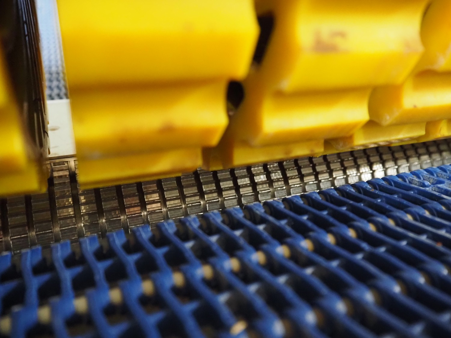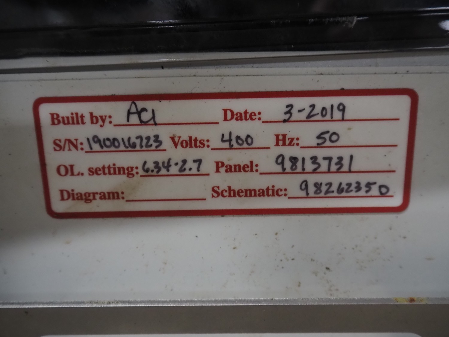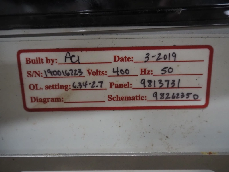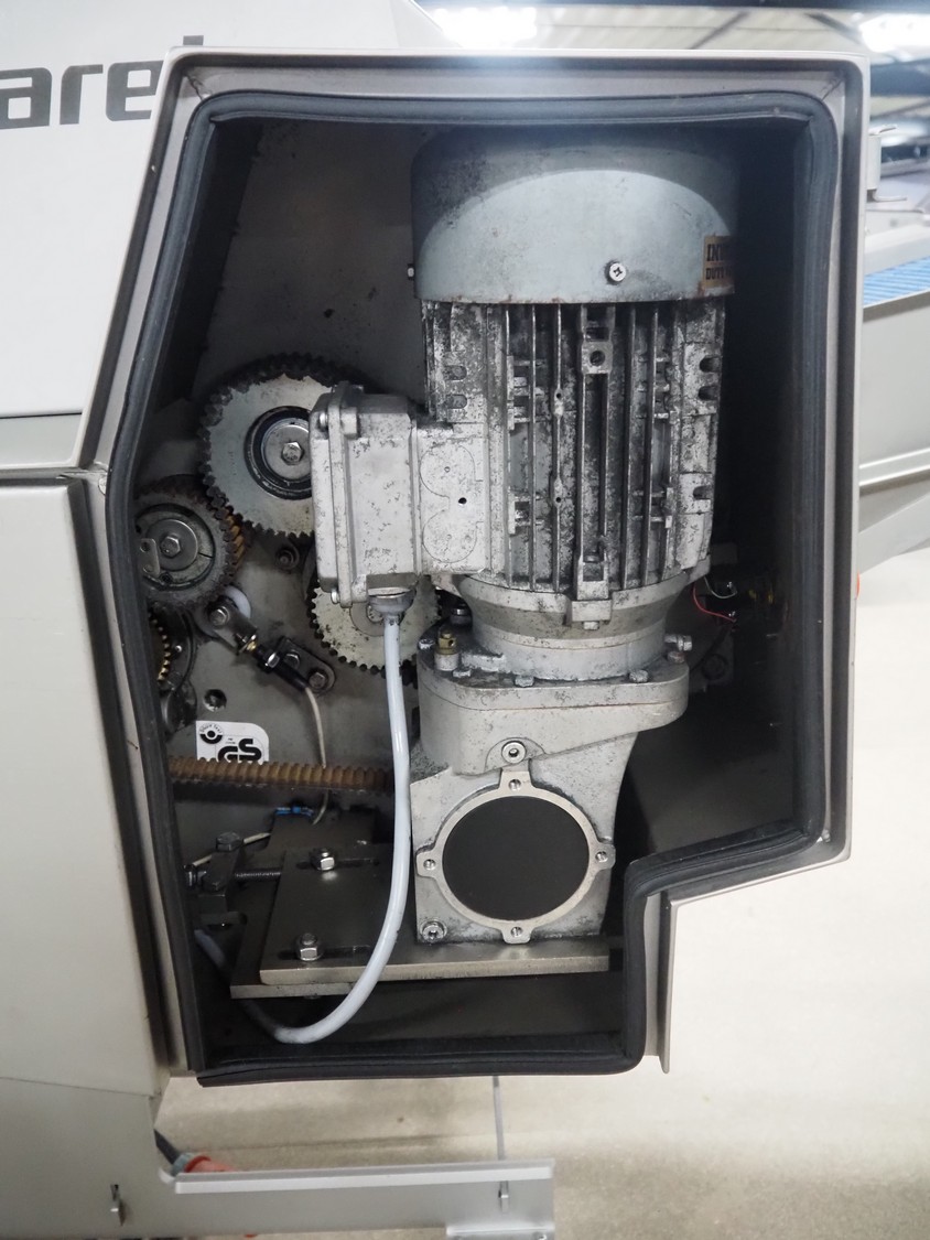 Marel mobile skinning and derinding machine, model: SK 15-320 20 INCH, type: 9838643, serial number: 10421662, year of construction: 2019, 400 V, 3 Ph, 50 Hz, 3.5 A, weight: 408 kg, working width: 500 mm, plastic mesh belt, belt width: 500 mm, total dimensions: 2200 mm x 1000 mm x 1300 mm.
