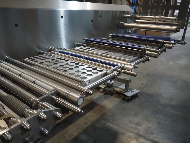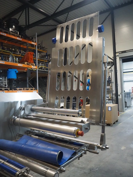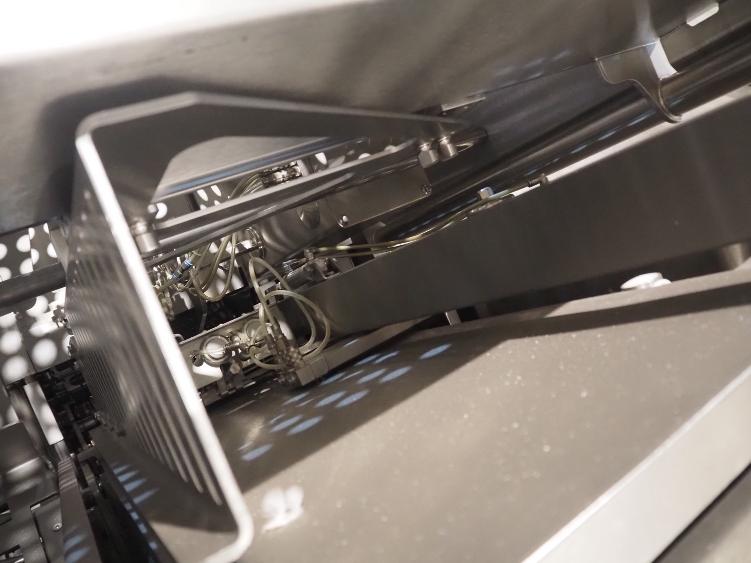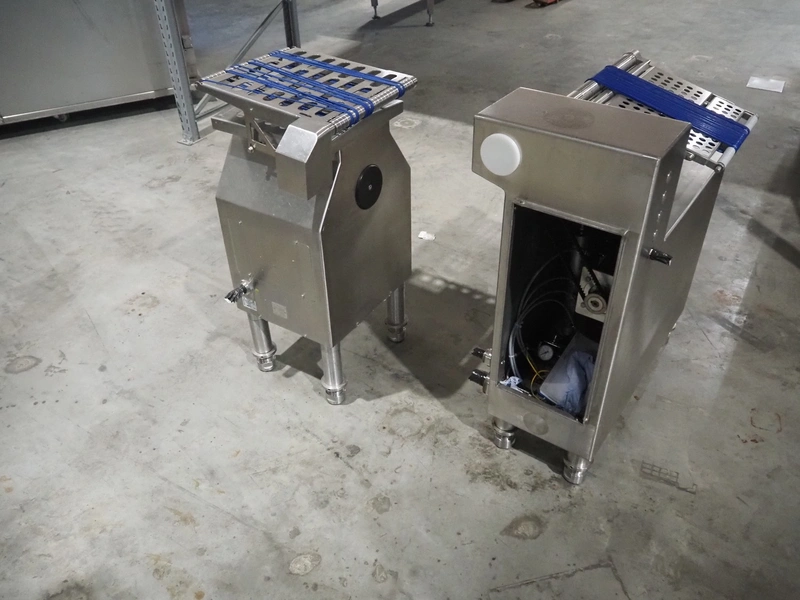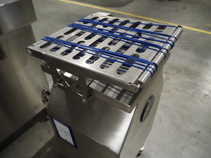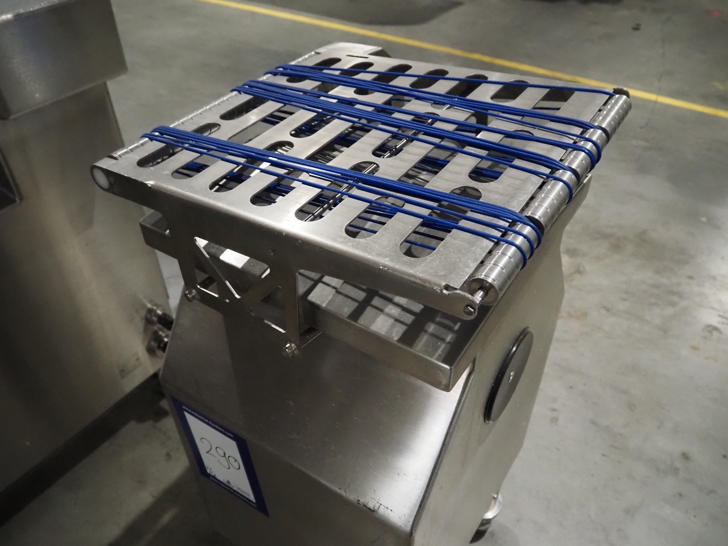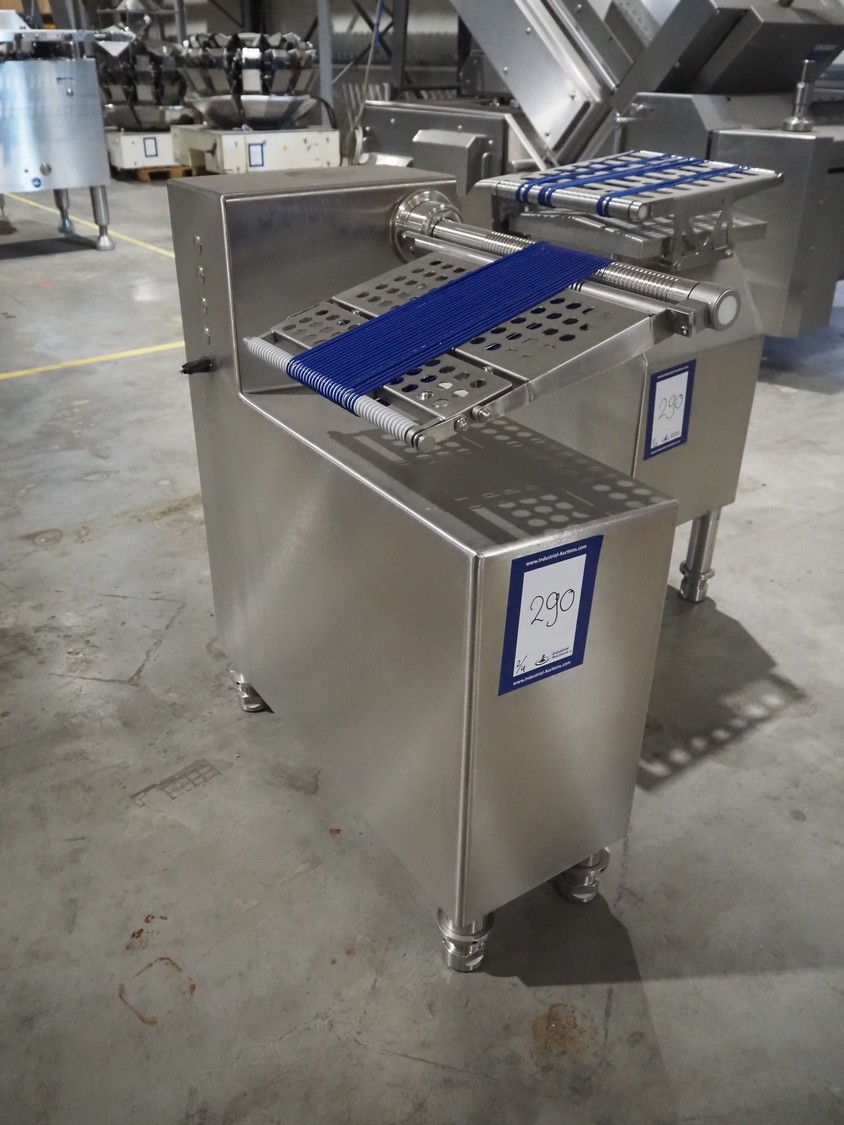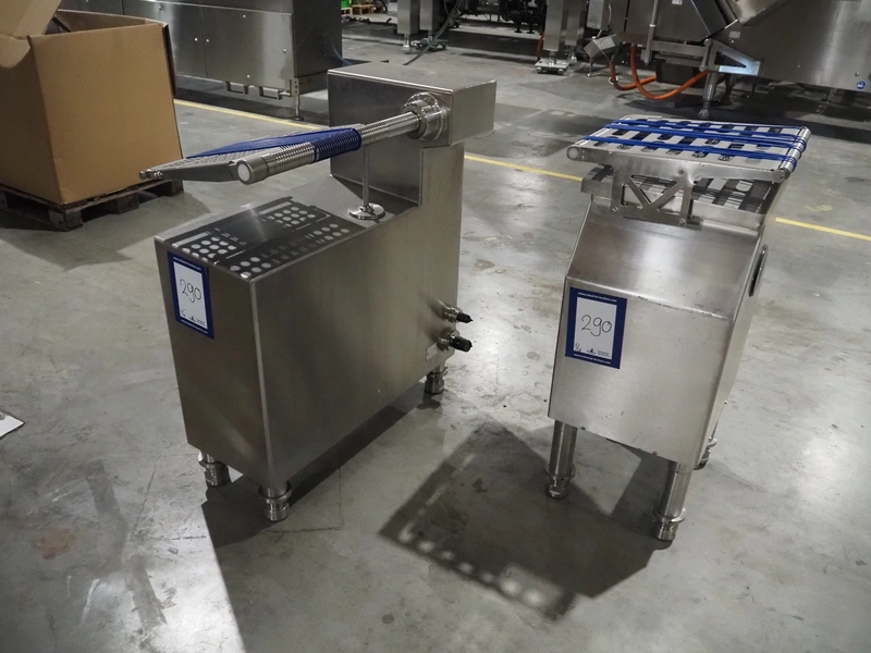 Weber slicer with checkweigher, rejecting belt and outfeed belt, type slicer: CCS 902, number: CCS 902-2750, year of construction: 05/2012, 415 V, 50 Hz, 10 kW, plastic infeed belt, belt width: 340 mm, plastic outfeed belt, belt width: 420 mm, total dimensions: 3100 mm x 1850 mm x 2600 mm. Wipotec checkweigher type: WEB 99 T35S, plastic wire belt, belt width: 360 mm, total dimensions: 500 mm x 900 mm x 1100 mm. Type weber rejecting belt: CCW, number: 2623, plastic wire belt, belt width: 360 mm, total dimensions: 500 mm x 900 mm x 1100 mm. Weber outfeed belt, type: CCA, number: 2622, year of construction: 2006, 400 V, 50 Hz, 7 kW, plastic wired belt, belt width: 520 mm, total dimensions: 5370 mm x 1800 mm x 1800 mm. Without rollies.