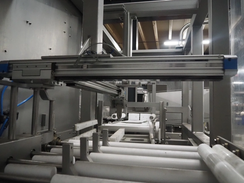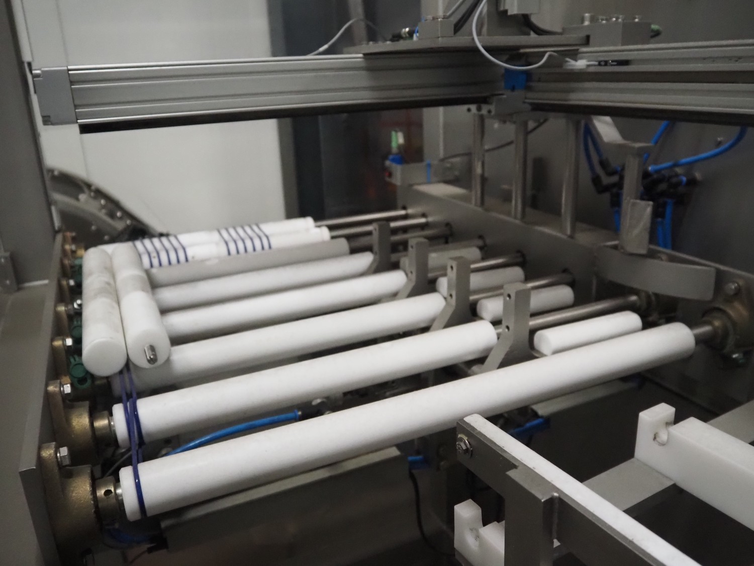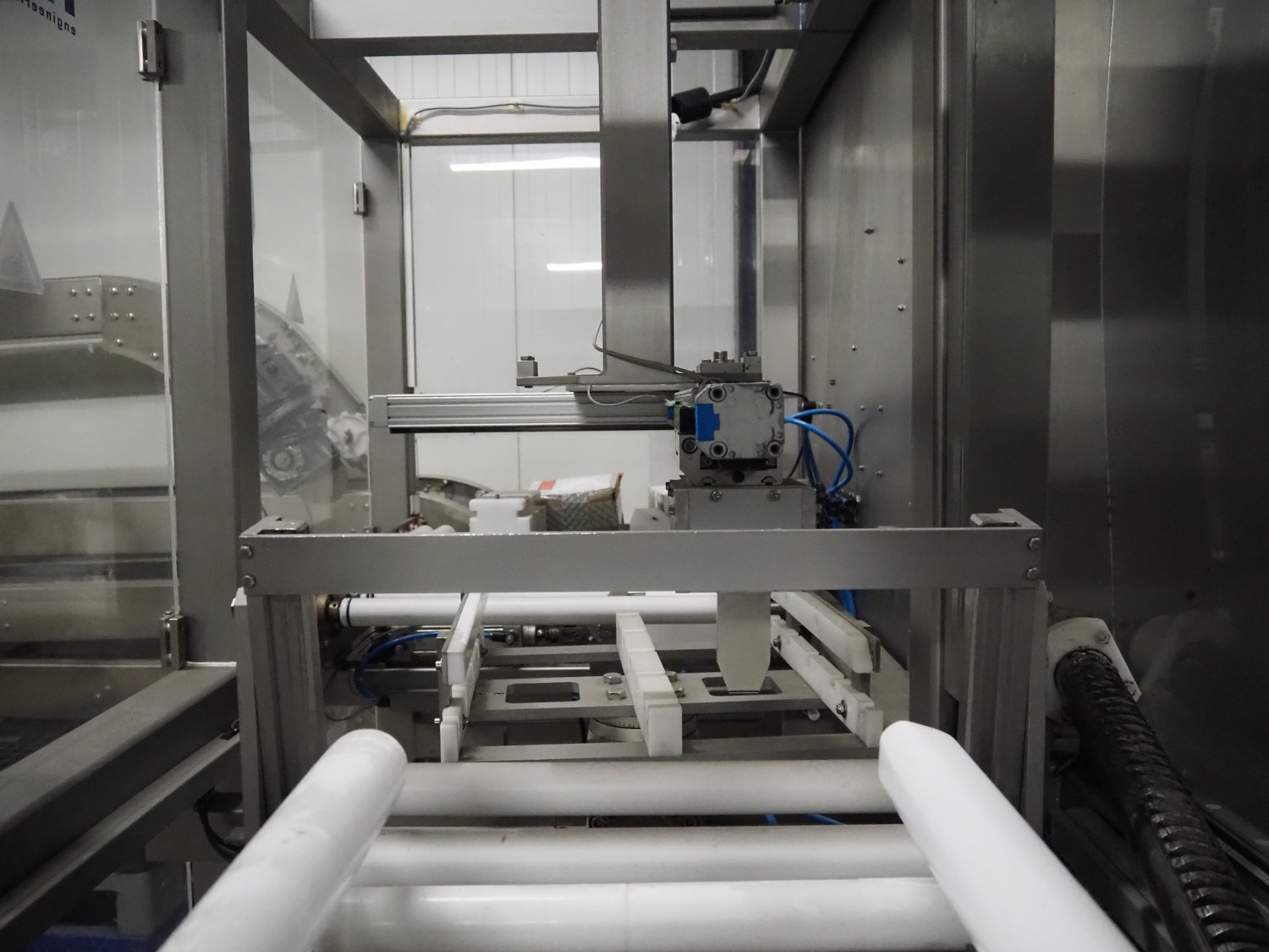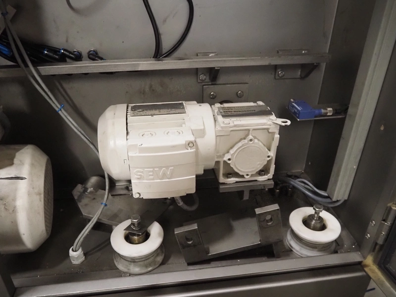 Machinefabriek Hendriks B.V. horizontal slicer for cheese, type: Horizontale deelmachine 2, serial number: 20400, year of construction: September 2003, 400 V, 3 Ph, 50 Hz, 4.9 A, 3 kW, 10 kA, 6 bar, plastic rollers, roller width: 400 mm, total dimensions: 2700 mm x 1250 mm x 2050 mm.