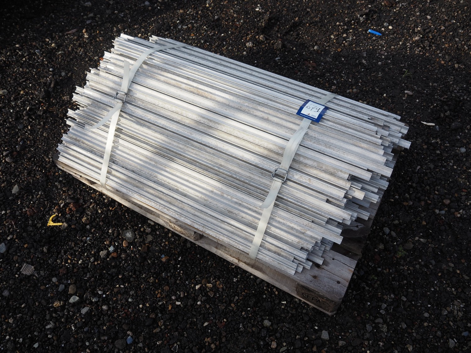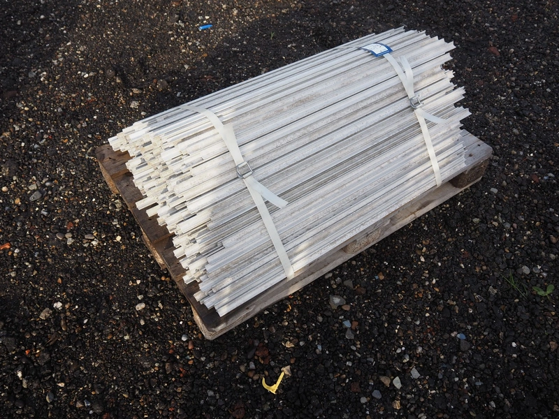 Pallet with large amount of aluminium smoke sticks, length: 1000 mm.