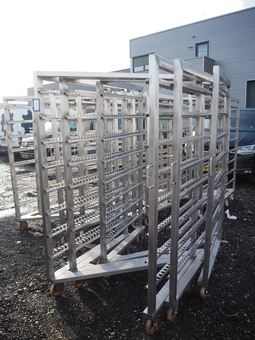 3 s/s Z-shaped smoke trolleys, 8 floors, dimensions each floor: 1000 mm x 900 mm, total dimensions: (3x) 1080 mm x 1040 mm x 2000 m…1 bidLot is closed
