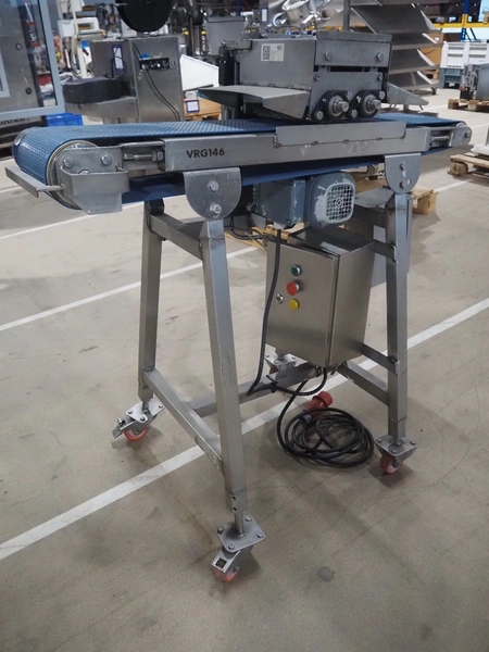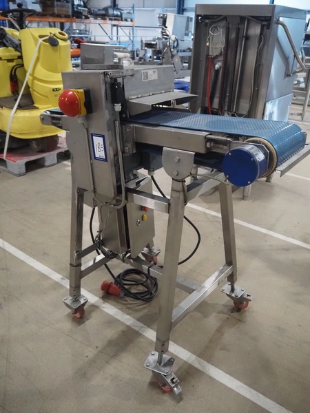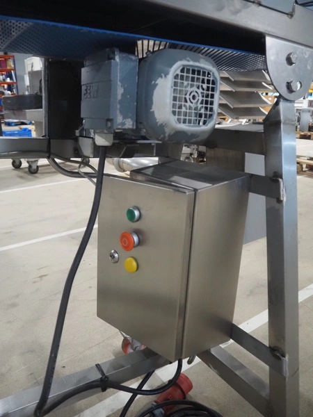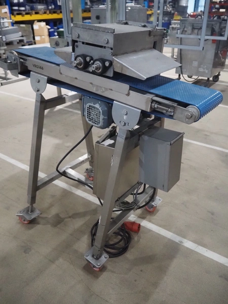 Mobile tenderizer, plastic belt, belt width: 230 mm, total dimensions: 1200 mm x 550 mm x 1200 mm.