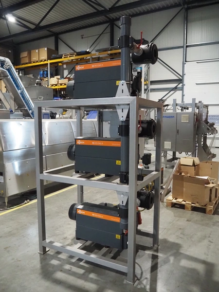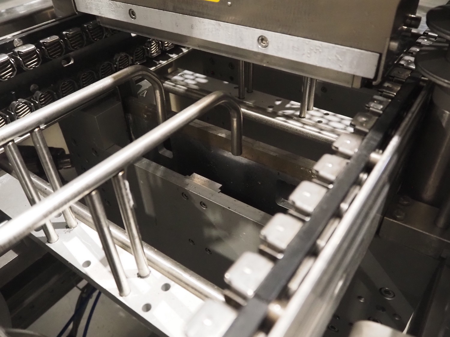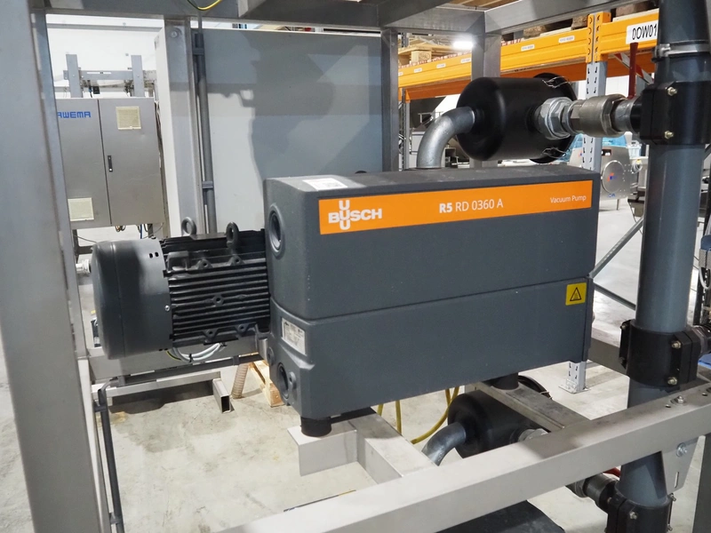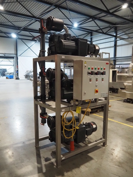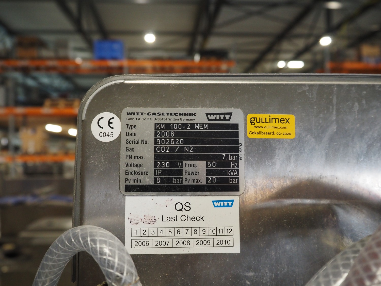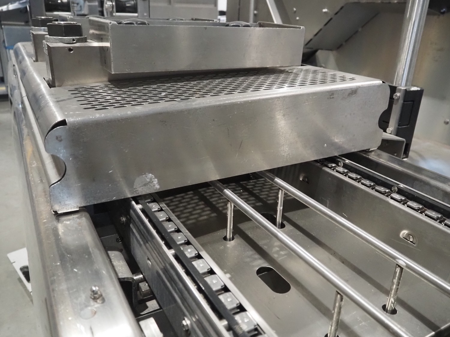 Multivac thermoformer with MR Etikettiertechnik GmbH labelling unit, model: R245, machine number: 124685, year of construction: 2008, 400 V, 3 Ph, 50 Hz, 18 A, 7 kW, type labelling unit: MR 6318, type Witt-Gasetechnik gas mixing station: KM 100-2 MEM, dye: (6x) 103 mm x 90 mm, total dimensions: 8300 mm x 1600 mm x 2250 mm. Including Multivac inliner, belt width: (3x) 70 mm, (1x) 315 mm, total dimensions: 2050 mm x 600 mm x 1050 mm, and pallet with parts, dimensions: 1200 mm x 800 mm x 500 mm. Without rollies.