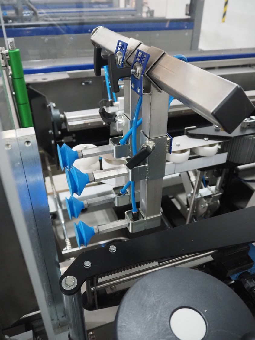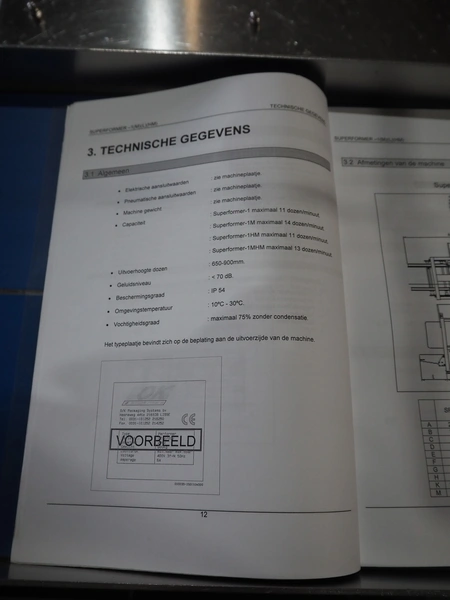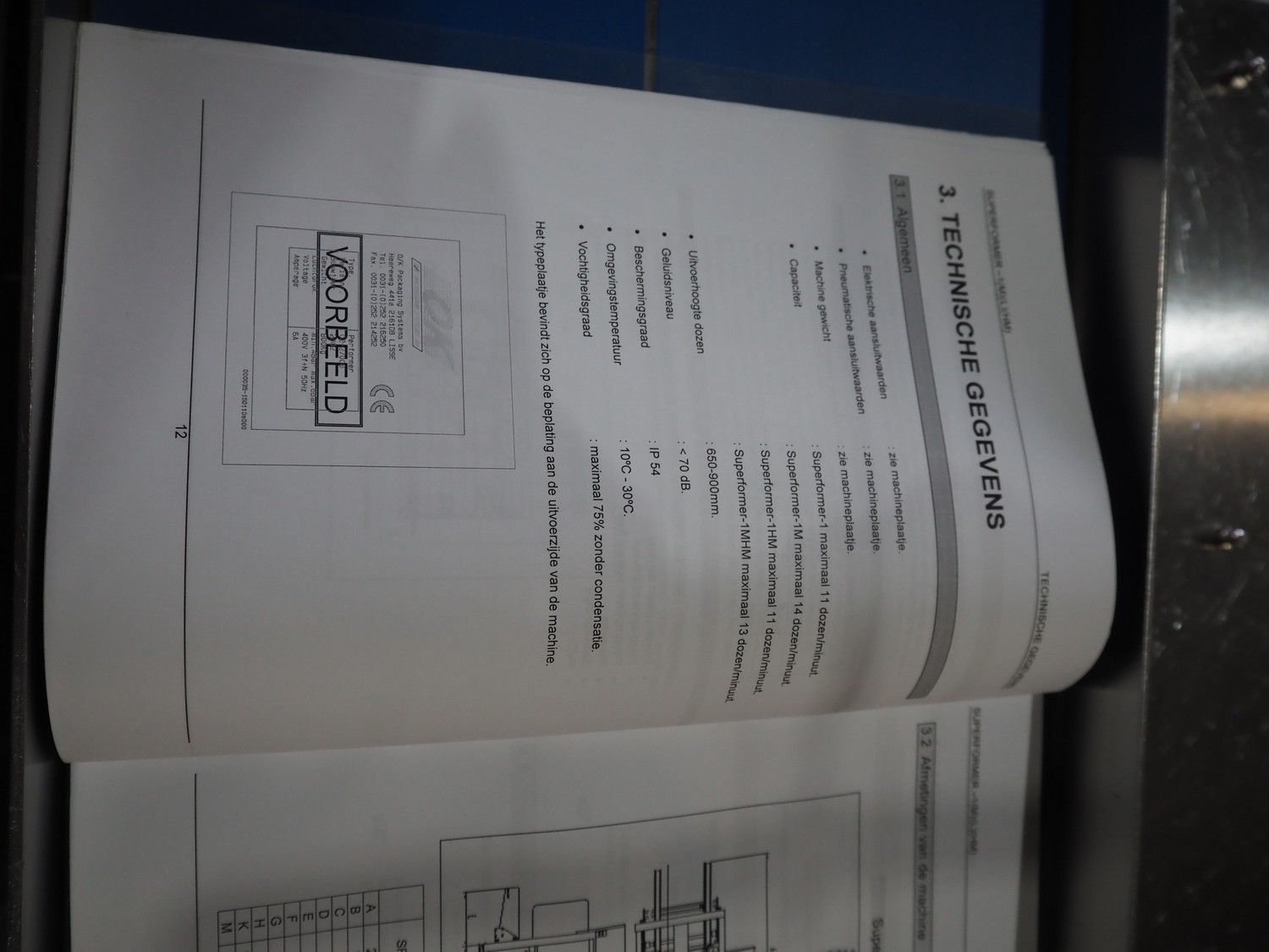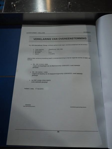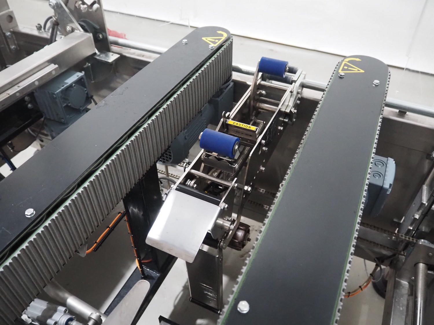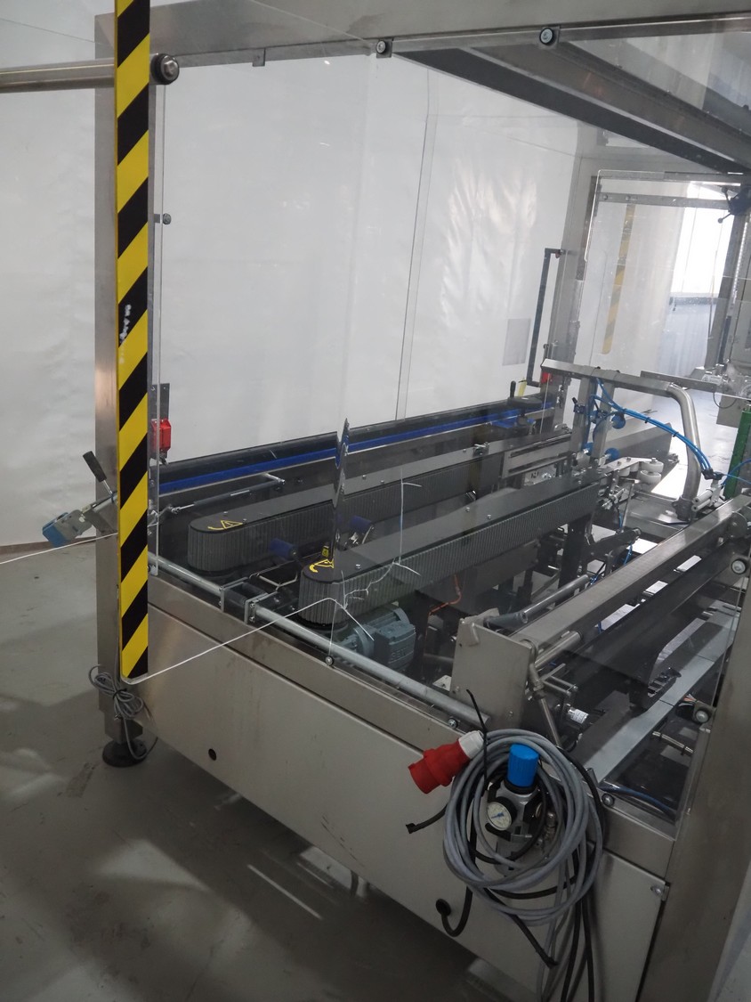 O/K Packaging Systems bv case erector, type: Superformer-1, serial number: 16-22018, year of construction: 2016, 400 V, 3 Ph, 50 Hz, 10 A, weight: 1200 kg, plastic belts, belt width: (2x) 95 mm, total dimensions: 3750 mm x 1700 mm x 2130 mm.