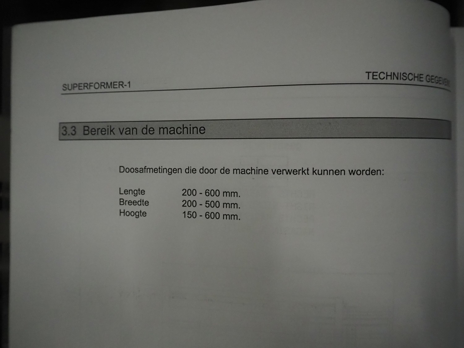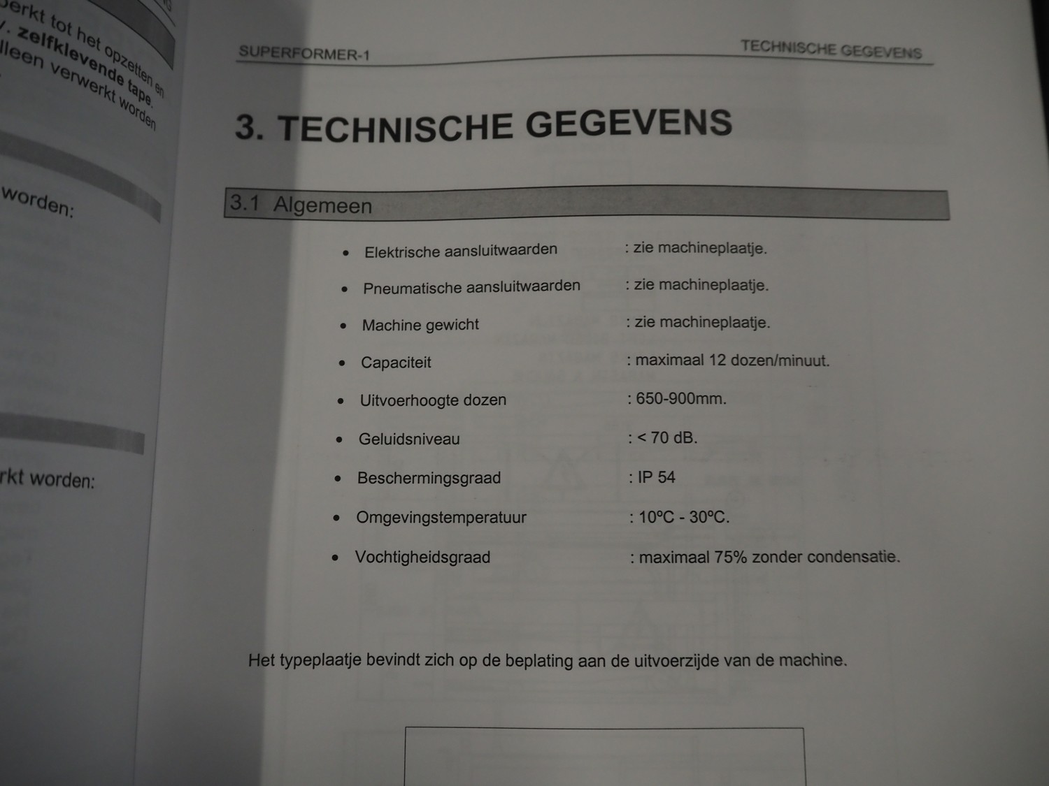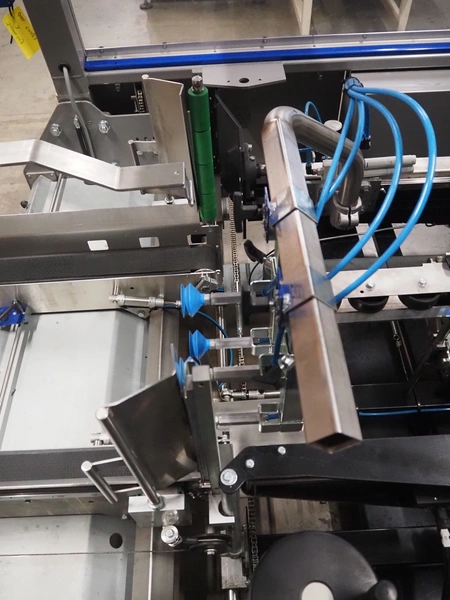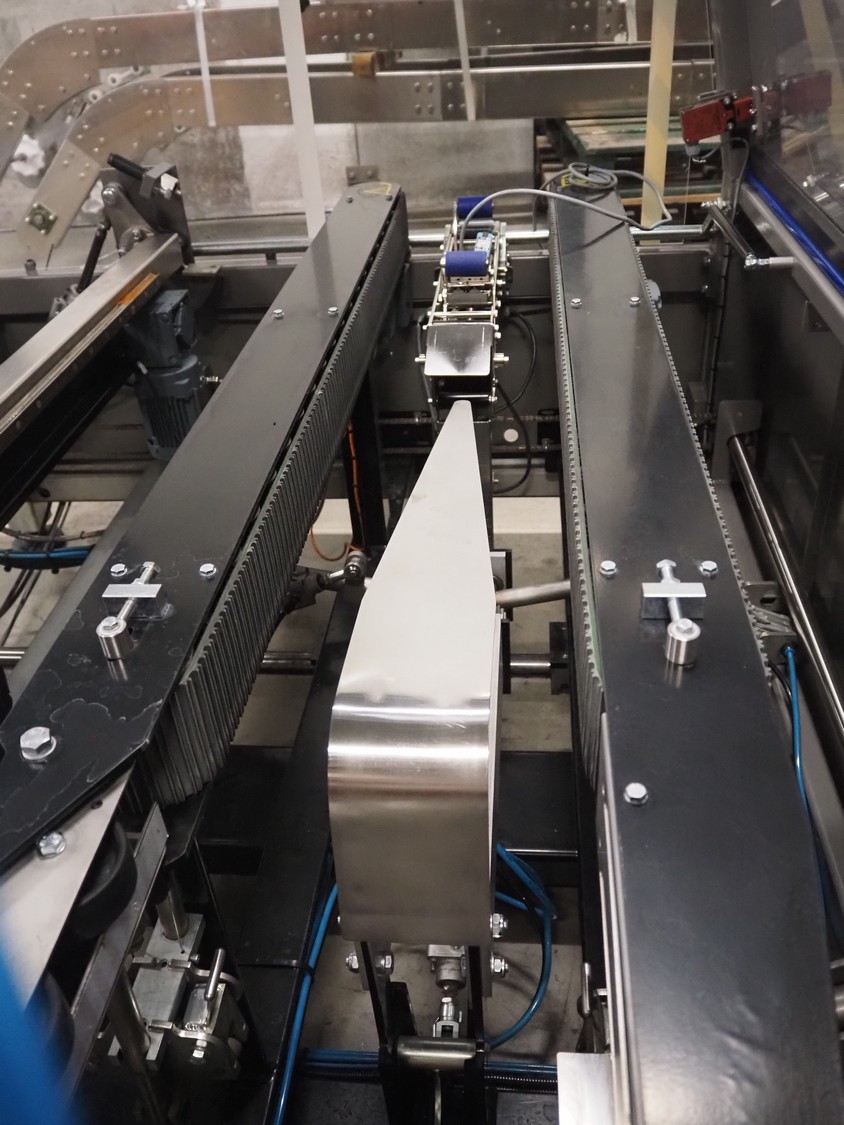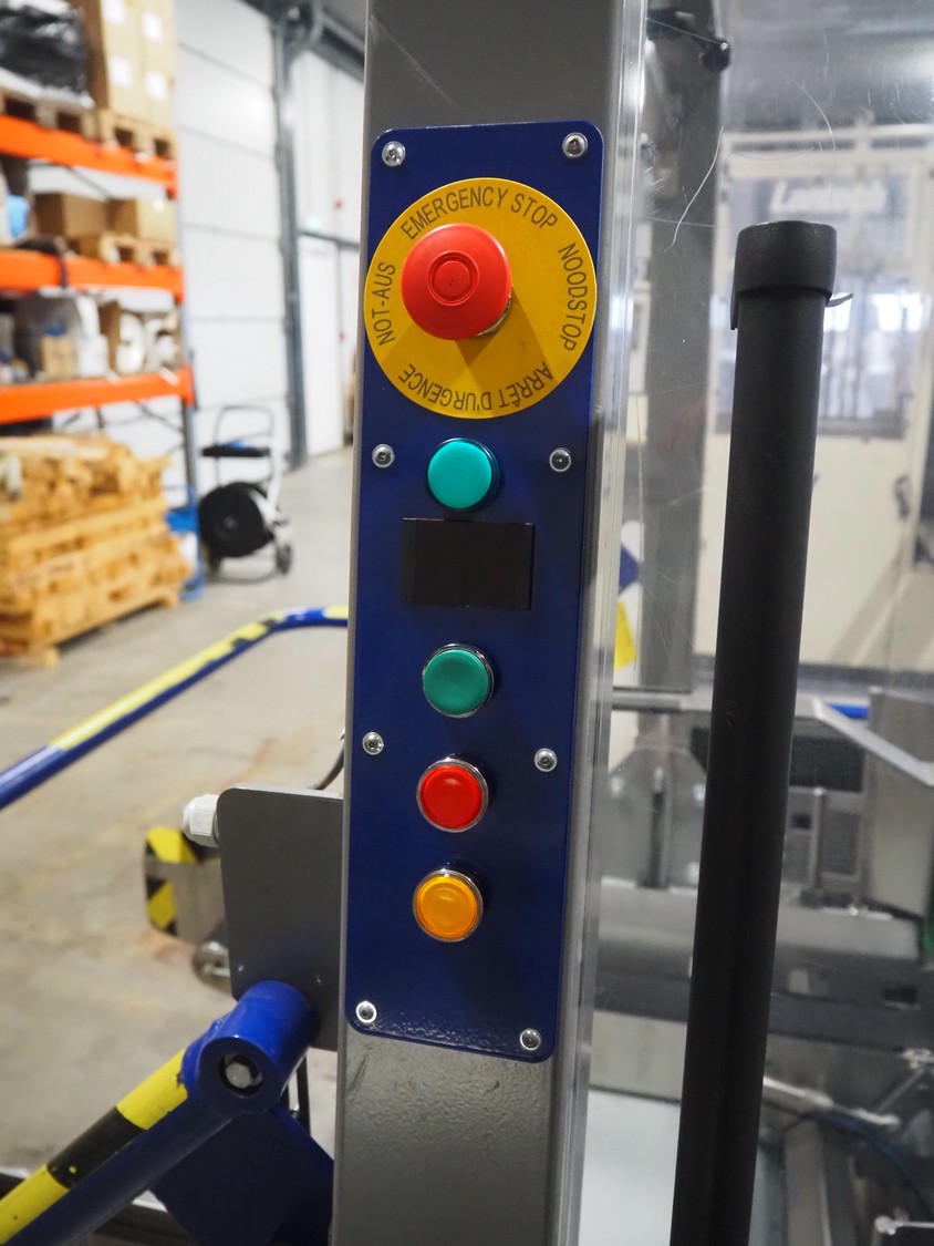 O/K Packaging Systems bv case erector, type: Superformer-1, serial number: 09-21768, year of construction: 2009, 400 V, 3 Ph, 50 Hz, 10 A, weight: 1200 kg, maximum box width: 350 mm, plastic belts, belt width: (2x) 95 mm, total dimensions: 3250 mm x 1700 mm x 2130 mm.