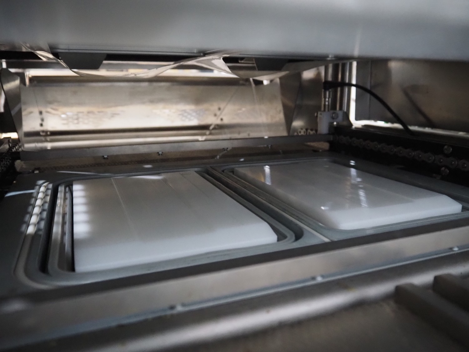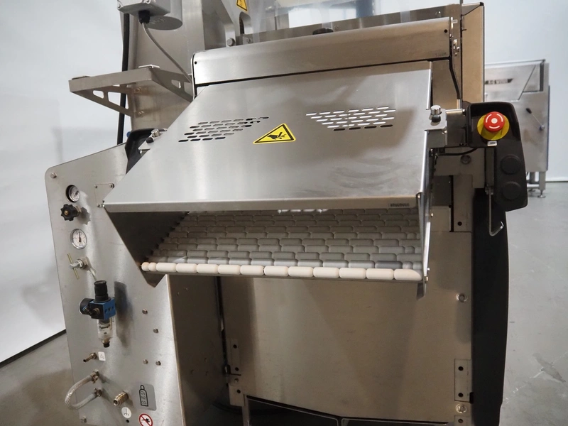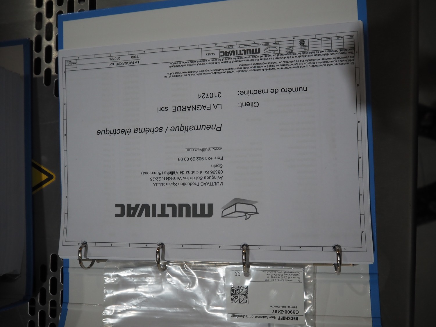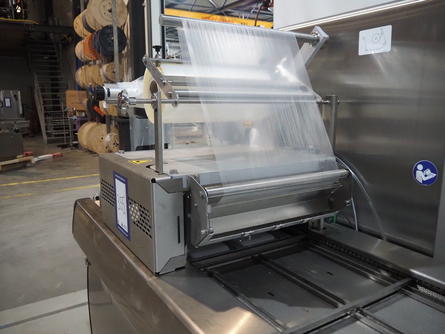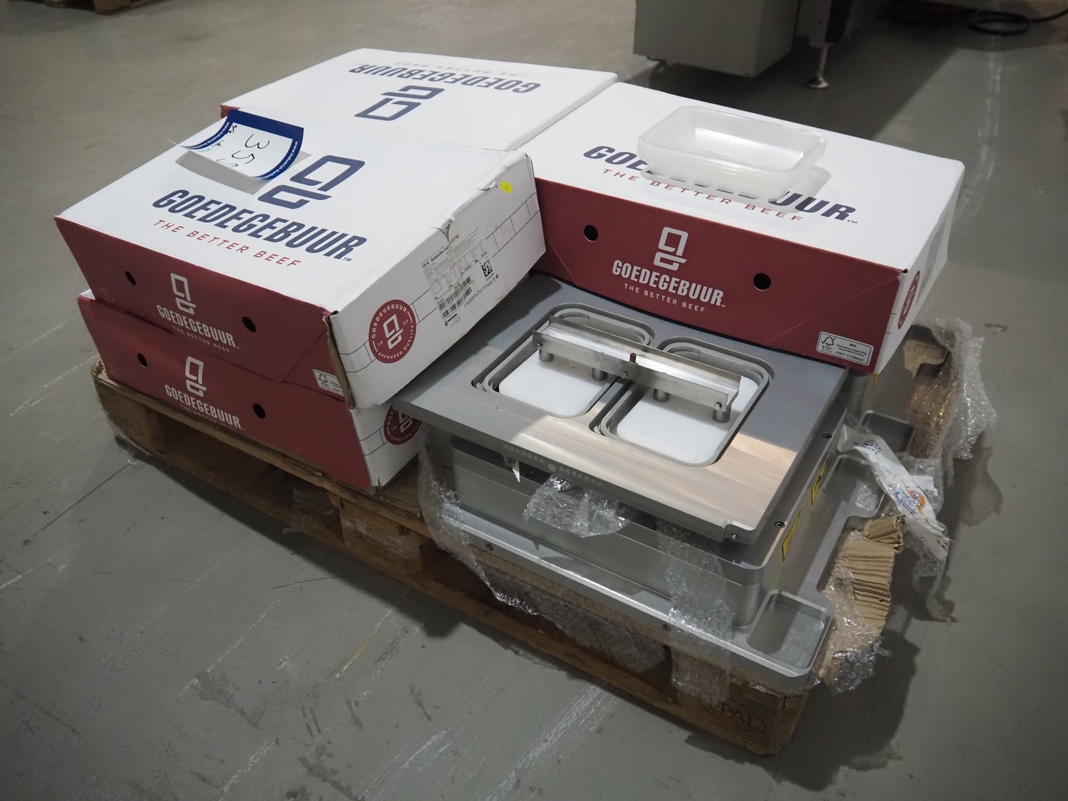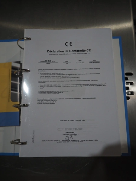 Multivac traysealer, type: T300, serial number: 310724, year of construction: 2021, 400/230 V, 3 Ph, 50 Hz, 34.7 A, 8.8 kW, Busch vacuum pump, capacity: 100 m³ per hour, dimensions dyes: 247 mm x 314 mm, 230 mm x 145 mm, 175 mm x 228 mm and 256 mm x 175 (for skin packing), dimensions: 3200 mm x 1100 mm x 1700 mm.