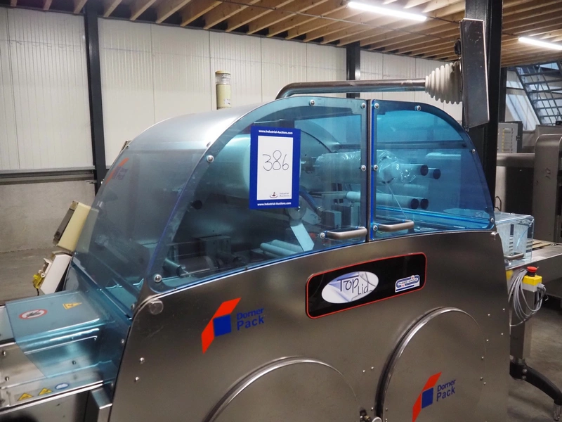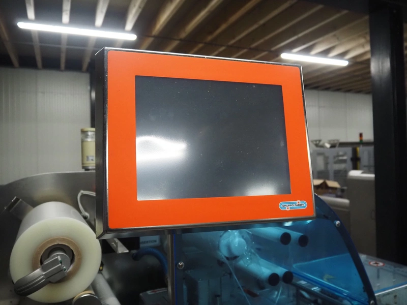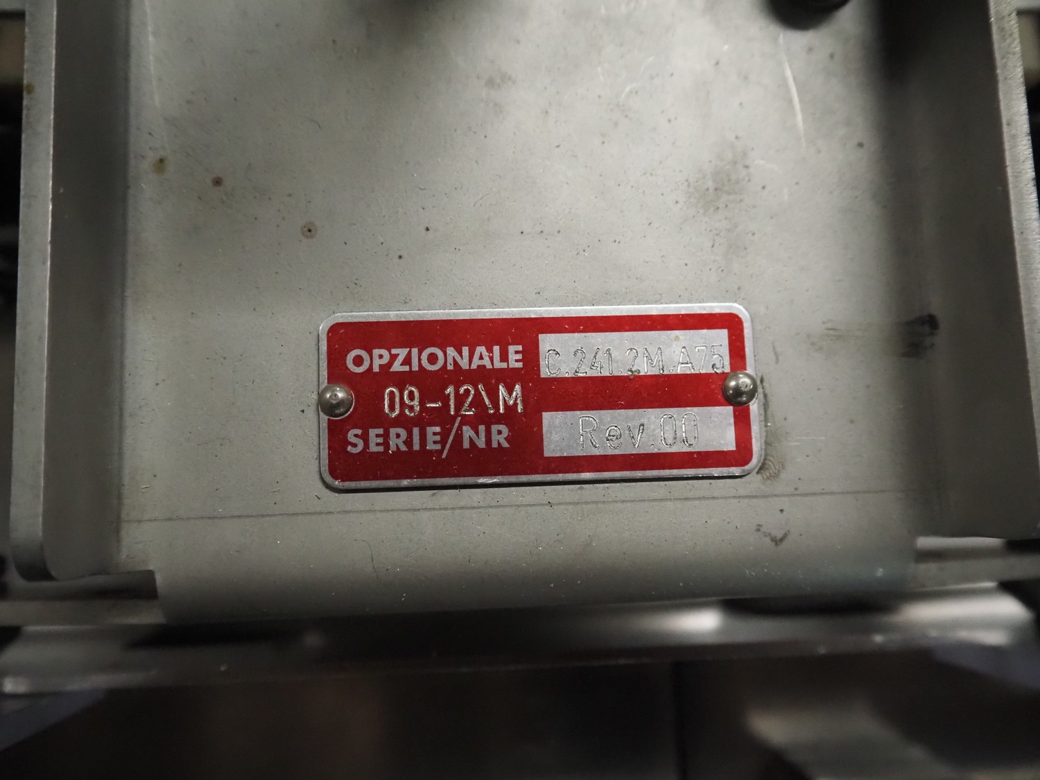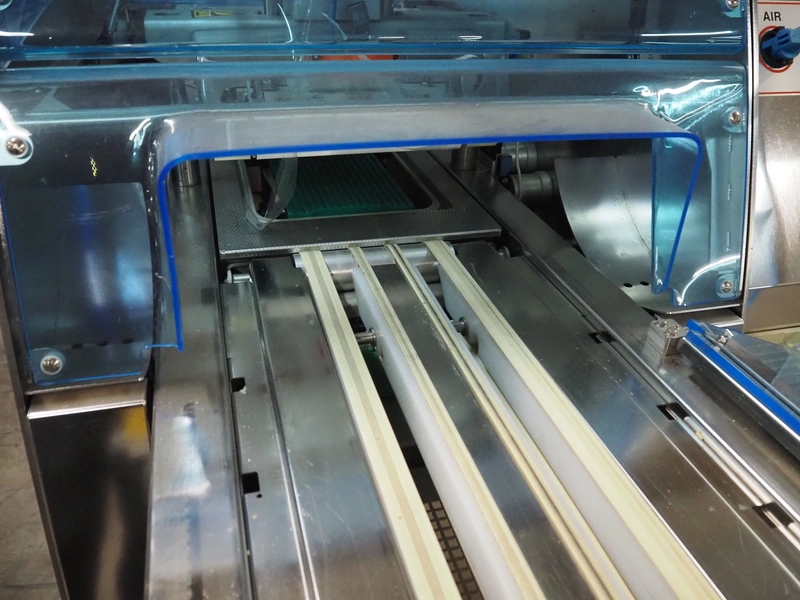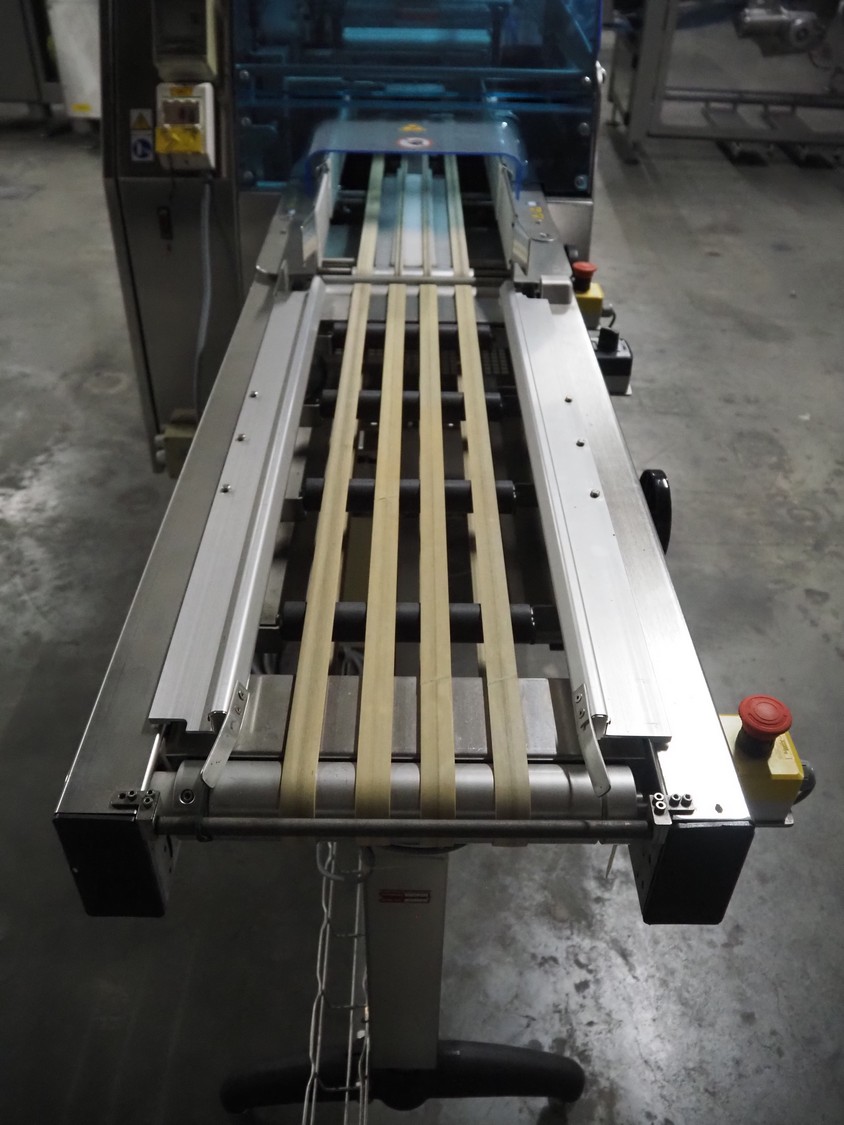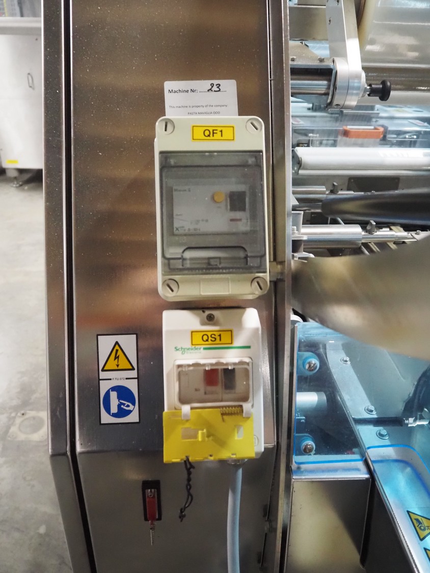 Gruppo Fabbri SA traysealer, model: B-241, serial number: 4-251, year of construction: 2012, 400 V, 3 Ph, 50-60 Hz, 10 A, weight: 610 kg, plastic string belt, belt width: 175 mm, dimensions dye: 300 mm x 240 mm, film width: 330 mm, total dimensions: 3830 mm x 950 mm x 1770 mm.