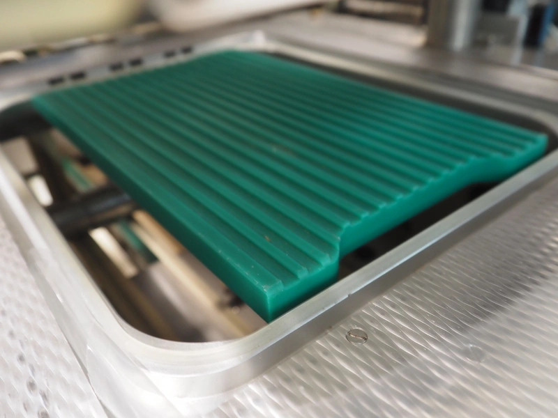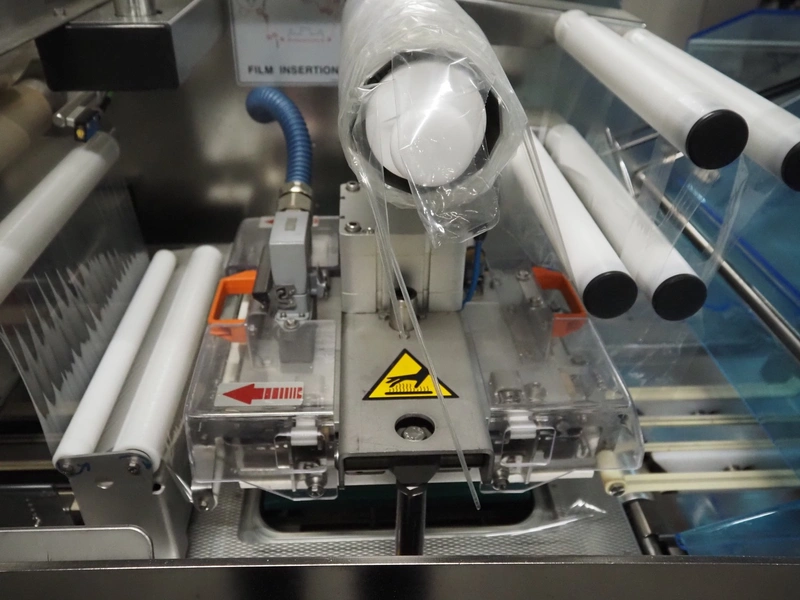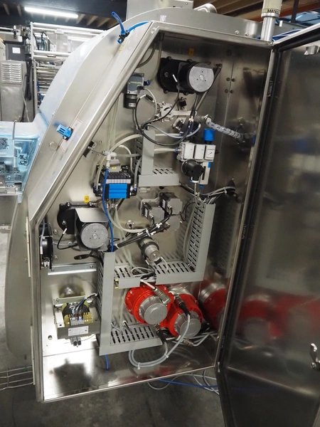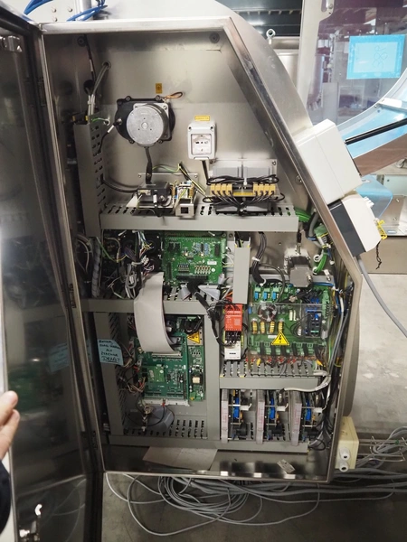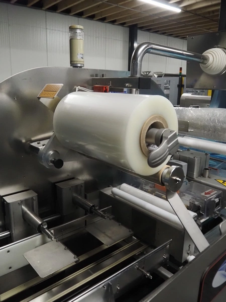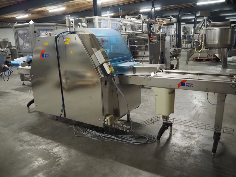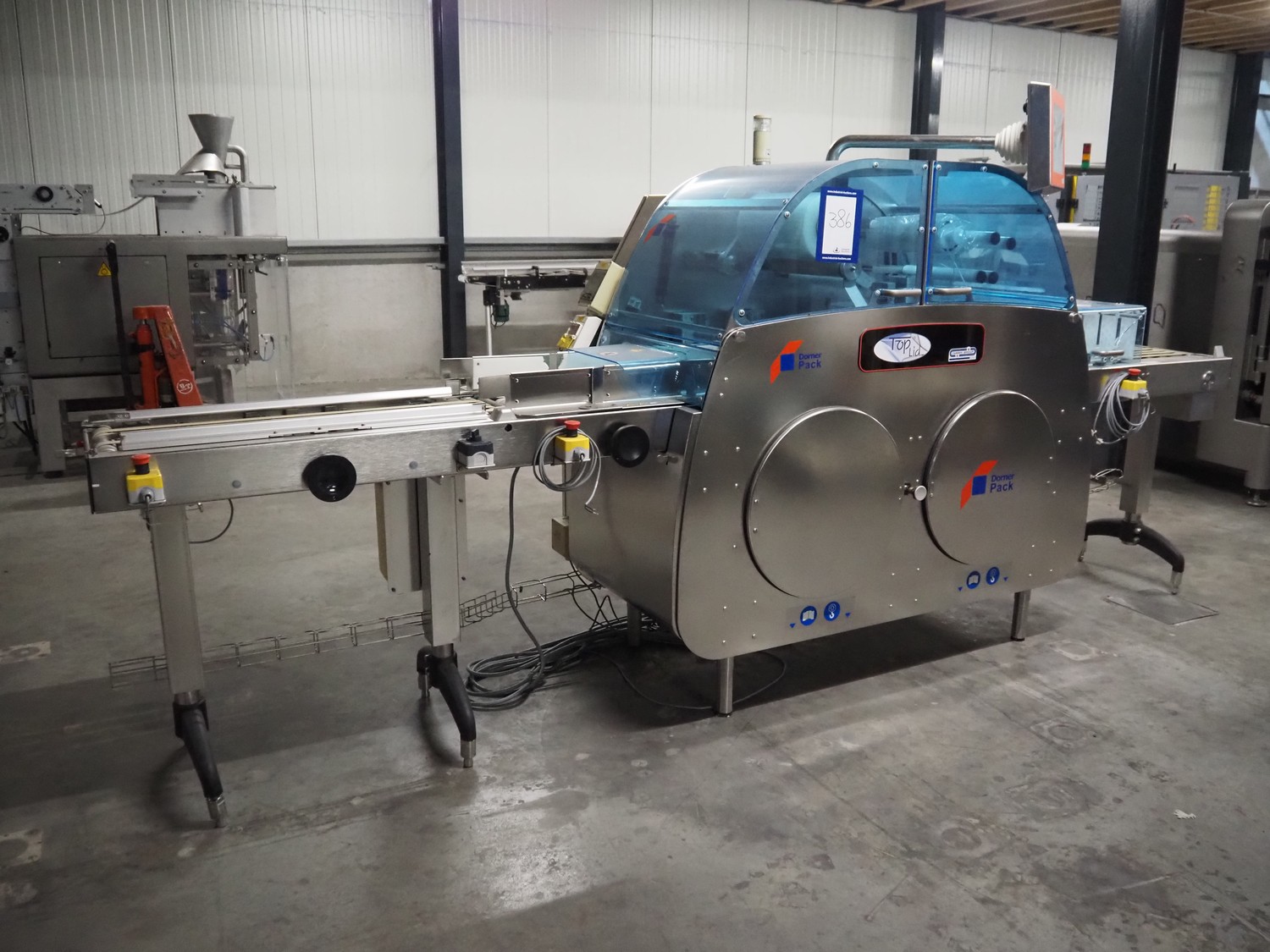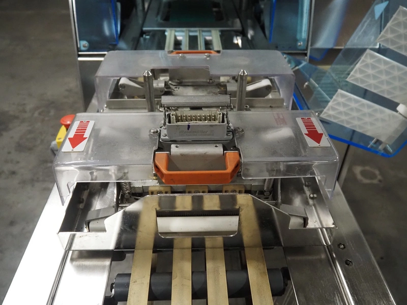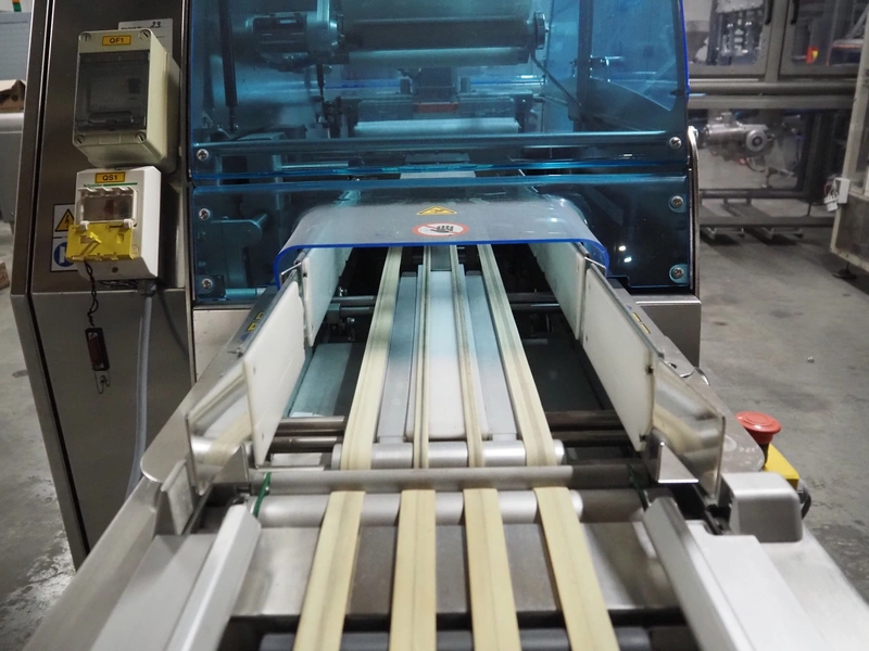 Gruppo Fabbri SA traysealer, model: B-241, serial number: 4-251, year of construction: 2012, 400 V, 3 Ph, 50-60 Hz, 10 A, weight: 610 kg, plastic string belt, belt width: 175 mm, dimensions dye: 300 mm x 240 mm, film width: 330 mm, total dimensions: 3830 mm x 950 mm x 1770 mm.
