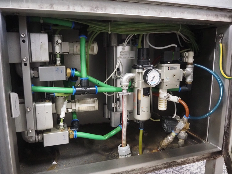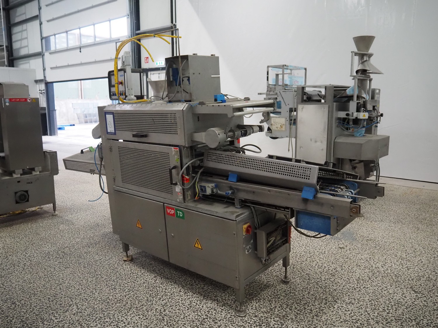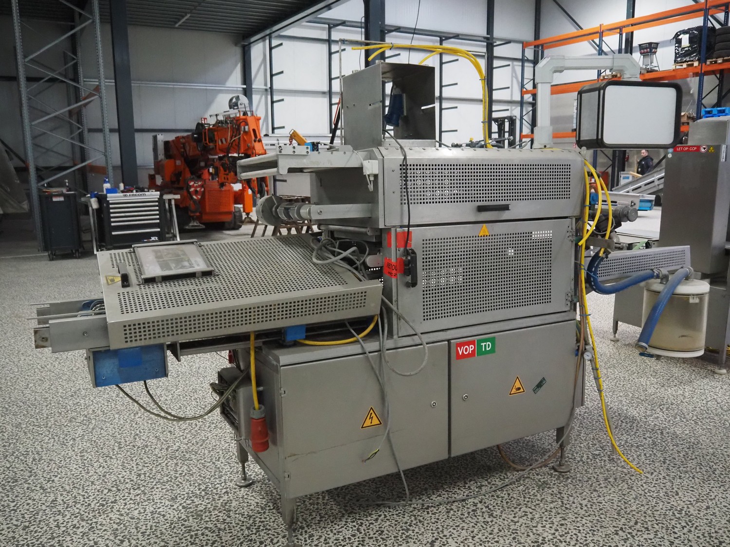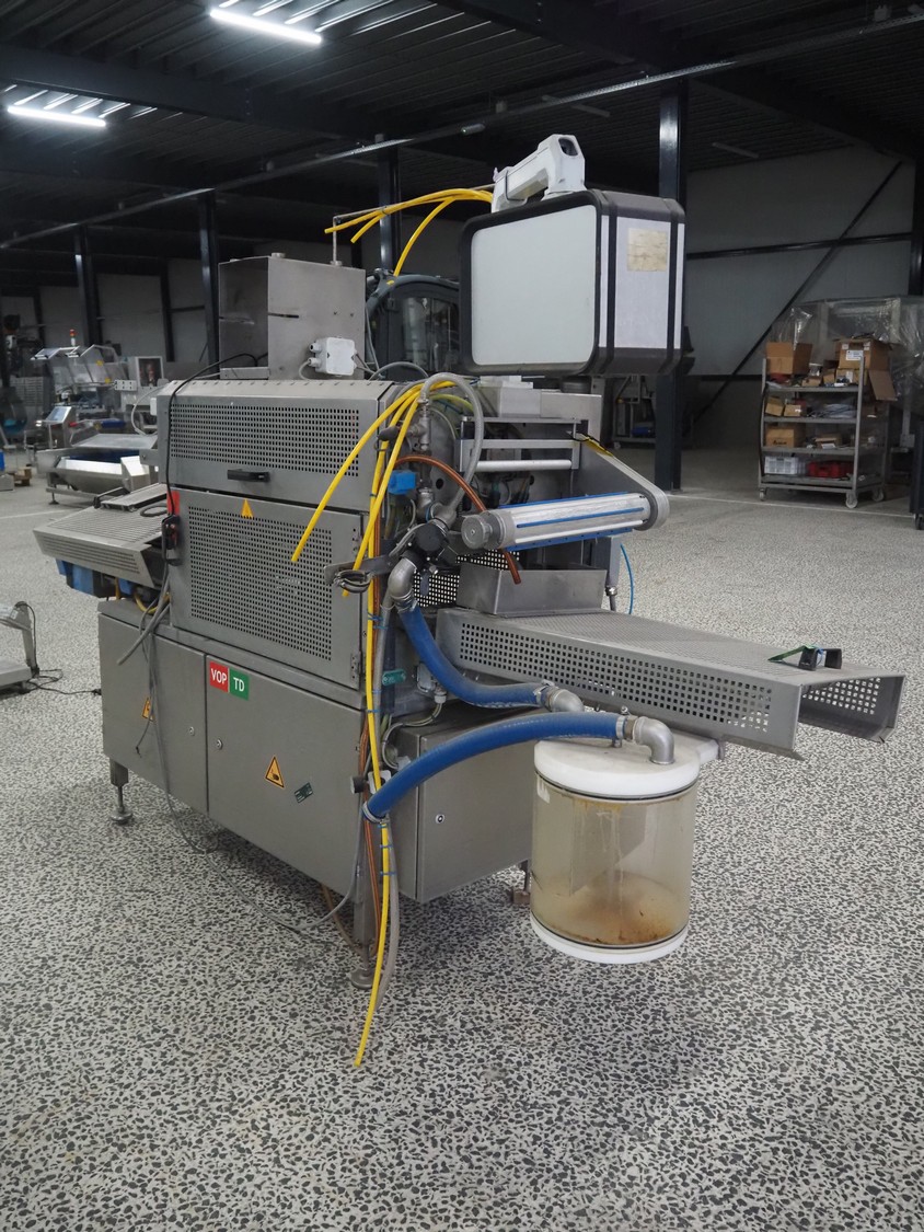 Sealpac traysealer, type: Sealpac 750, serial number: TVS 04 1650 01, year of construction: 2007, 3x400/230 V, 50-60 Hz, 6.5 kW, dye: (5x) Ø 122 mm, total dimensions: 3200 mm x 800 mm x 2000 mm. Incomplete, technical condition unknown.