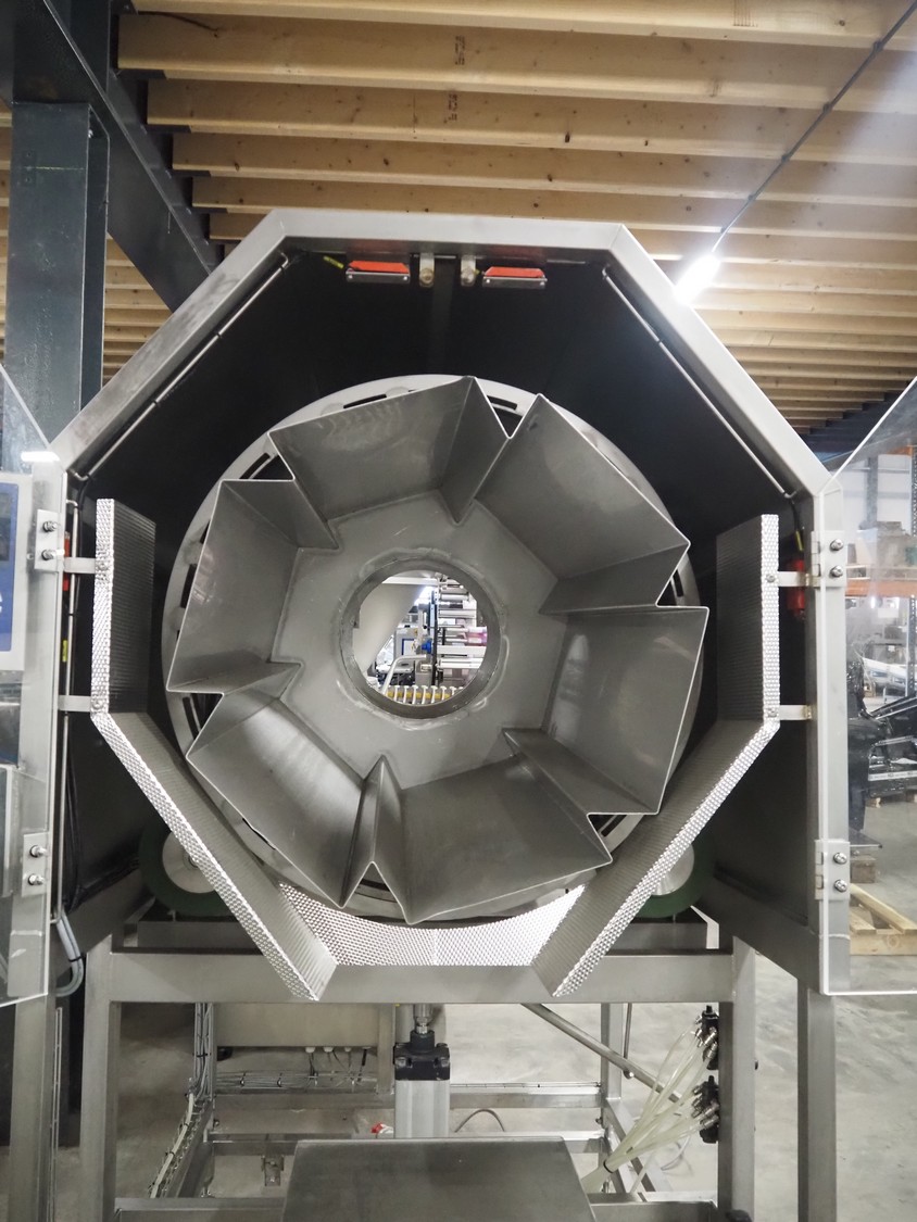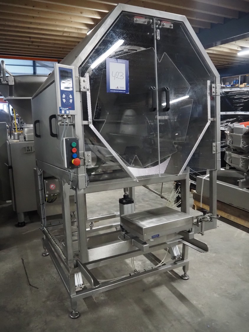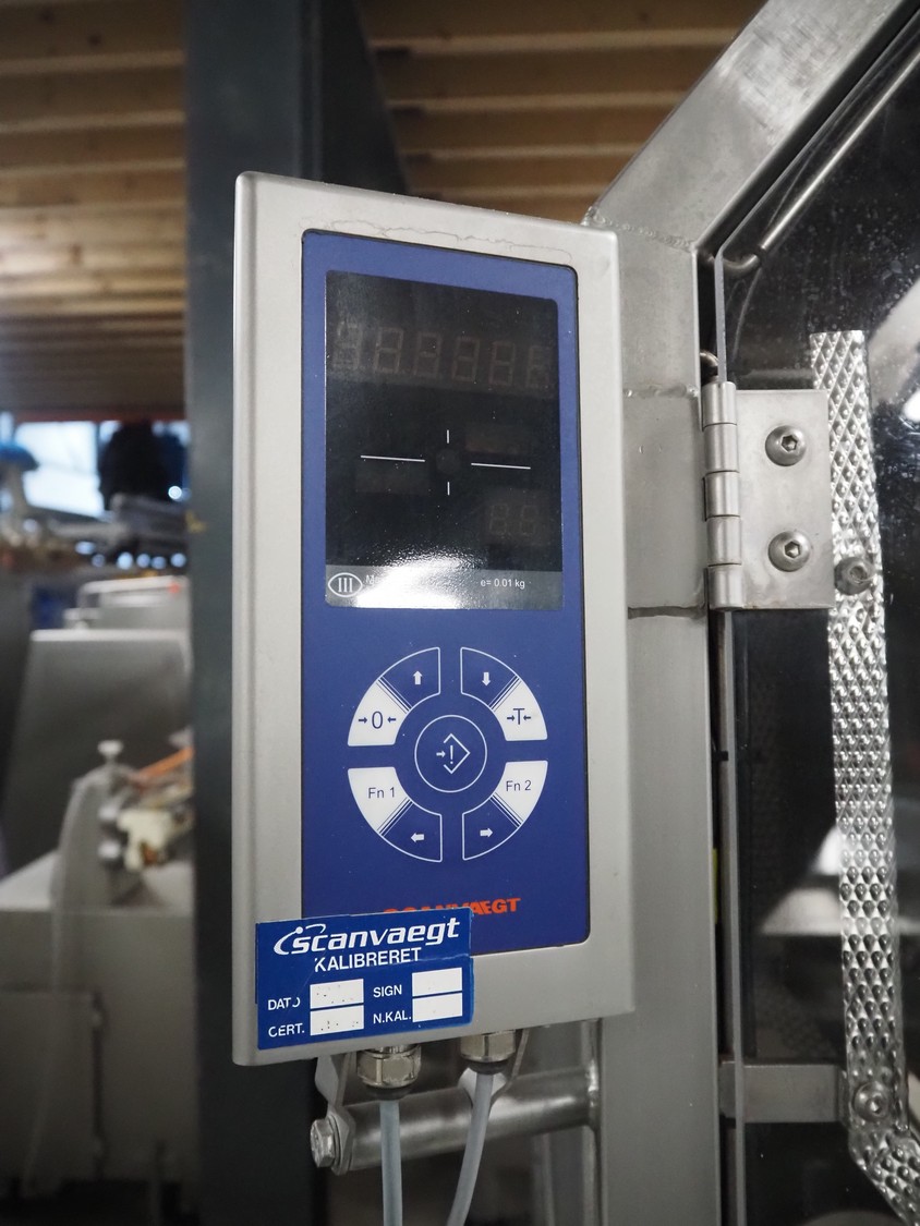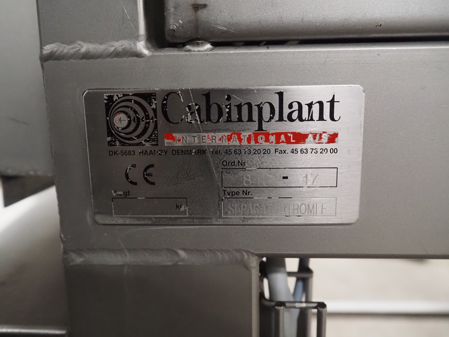 Cabinplant separation tumbler, type: SEPERATORTROMLE, number: 8431, diameter drum: 350 mm, length: 1200 mm, Scanvaegt indicator, type: 411, max: 30 Kg, min: 0.2 Kg, e= 0.01 Kg, dimensions weighing scale: 400 mm x 300 mm, total dimensions: 1750 mm x 1250 mm x 2100 mm.