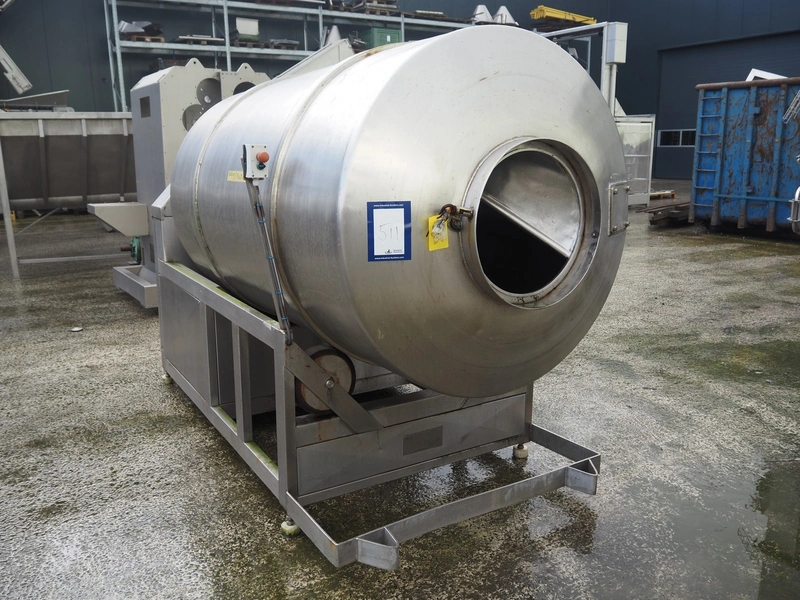S/s tumbler, tub dimensions: Ø 1300 mm x 2500 mm, total dimensions: 3100 mm x 1400 mm x 2100 mm. Without lid.