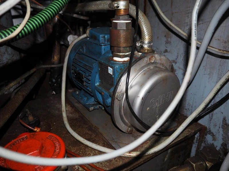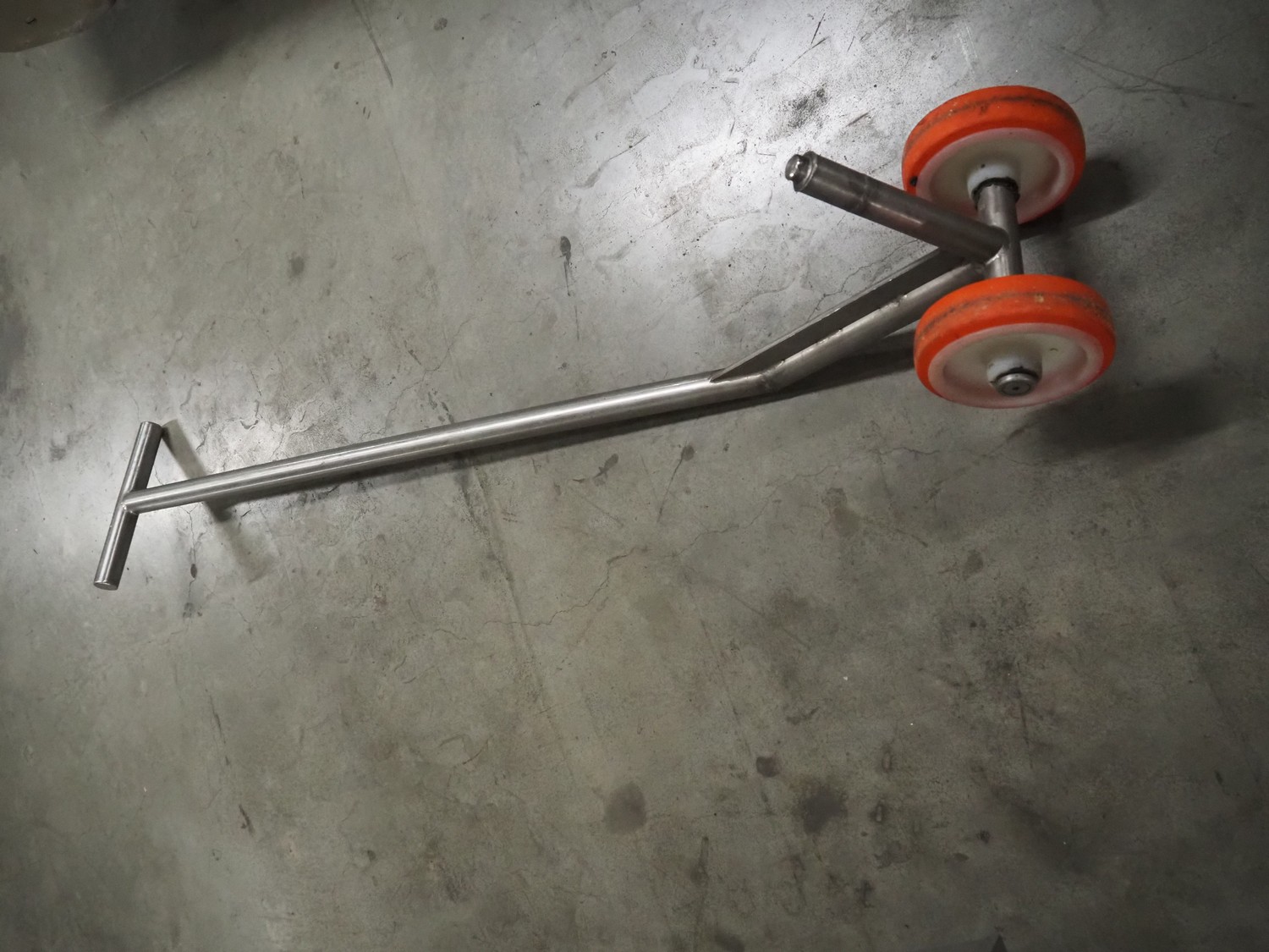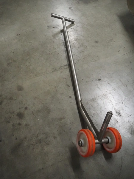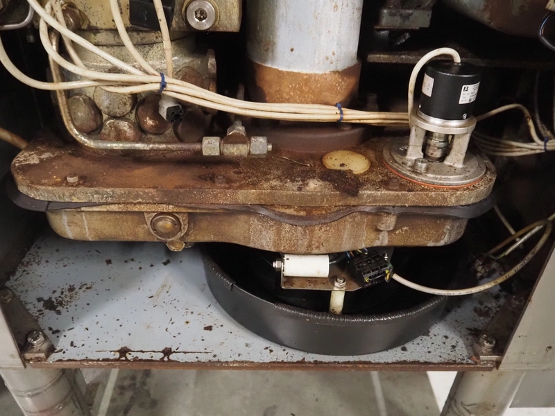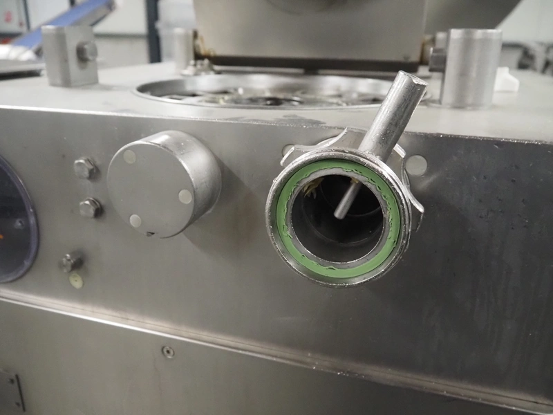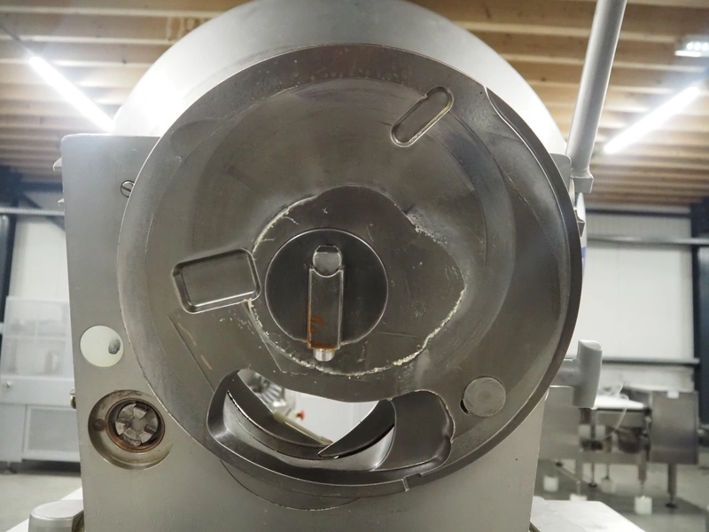 Handtmann mobile vacuum filling machine, type: VF300, number: 2804, year of construction: 1997, 400 V, 50 Hz, 21.8 A, 9 kW, dimensions: 1150 mm x 950 mm x 2050 mm. Incomplete.