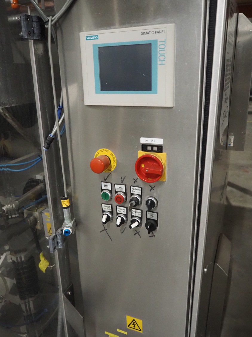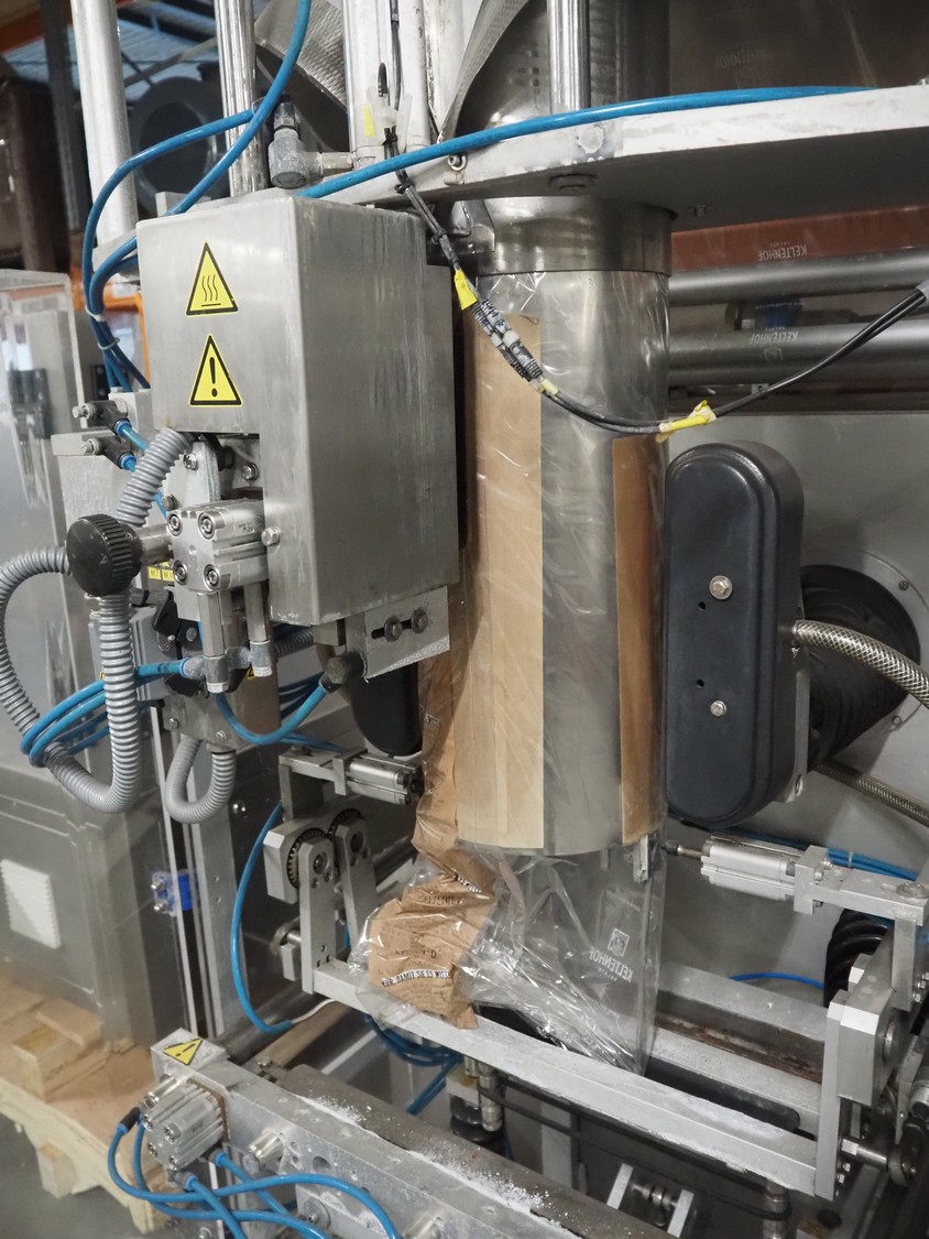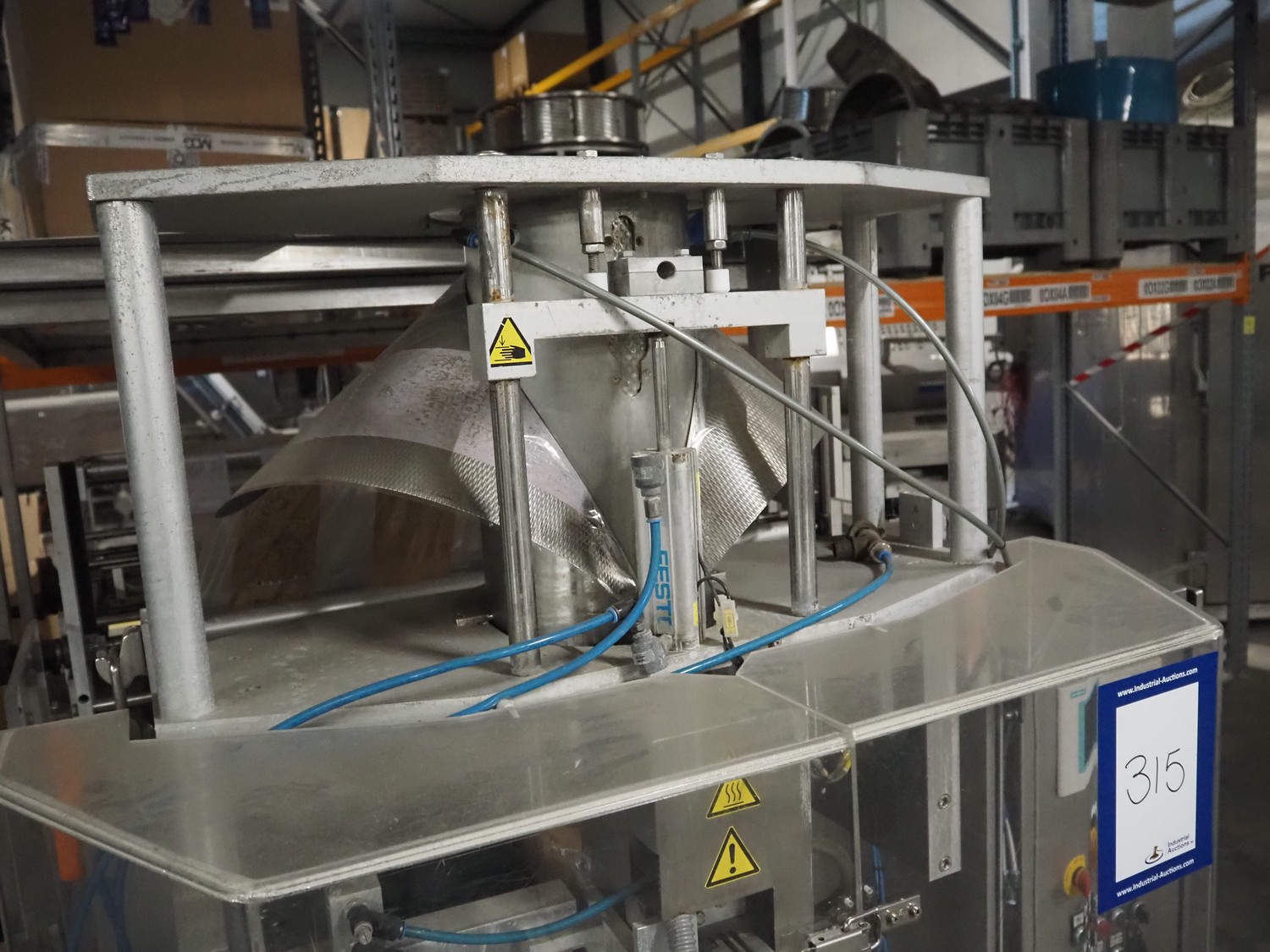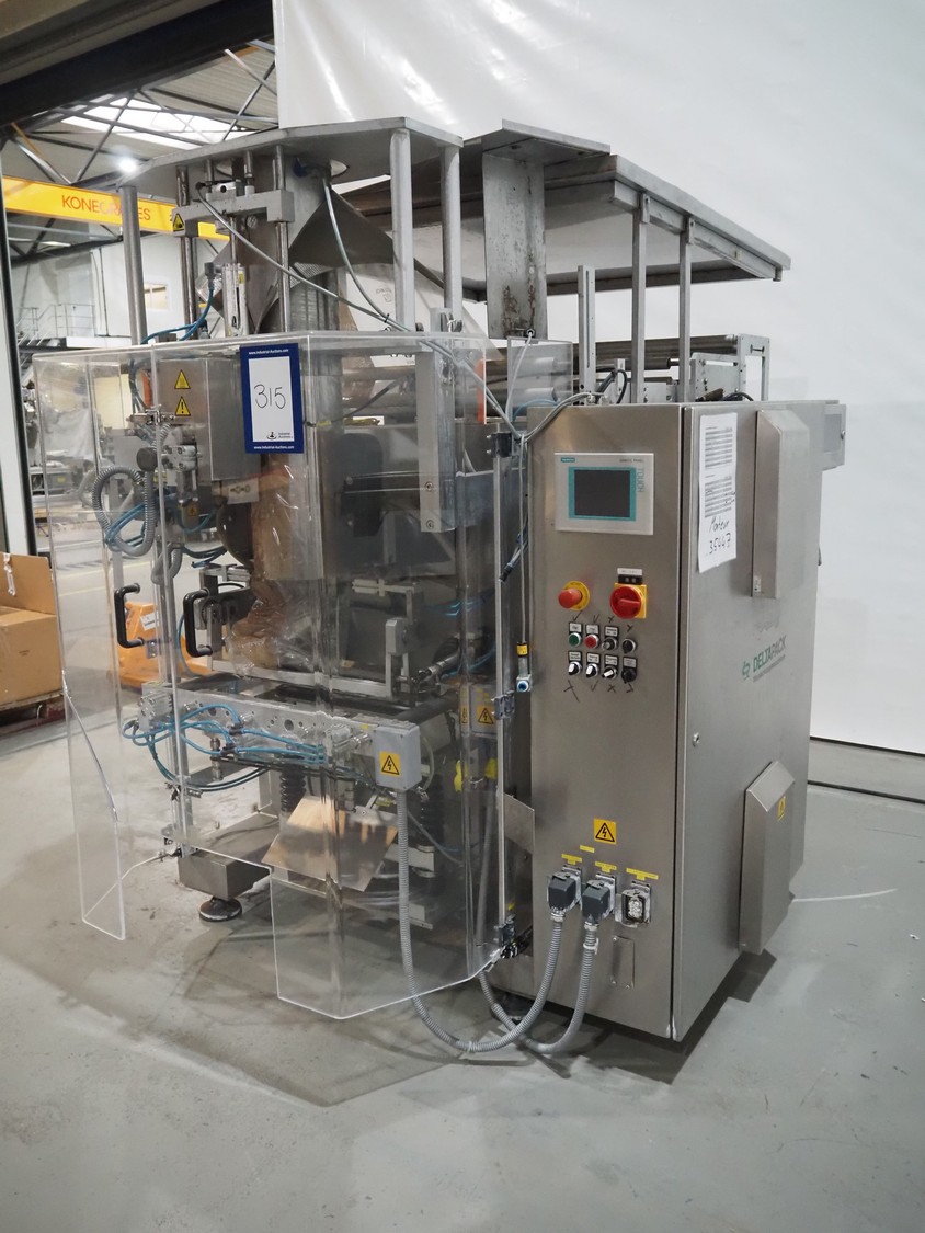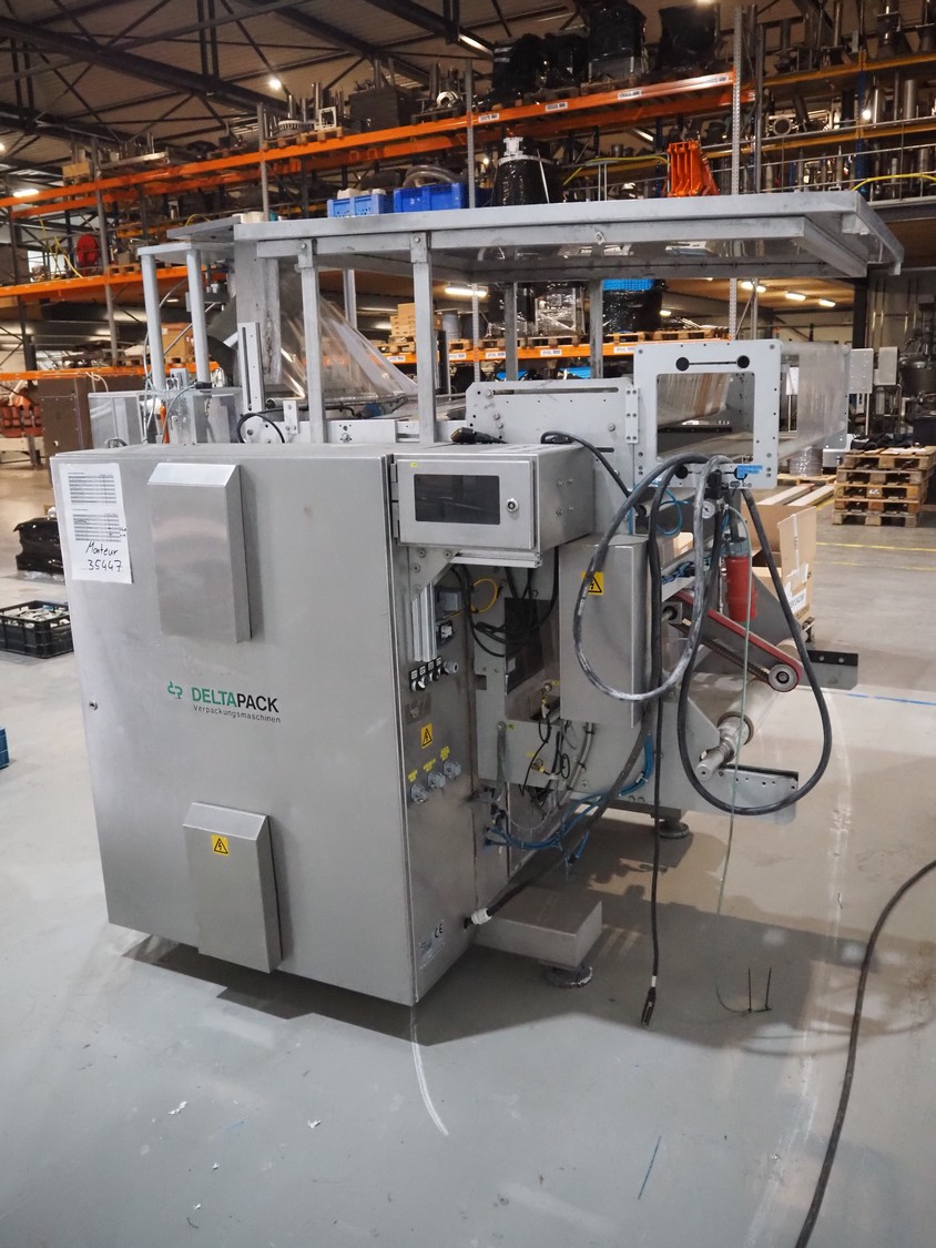 Deltapack vertical bag form-, fill-, and seal machine, type: DE420FU, machine number: 269, year of construction: 2003, film width: 740 mm, vertical seal length: 540 mm, horizontal seal length: 430 mm, total dimensions: 2300 mm x 1550 mm x 2000 mm.