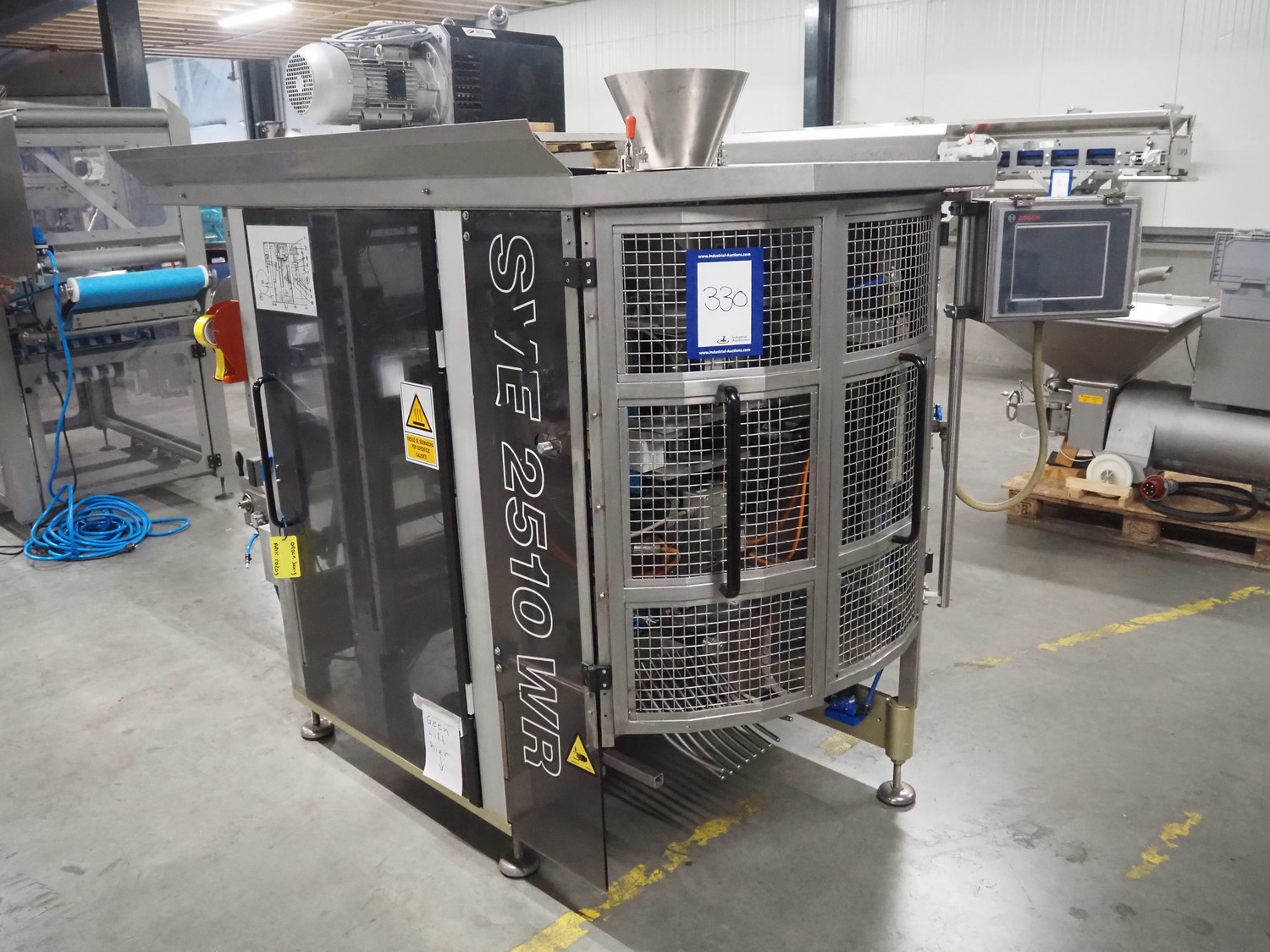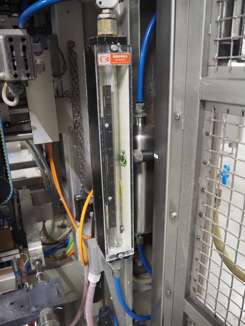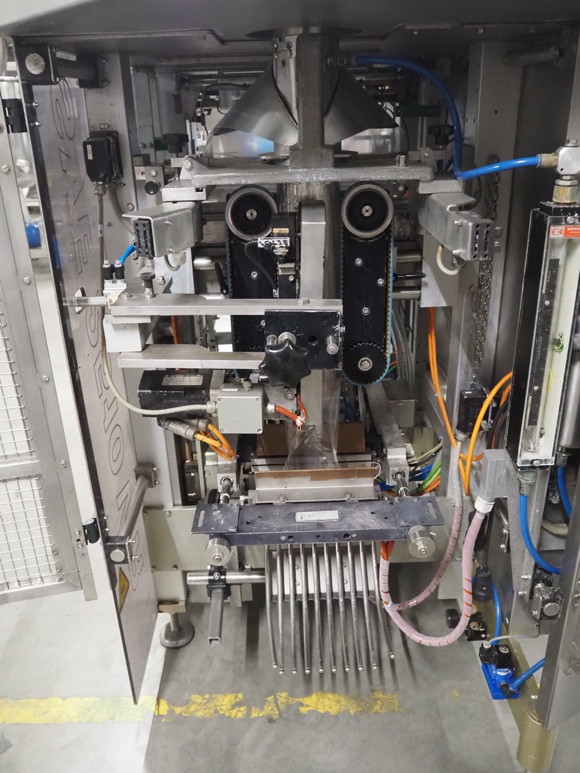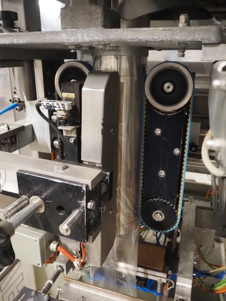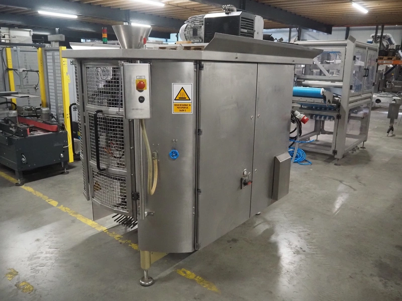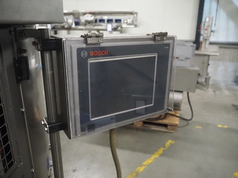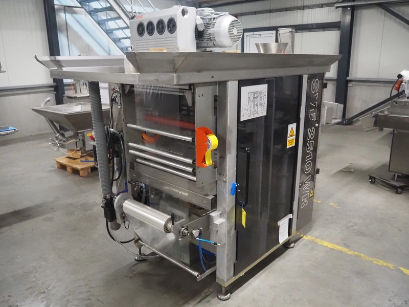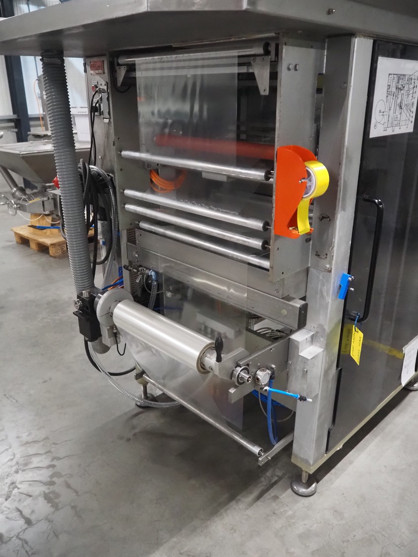 Bosch vertical bag form-, fill- and seal machine, type: SVE 2510 WR, number: 808689MS7533N, year of construction: 2006, film width: 443, diameter filling pipe: 115 mm, vertical seal length: 350 mm, horizontal seal length: 285 mm, total dimensions: 2550 mm x 1500 mm x 1800 mm. Including Garden Denver vacuum pump, type: V-VC 150 (20), capacity: 150 m³ per hour, dimensions: 800 mm x 450 mm x 300 mm.