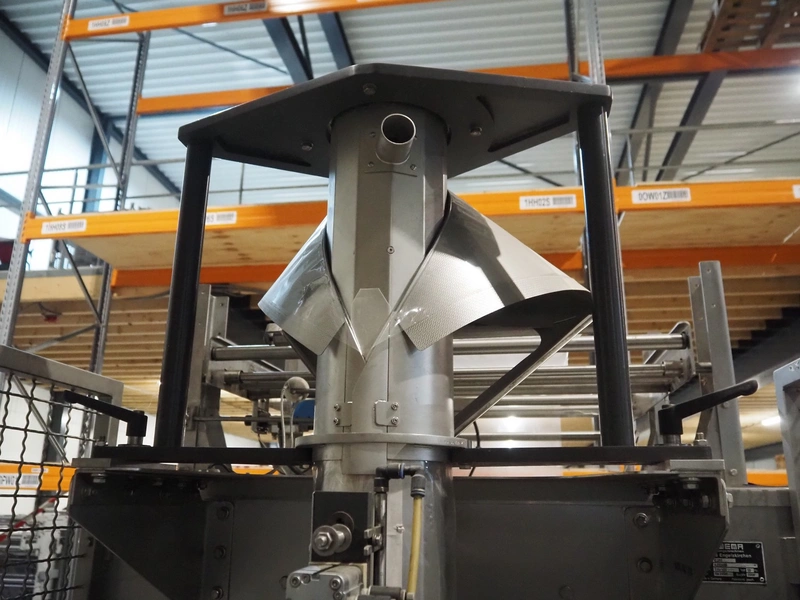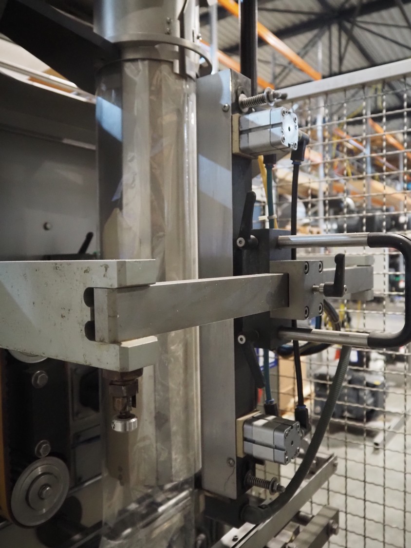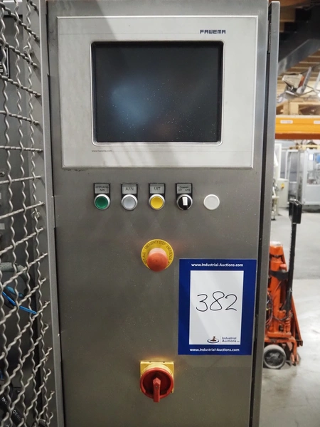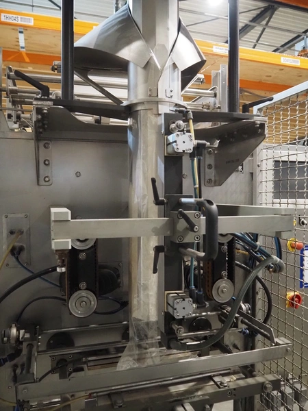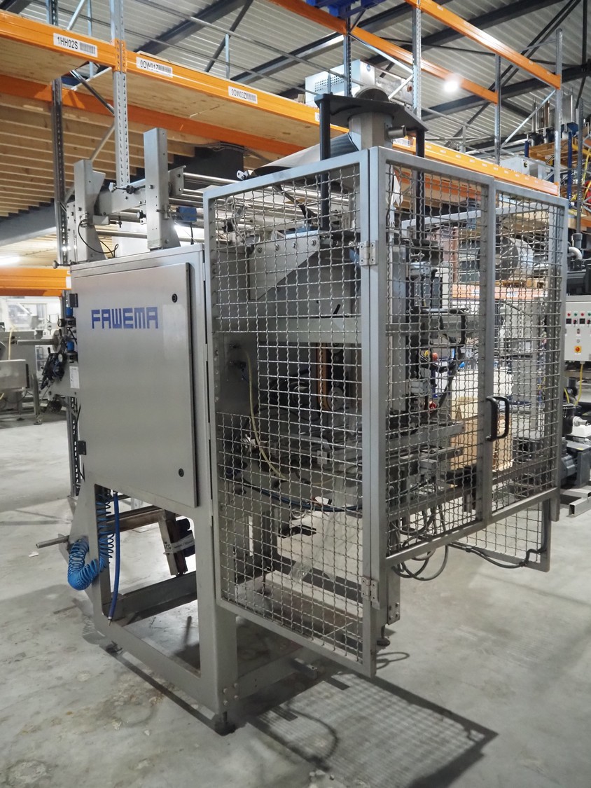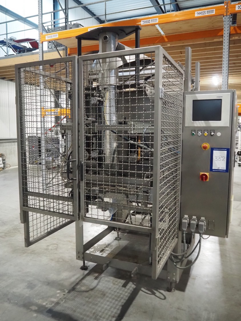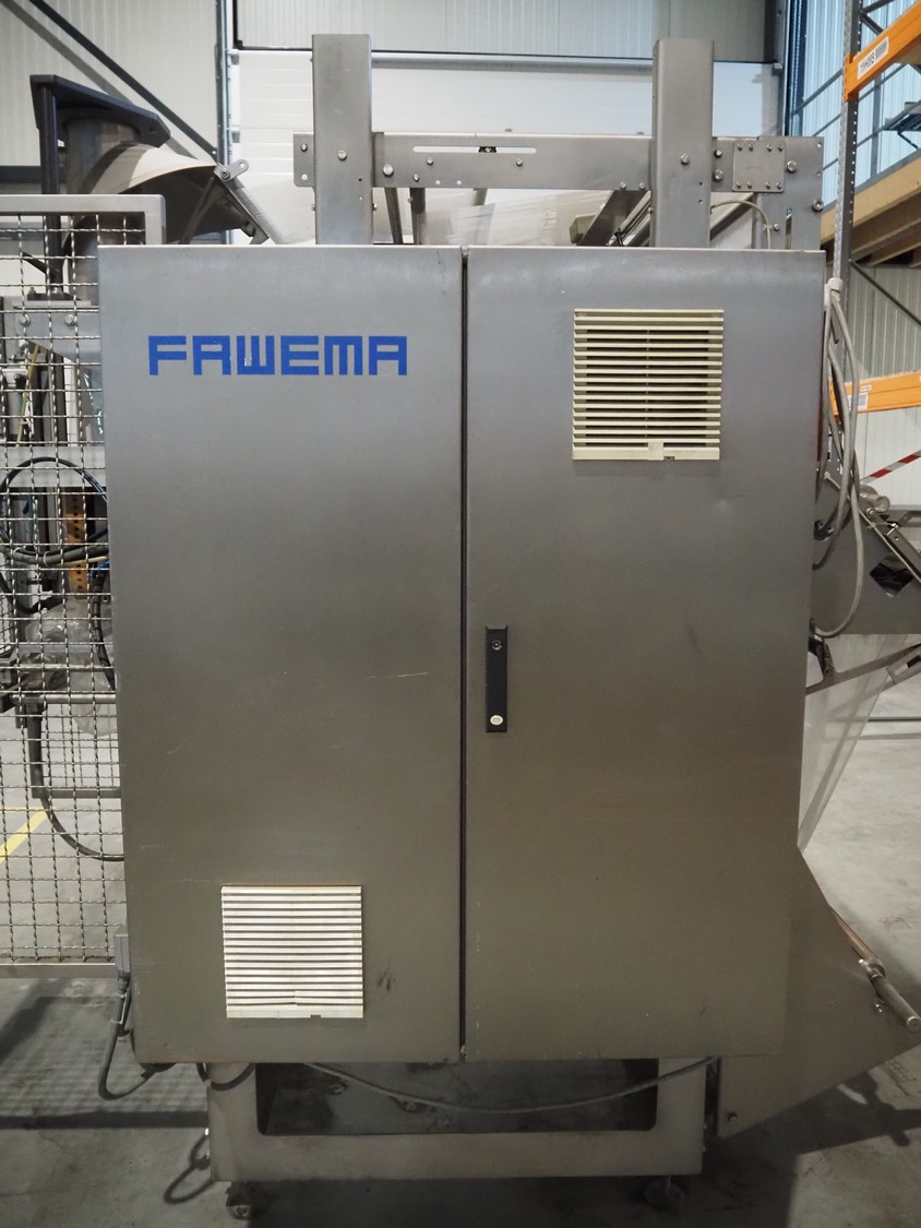 Fawema Verpackungsmaschinen vertical bag form-, fill- and seal machine, type: VI380, machine number: RN29081, year of construction: 2008, 230/400 V, 50 Hz, film width: 520 mm, diameter pipe: 150 mm, vertical seal length: 570 mm, horizontal seal length: 400 mm, total dimensions: 2300 mm x 1600 mm x 2300 mm.