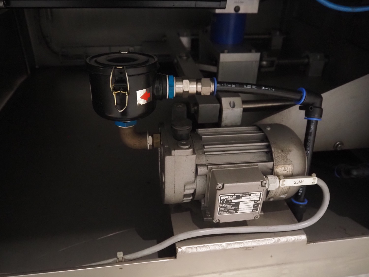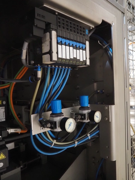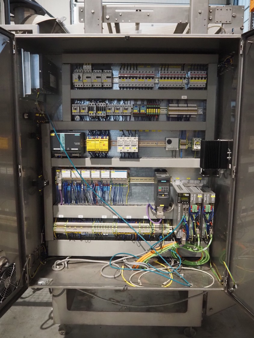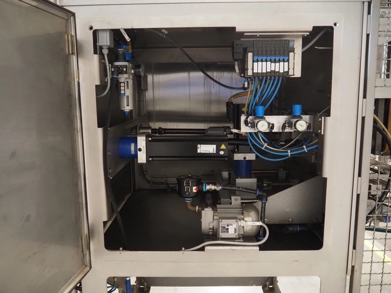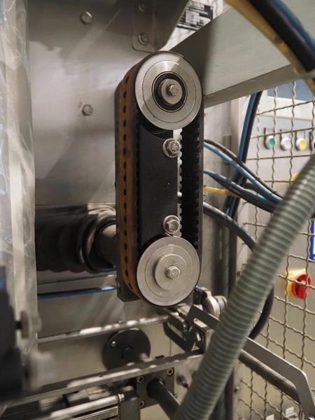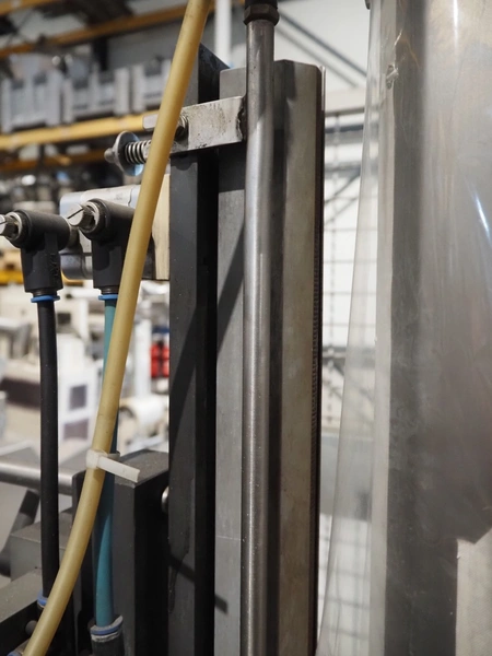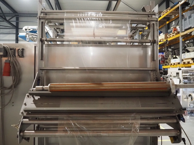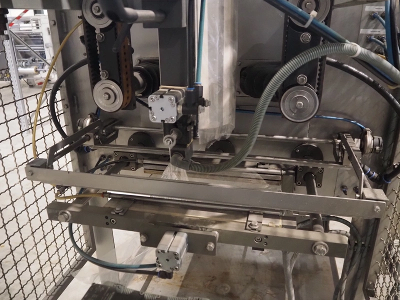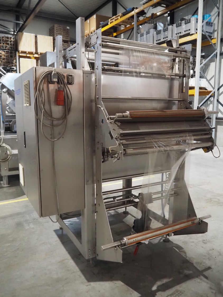 Fawema Verpackungsmaschinen vertical bag form-, fill- and seal machine, type: VI380, machine number: RN29081, year of construction: 2008, 230/400 V, 50 Hz, film width: 520 mm, diameter pipe: 150 mm, vertical seal length: 570 mm, horizontal seal length: 400 mm, total dimensions: 2300 mm x 1600 mm x 2300 mm.