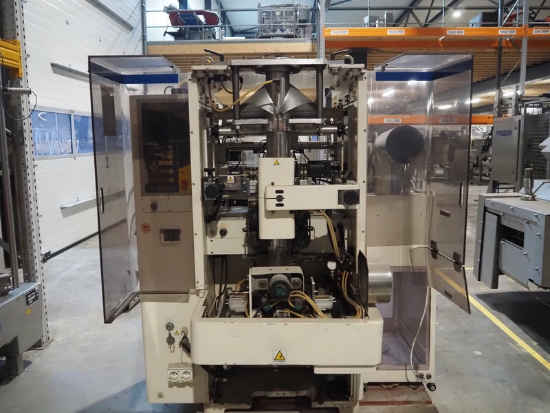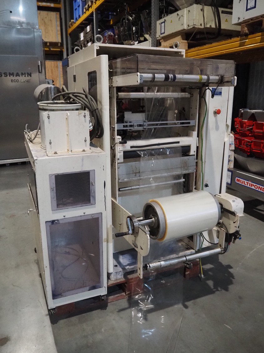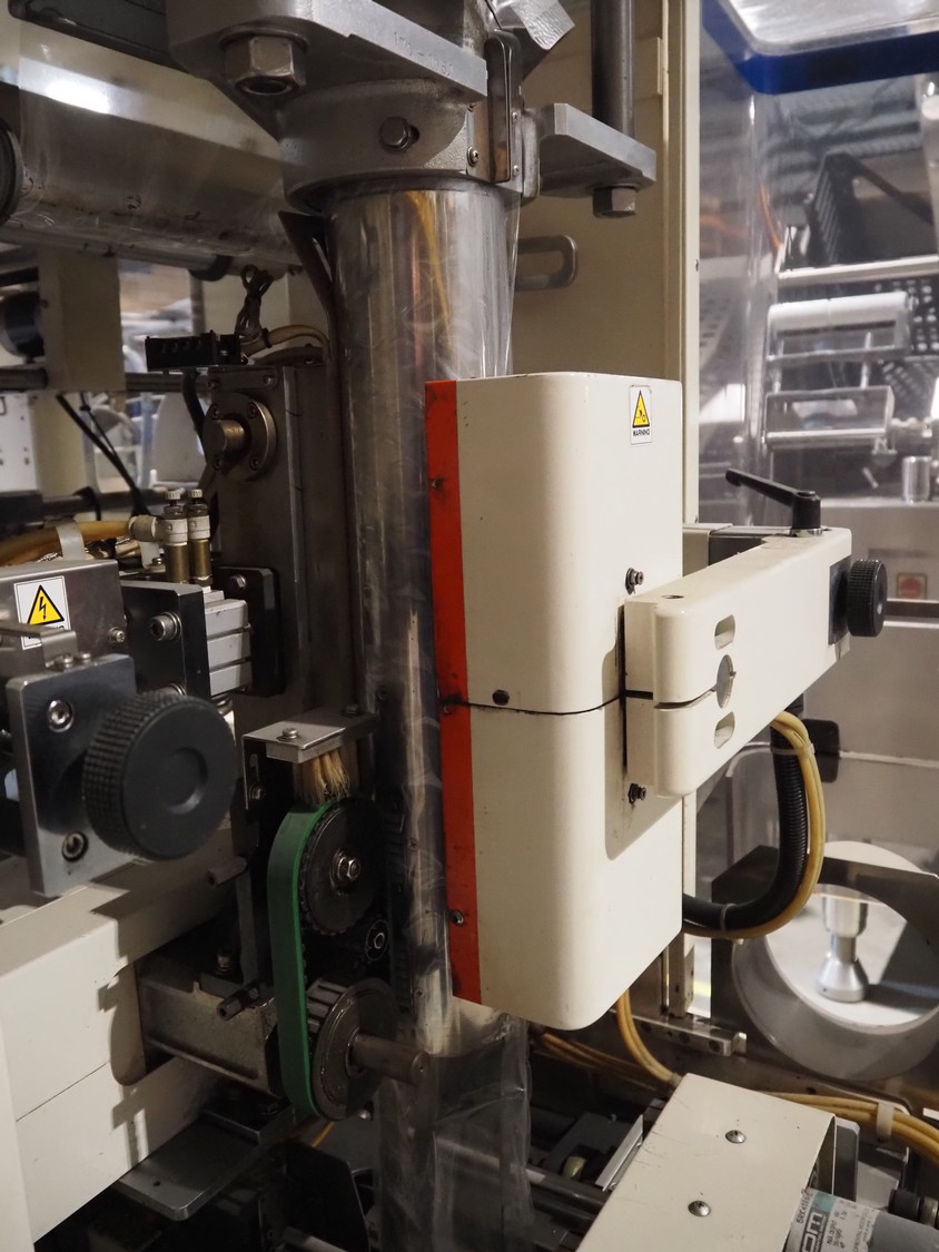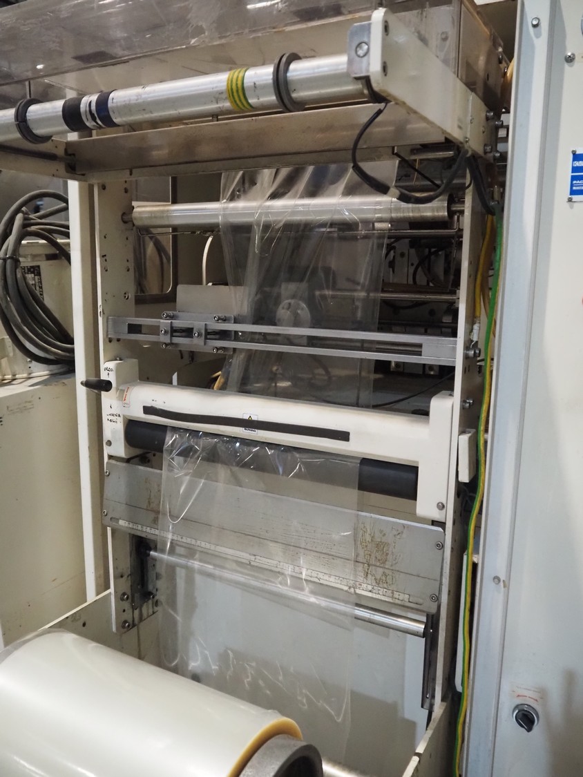 Kawashima vertical bag form-, fill-, and seal machine, model: KBF-6122, serial number: 824, year of construction: August 2001, film width: 370 mm, vertical seal length: 340 mm, horizontal seal length: 280 mm, total dimensions: 1700 mm x 1450 mm x 1810 mm.