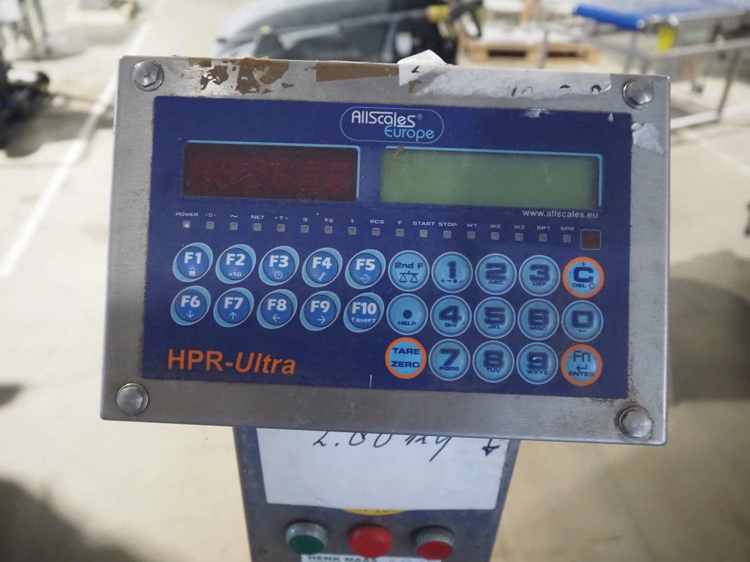 All Scales Europe weighing belt, model: HPR-Ultra, belt width: 500 mm, total dimensions: 1870 mm x 800 mm x 1400 mm.