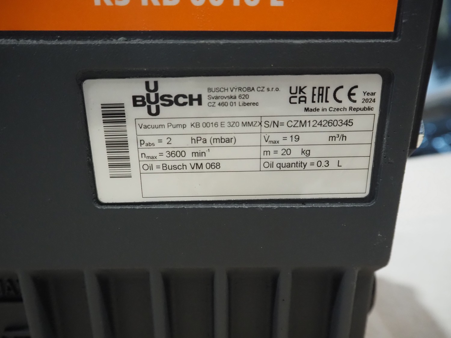 Busch vacuum pump, type: KB 0016 E 3Z0 MMZX, serial number: CZM124260345, year of construction: 2024, capacity: 19 m³ per hour, dimensions: 300 mm x 200 mm x 200 mm.