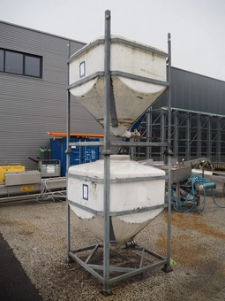 2 plastic tanks on steel frame, dimensions: (2x) 1100 mm x 1100 mm x 1200 mm.1 bidLot is closed