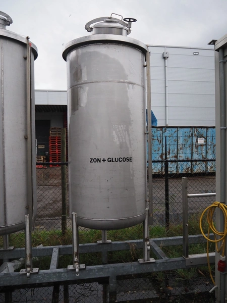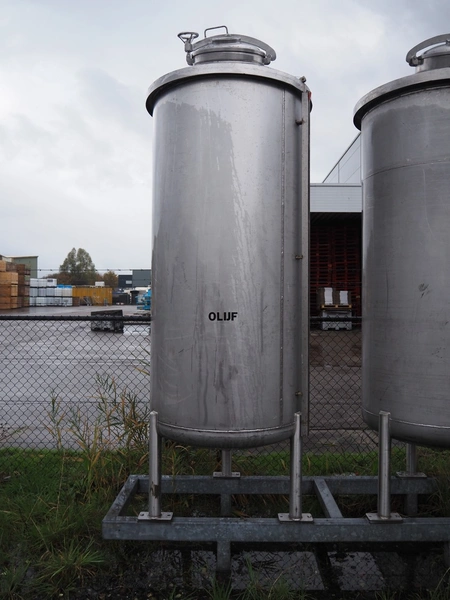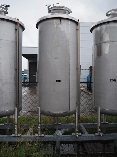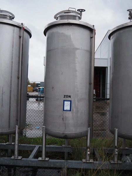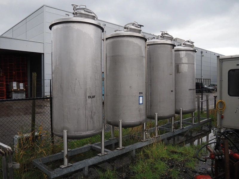 Steel frame with 4 s/s tanks, dimensions each tank: Ø 900 mm x 3000 mm, total dimensions: 5750 mm x 1000 mm x 3300 mm.