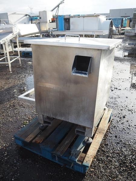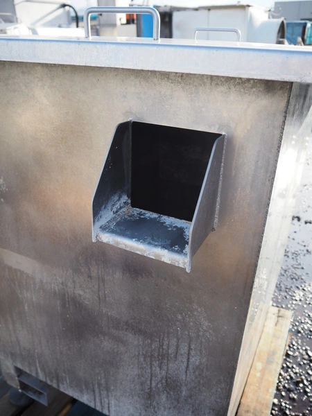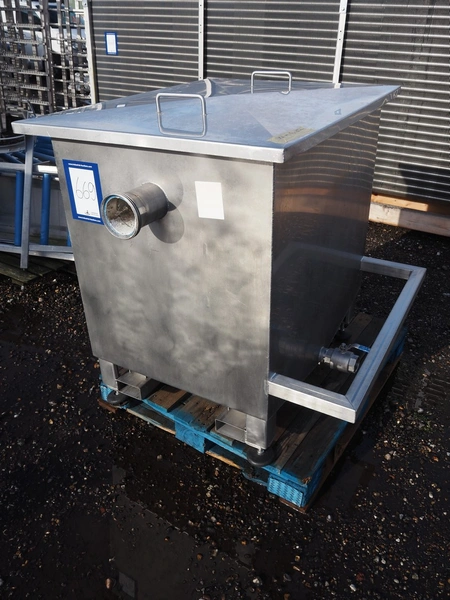 S/s tank with drain, dimensions: 1100 mm x 1100 mm x 1200 mm.
