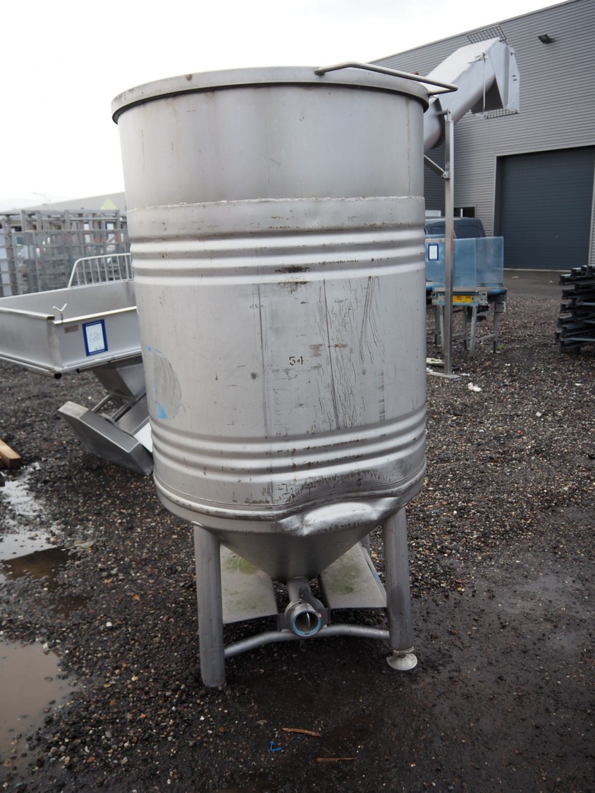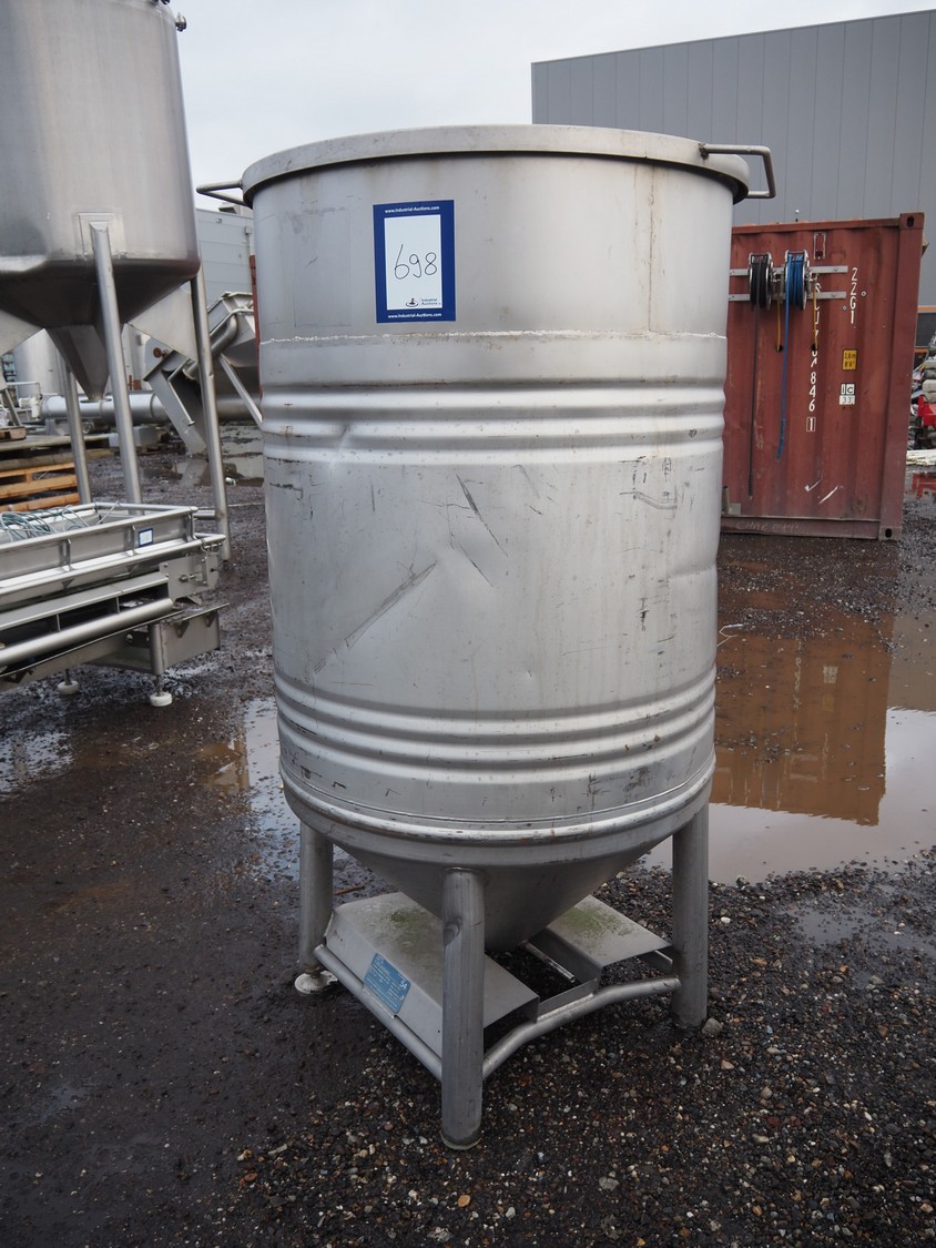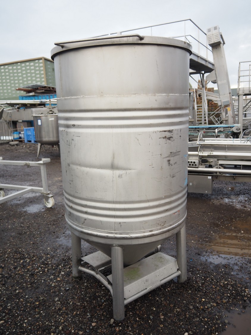 Stöcklin Logistique SA s/s tank, fabrication number: 93187, year of construction: 1999, working pressure: +1/-015 bar, working temperature: -10/+50°C, capacity: 1000 liter, weight: 128 kg, dimensions: Ø 1000 mm x 2000 mm.