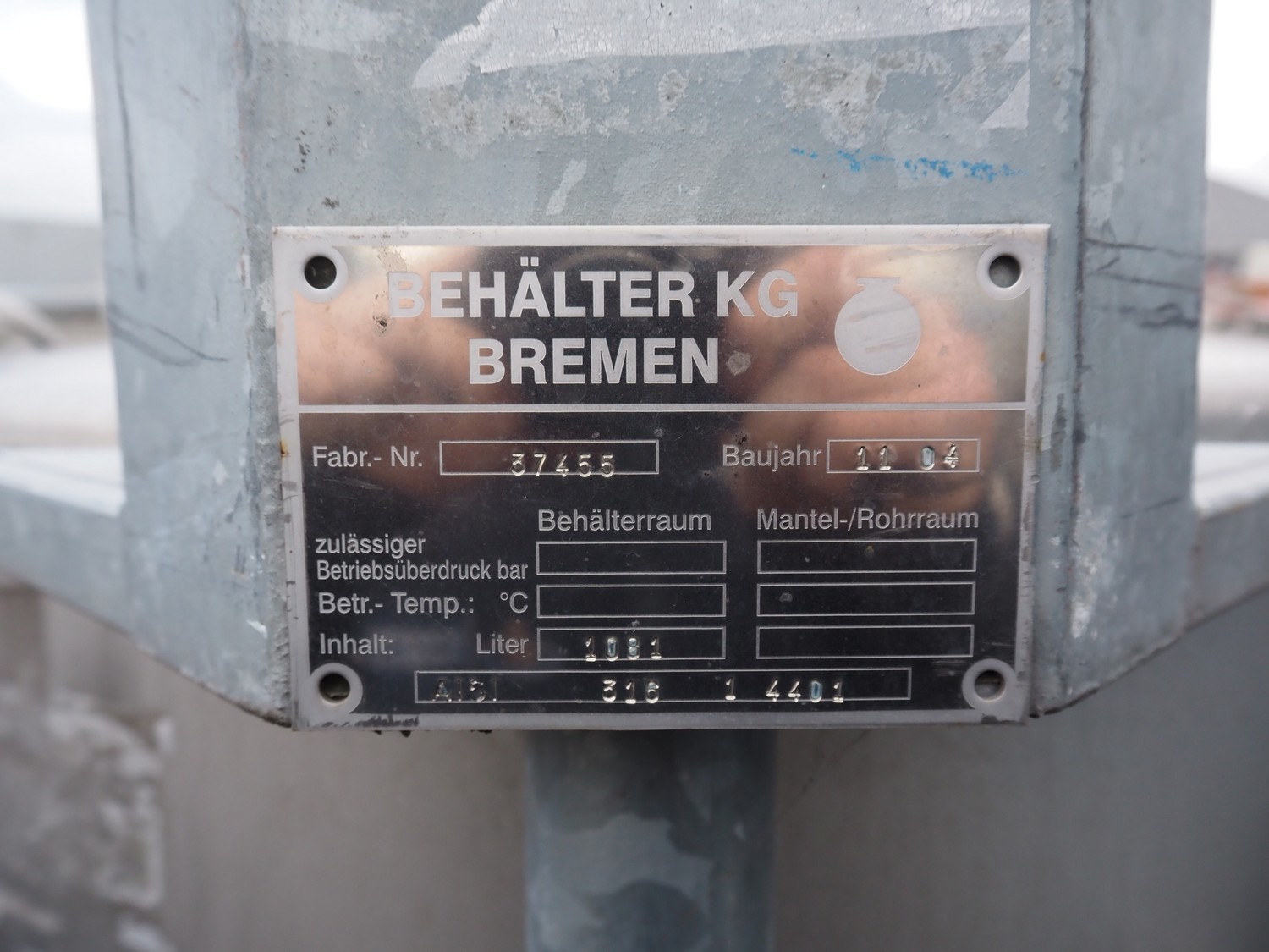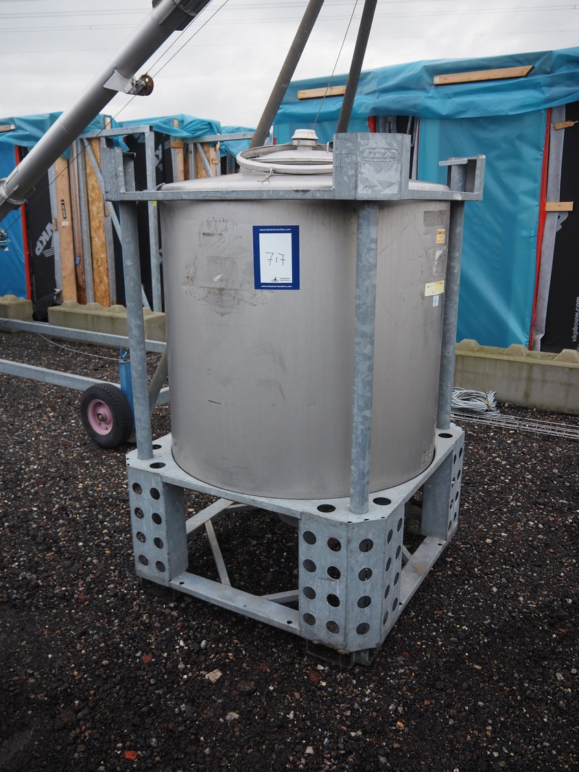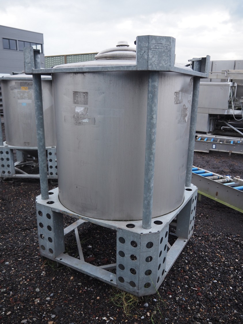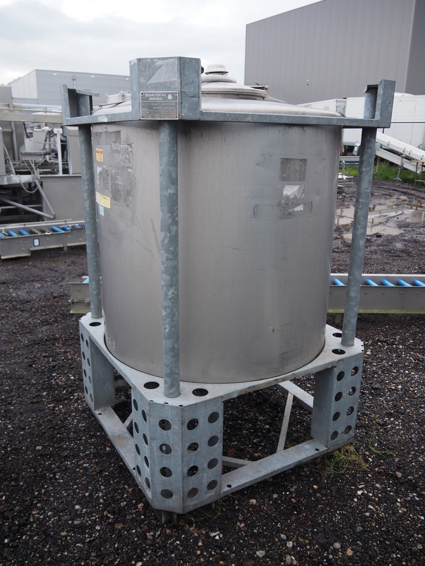 Behälter kg - Bremen s/s tank on steel frame, fabrication number: 37455, year of construction: 11.04, volume: 1081 liter, dimensions frame: 1150 mm x 1150 mm x 1750.